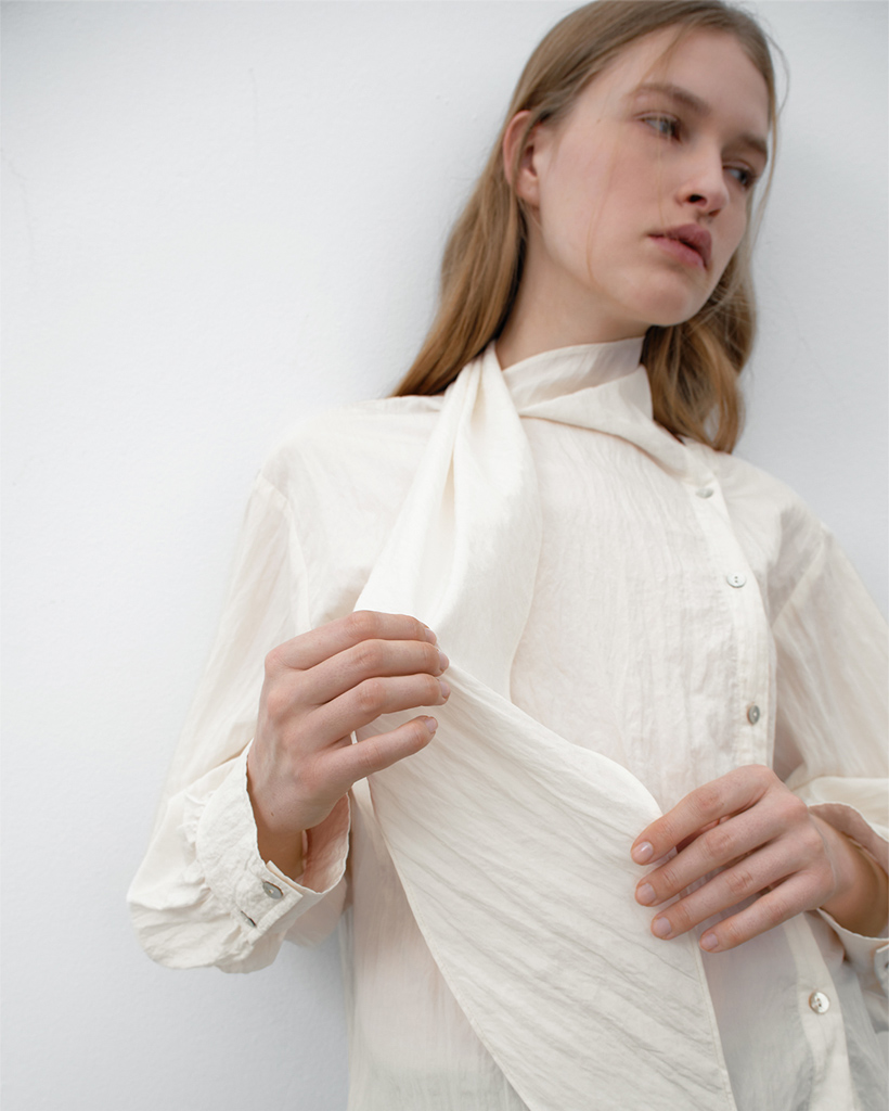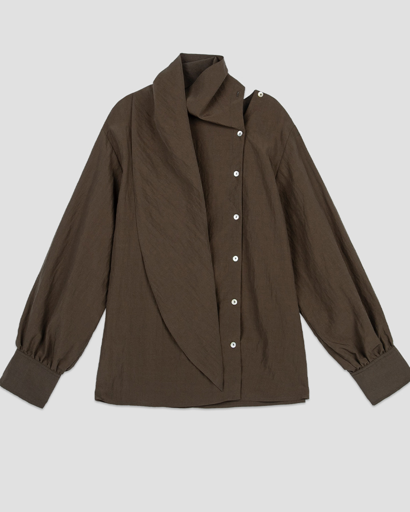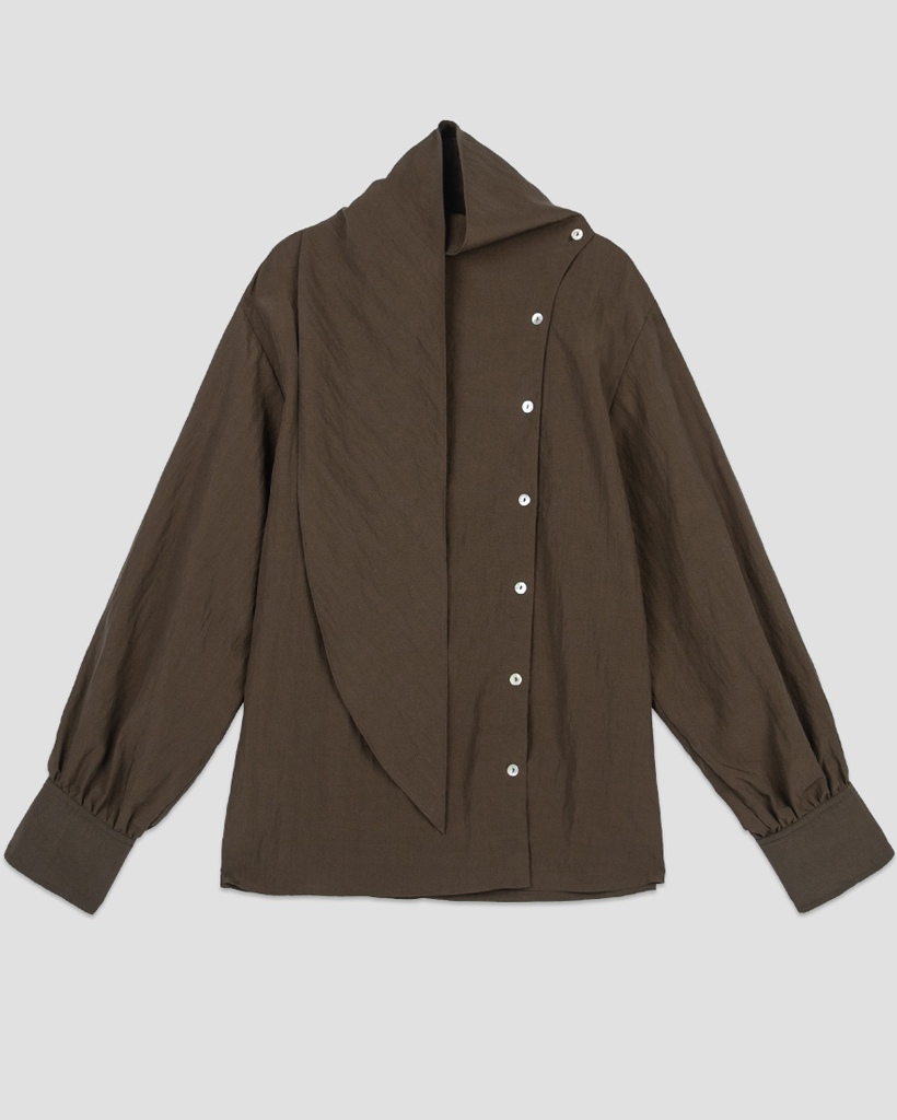 ボタンの開閉数を調整することで多様なスカーフアレンジができるようデザインされています。