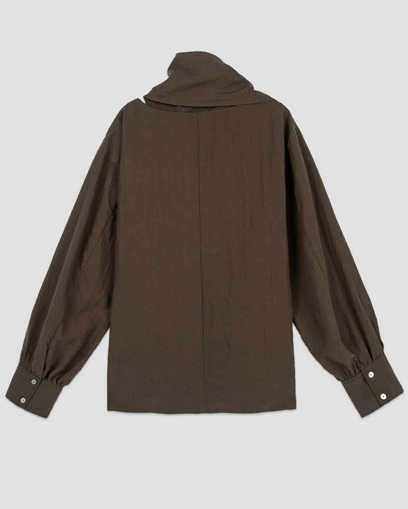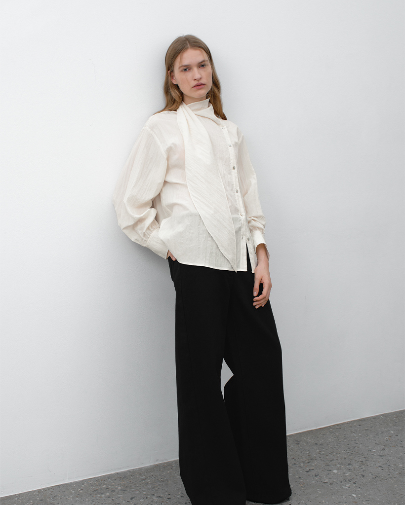 (BL-4355)PARCO NATURAL TEXTURE TIE BLOUSE