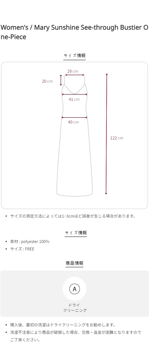 HEIGHT 168cm / BUST 81cm / WAIST 58cm / HIP 83cm