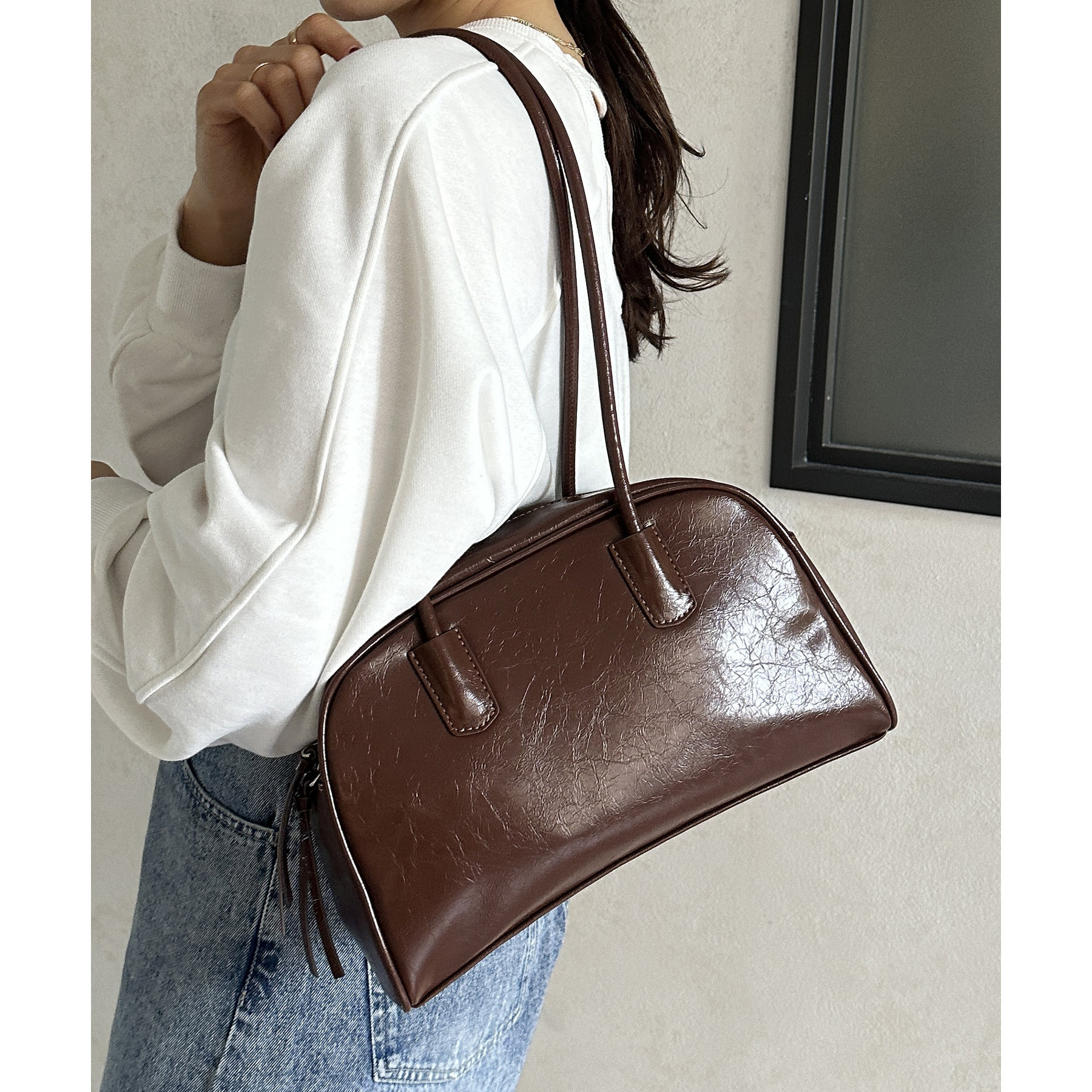 ・肩掛けがおしゃれに決まるロングハンドルバッグ