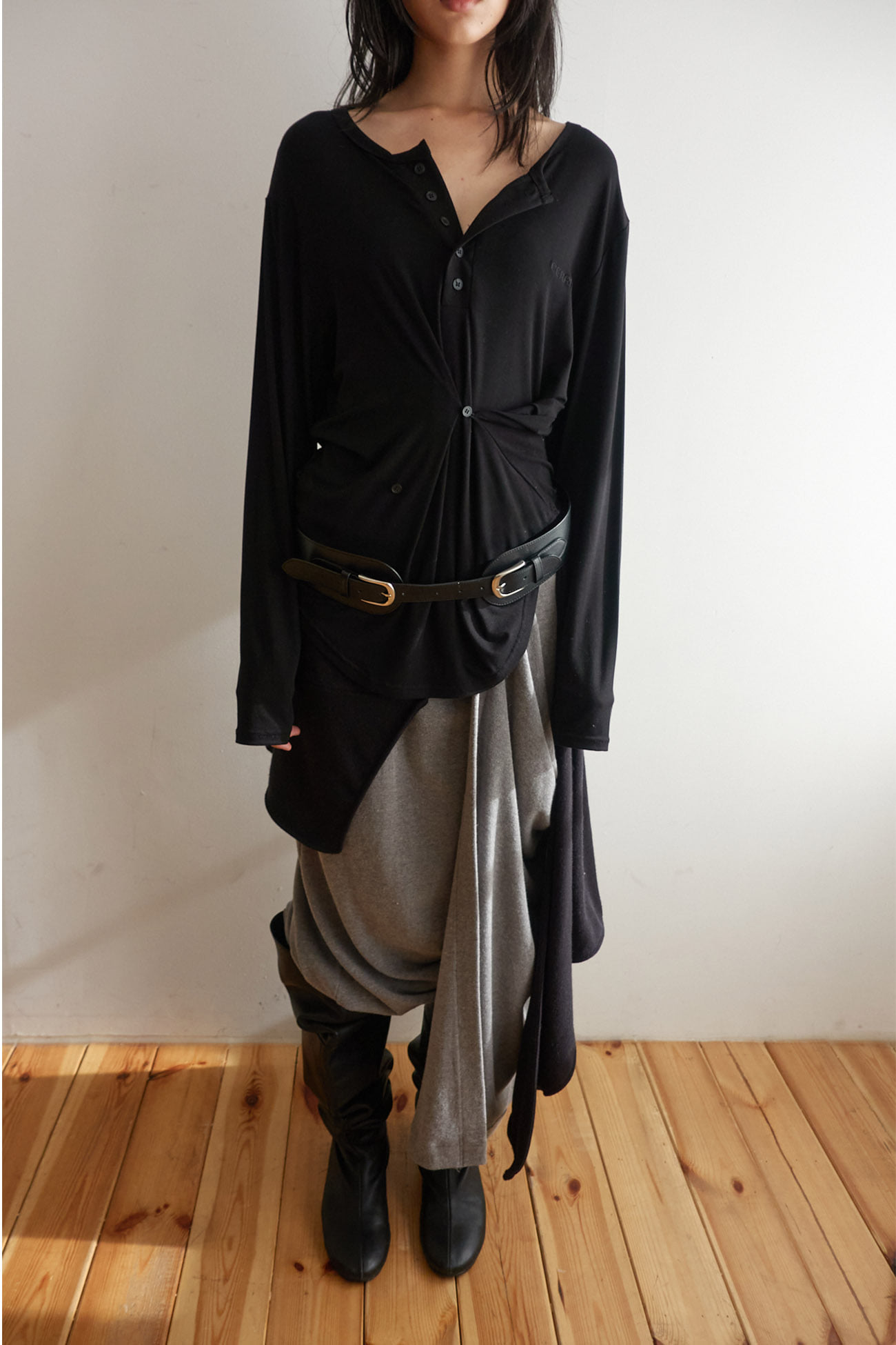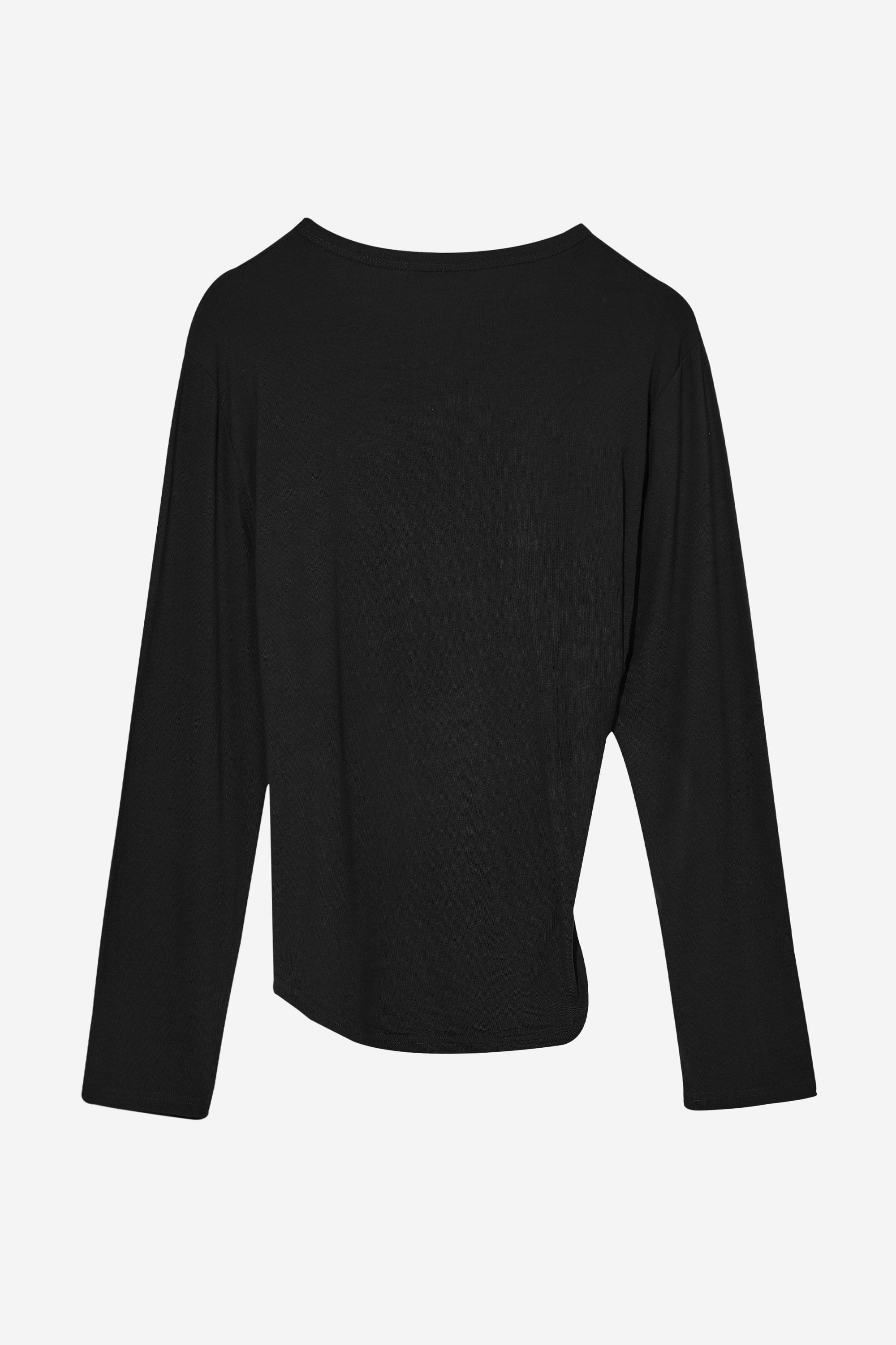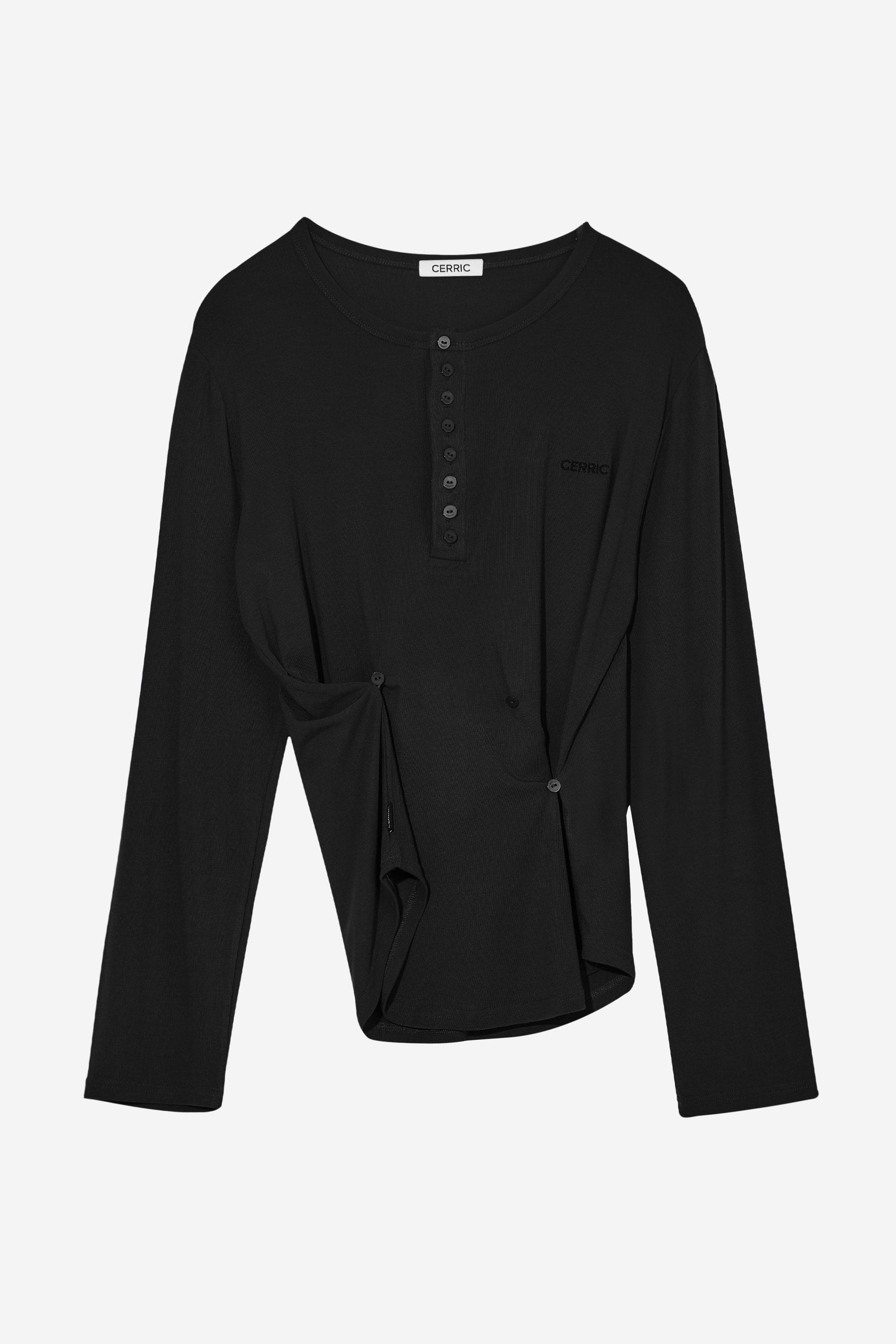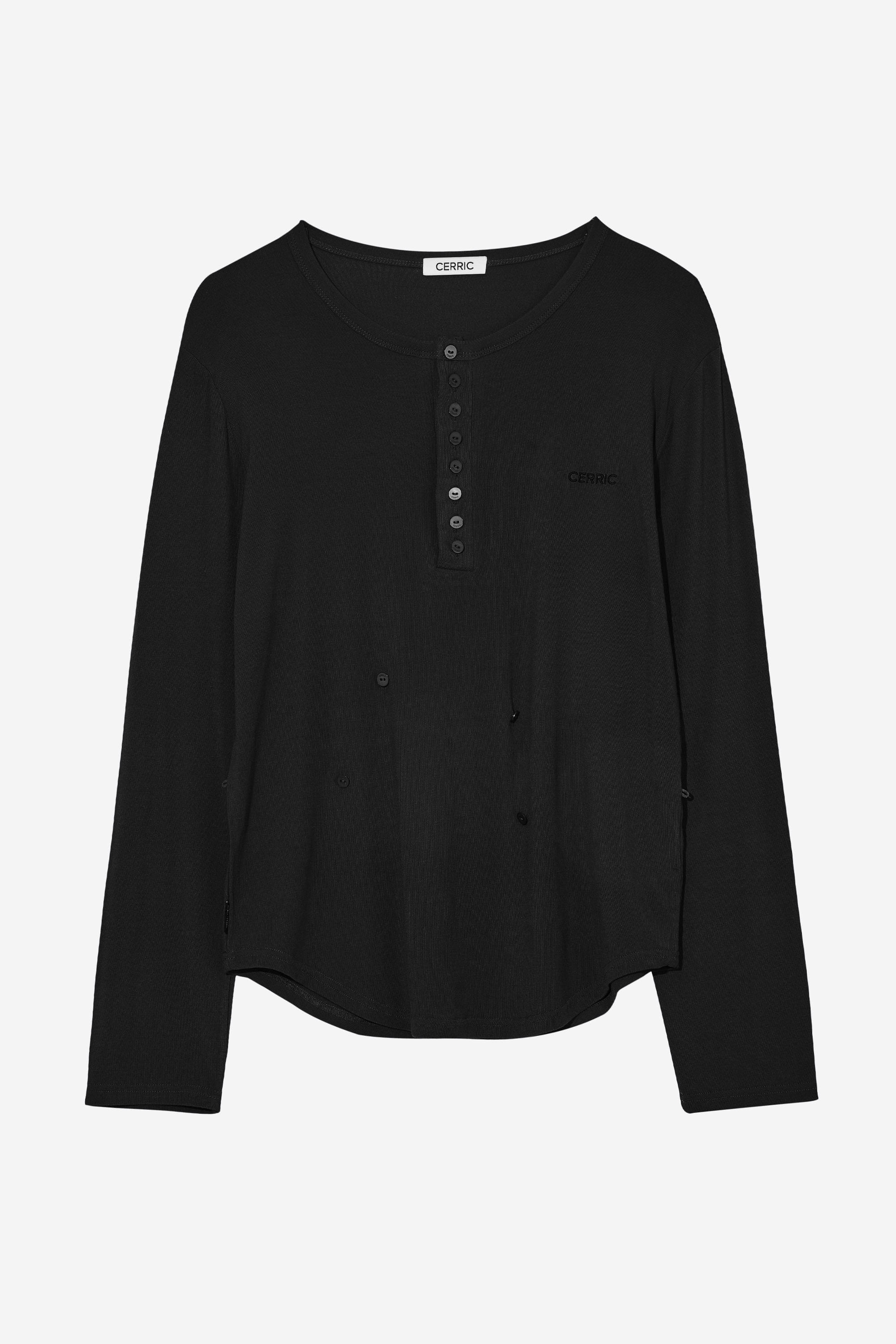BUTTON HENLEY NECK TOP / BLACK