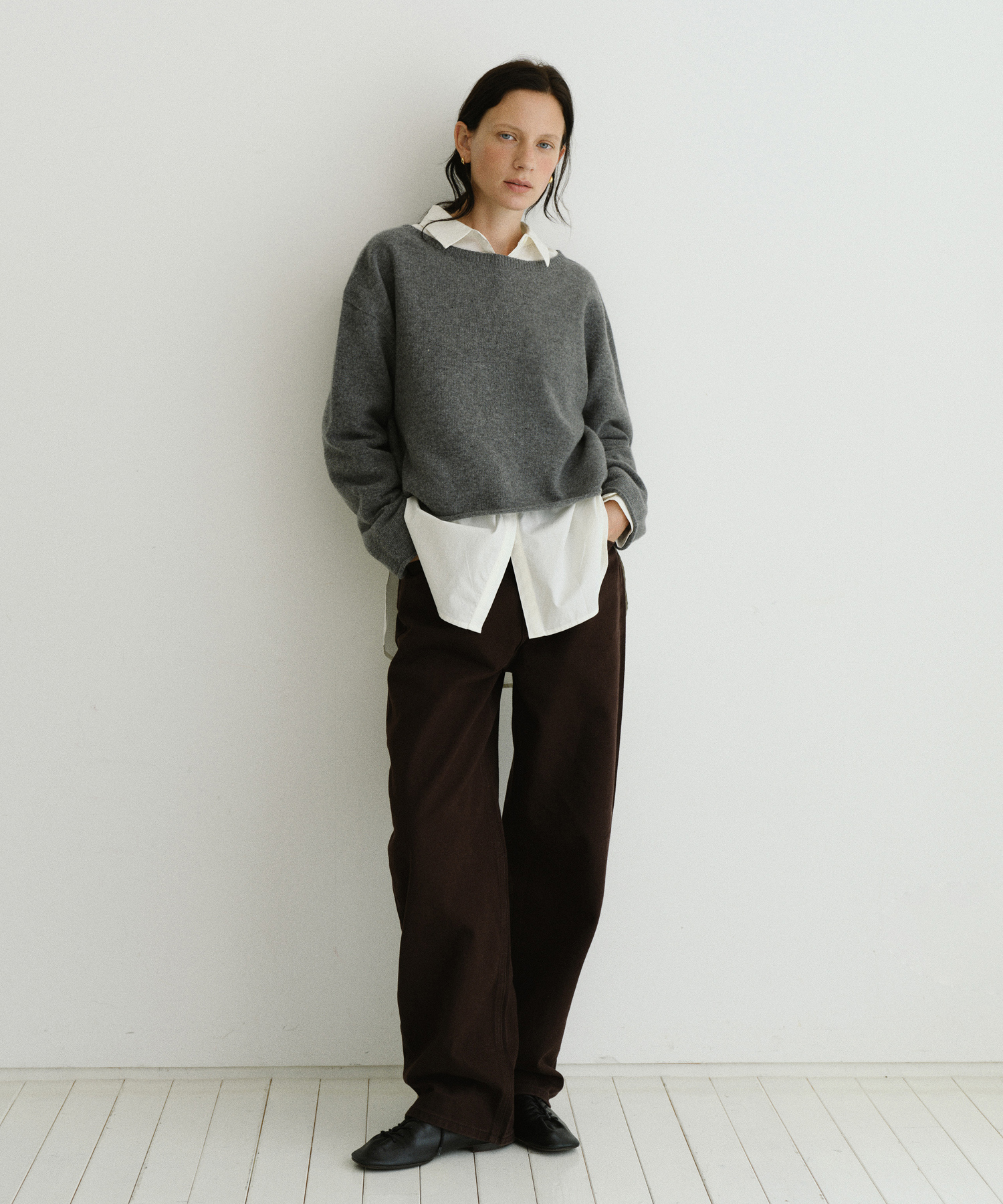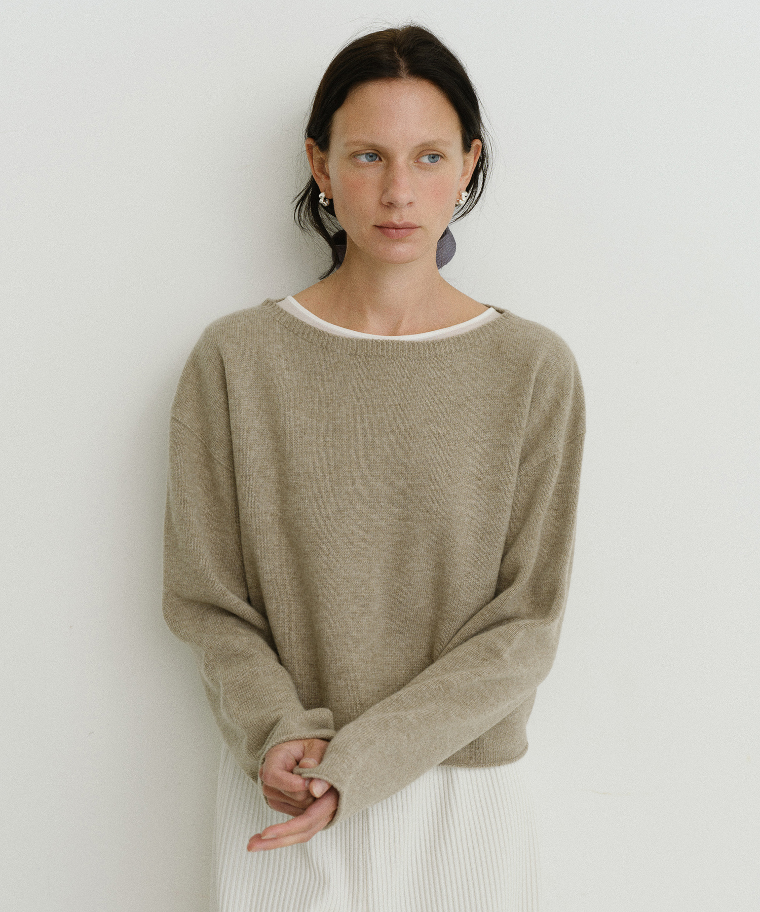 -短めのクロップデザインに広めに開いたボートネックをあしらい、軽やかで洗練されたムードを演出します。