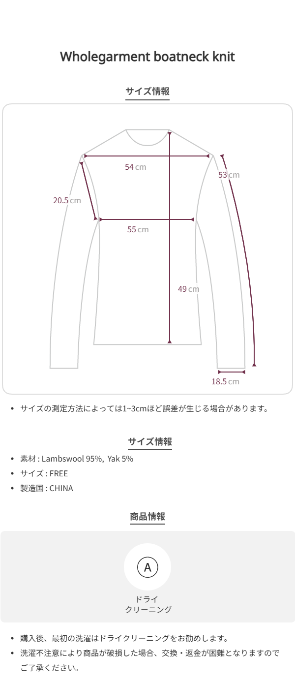 *ニット製品の特性上、摩擦によって毛玉(ピリング)が発生する場合があります。