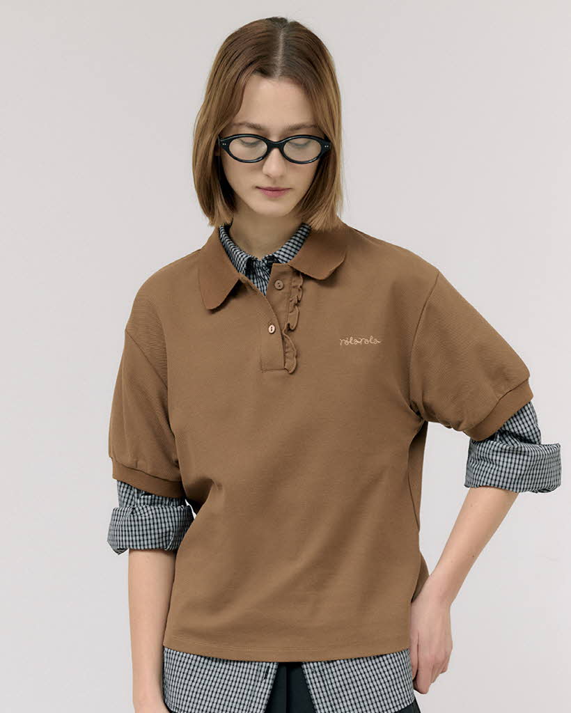 FRILL POINTED COLLAR HALF T-SHIRT BROWN