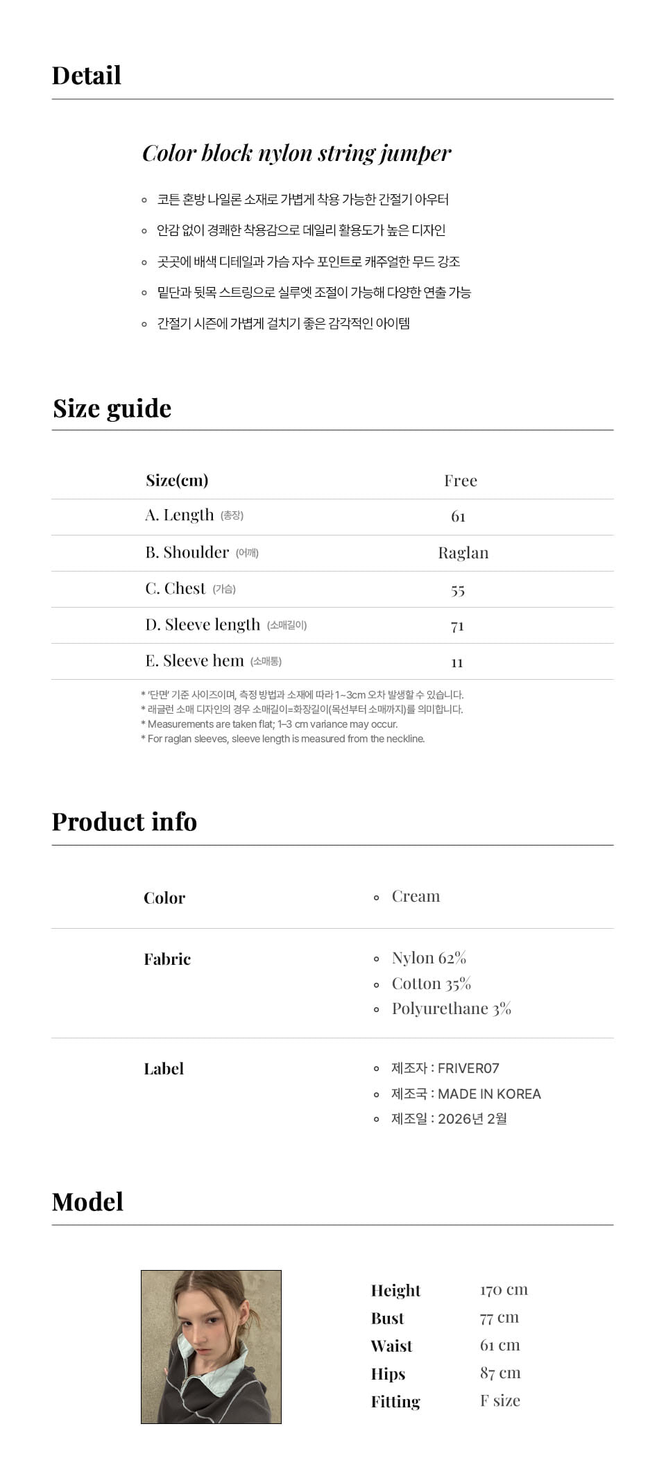 Color block nylon string jumper [FRSP05JP01]_Cream