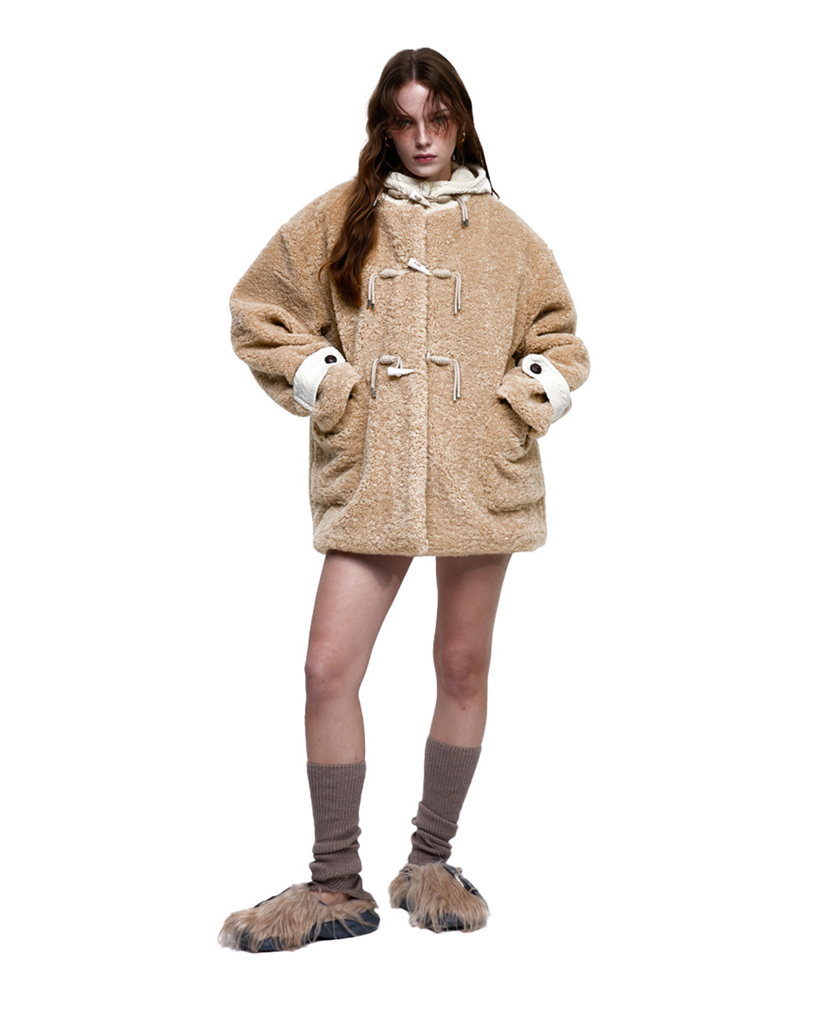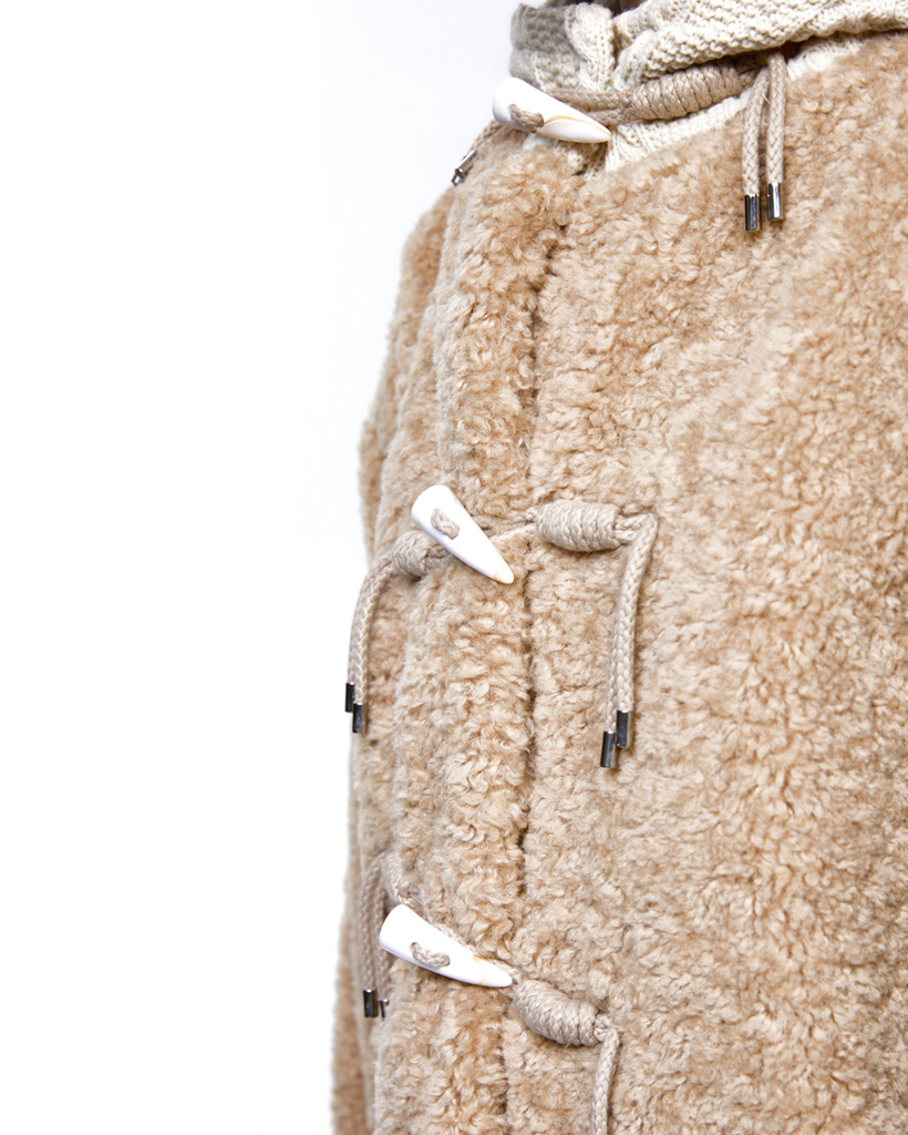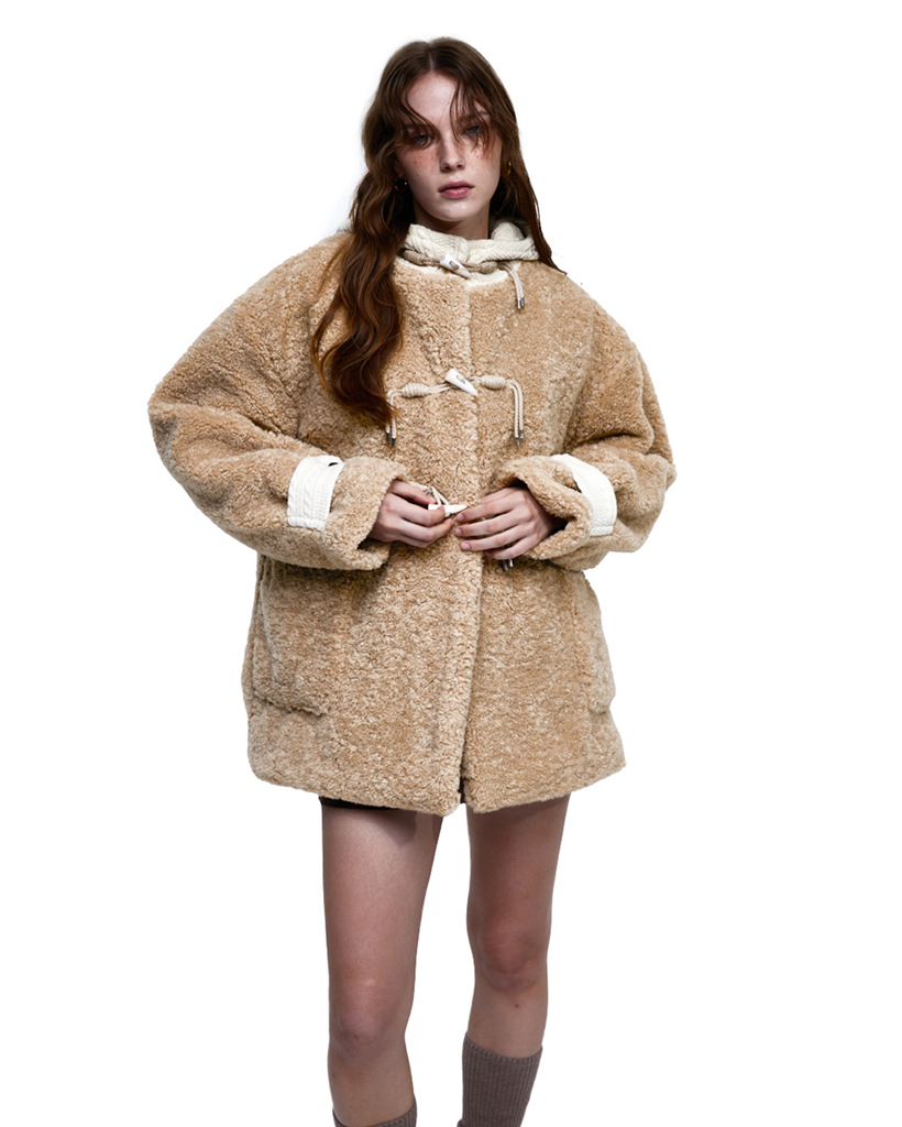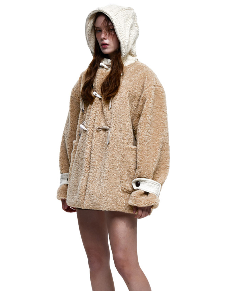 FUR & KNIT DUFFLE COAT - BEIGE