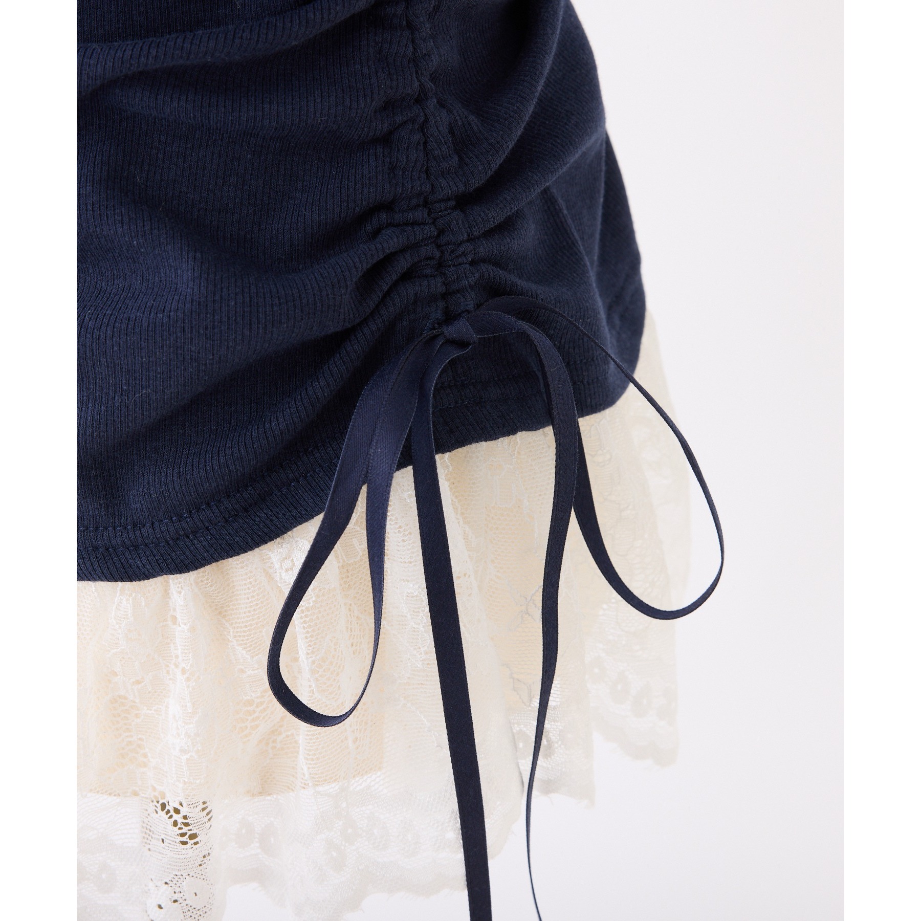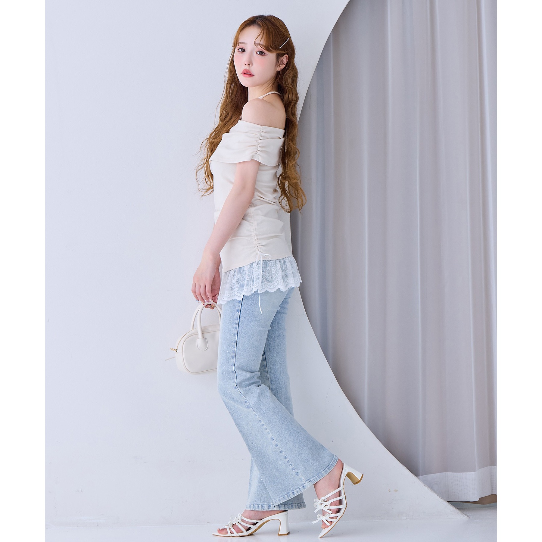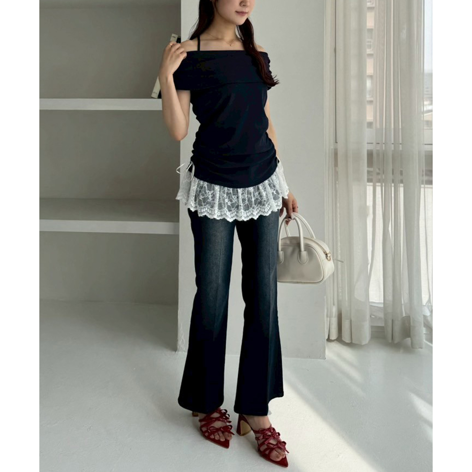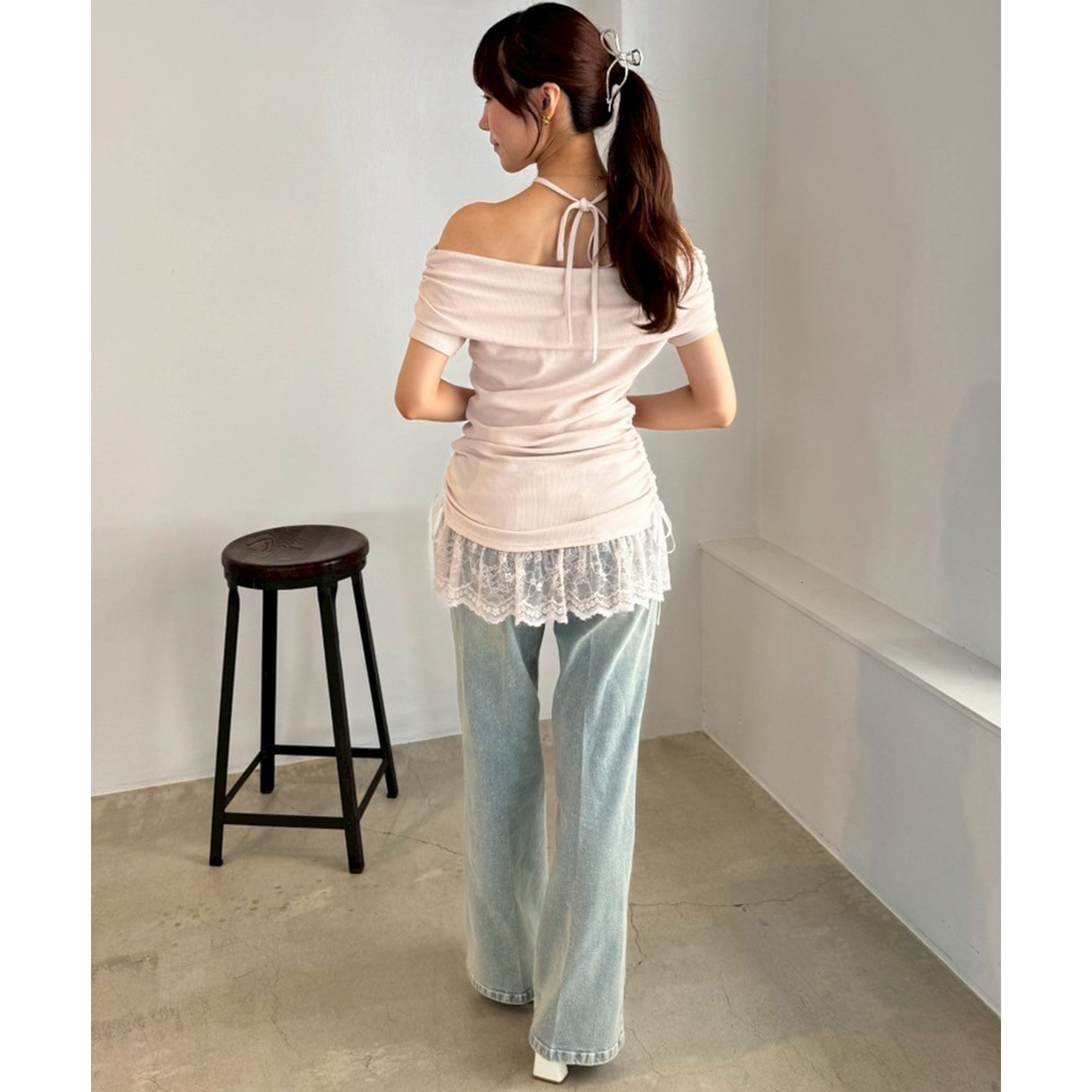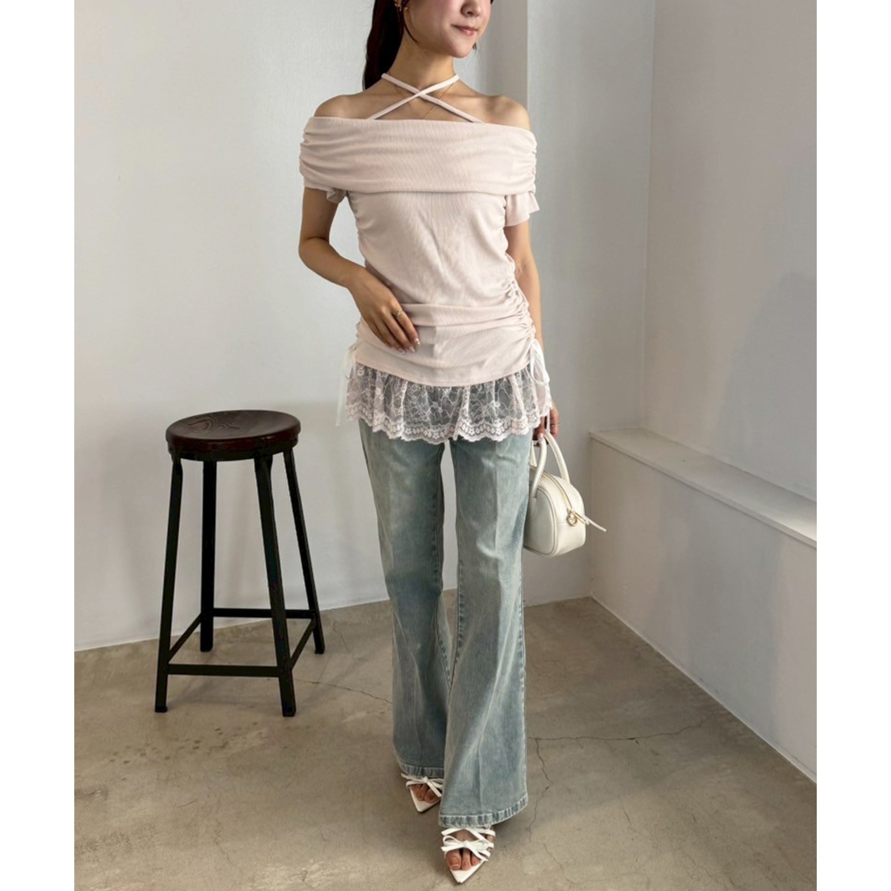 レース部分が動くたびにふんわりと揺れて、フェミニンな印象に。