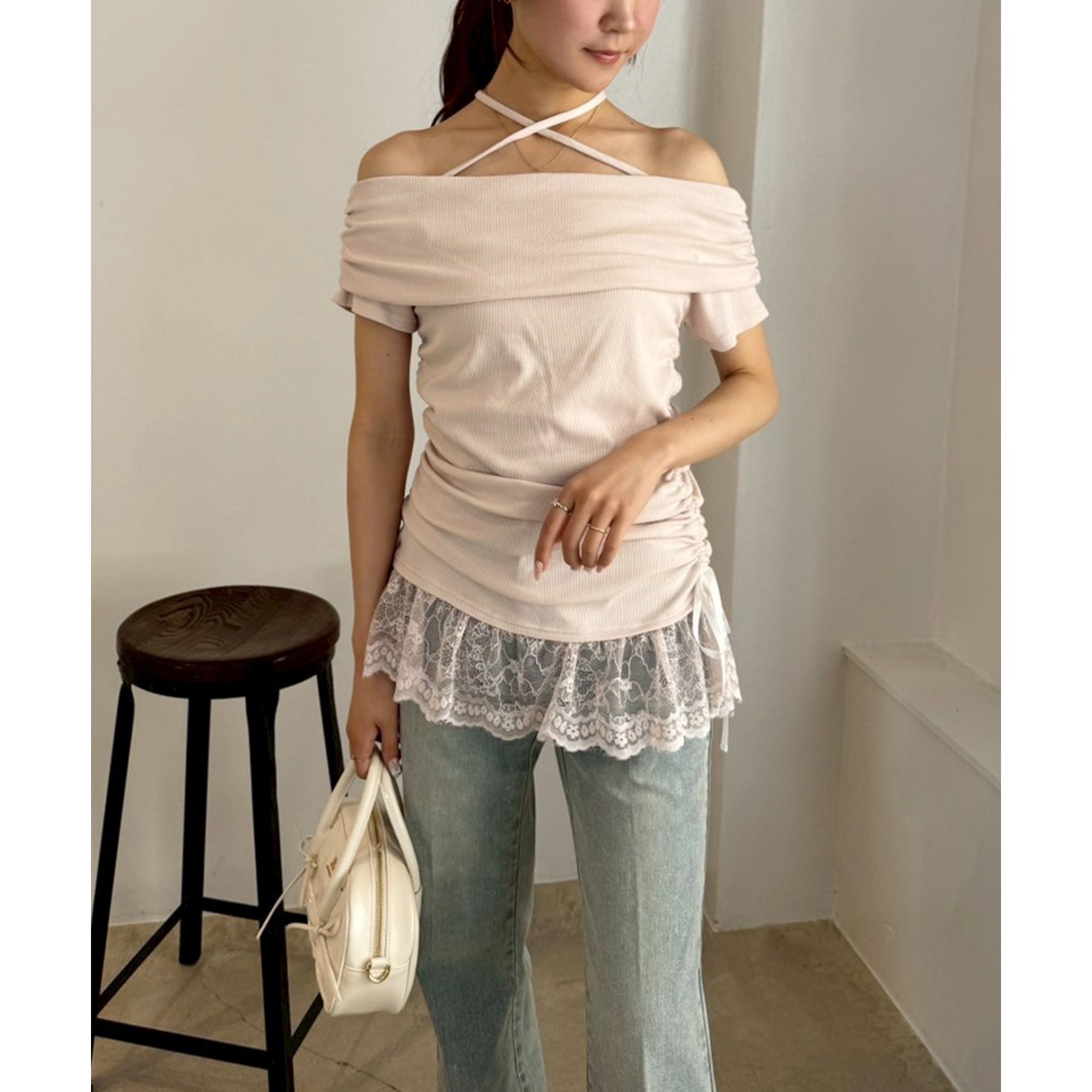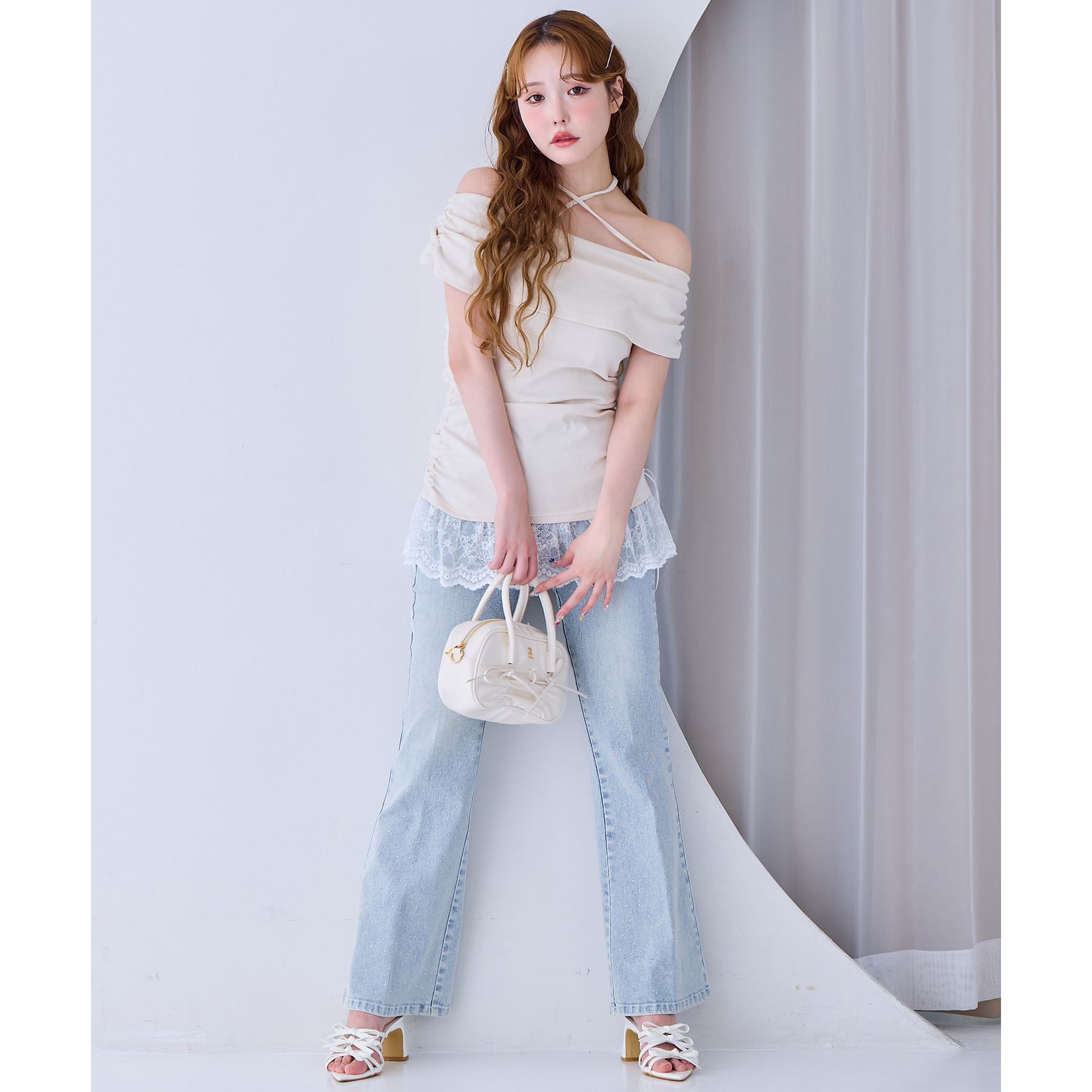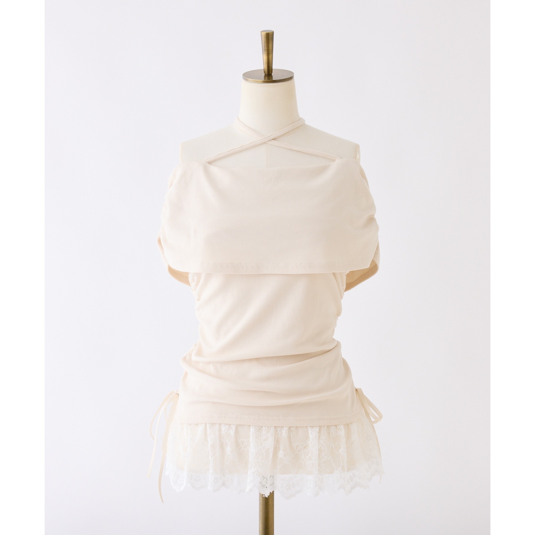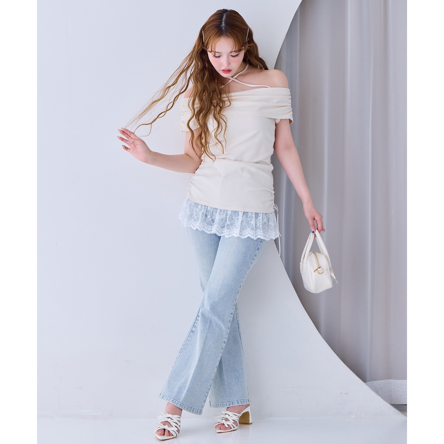 レース部分が動くたびにふんわりと揺れて、フェミニンな印象に。