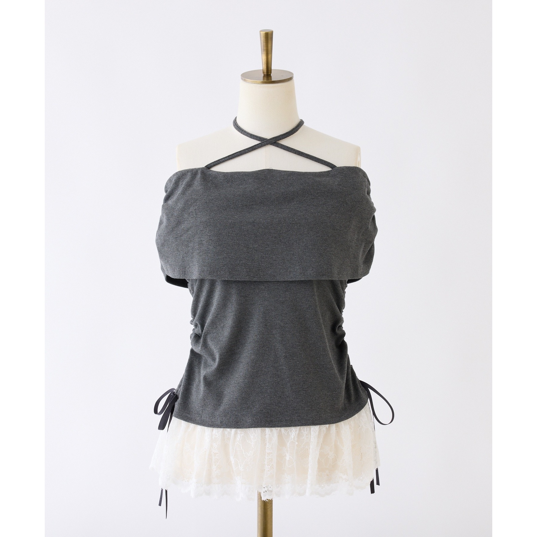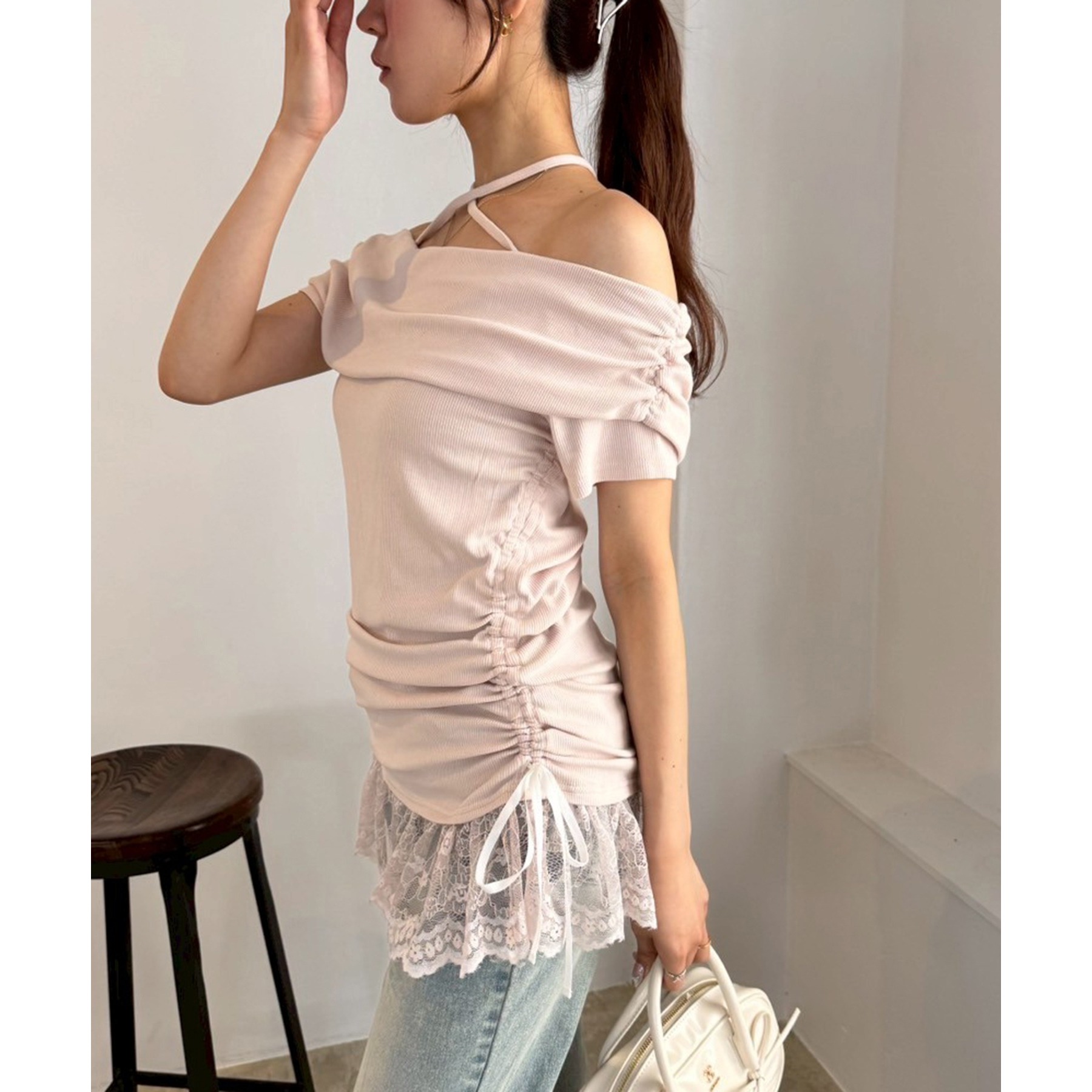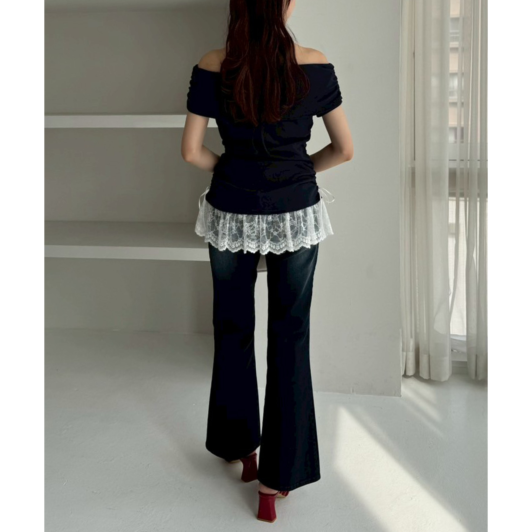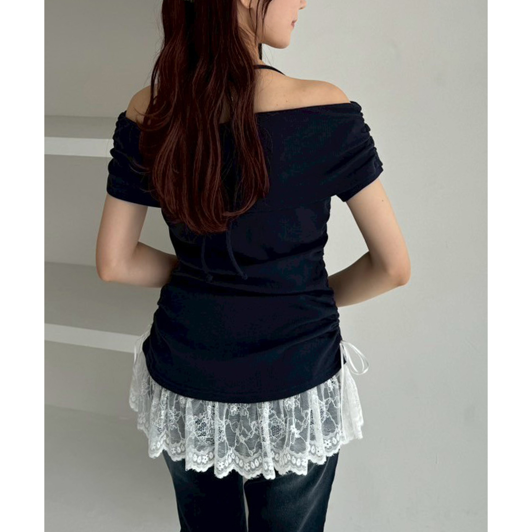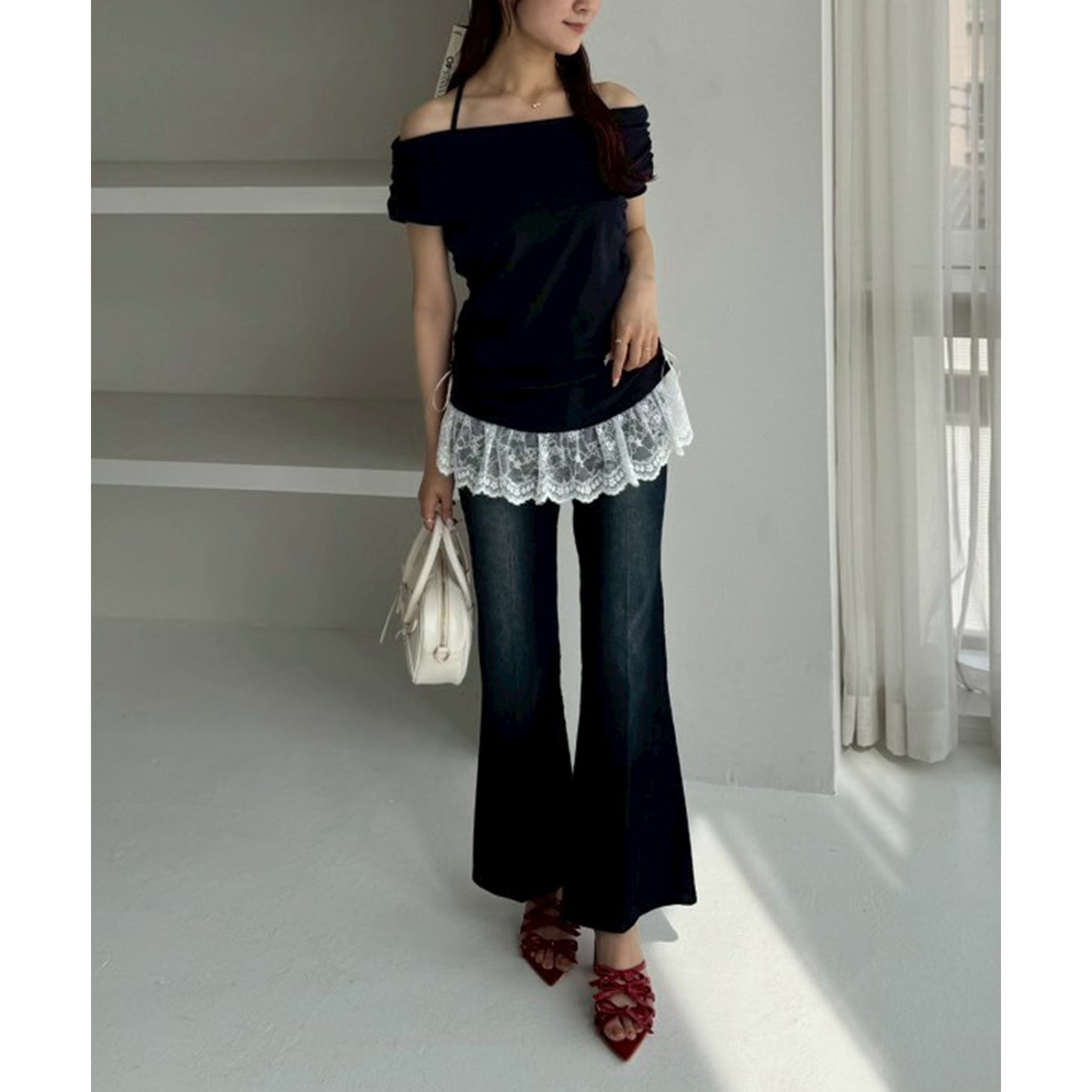 レース部分が動くたびにふんわりと揺れて、フェミニンな印象に。