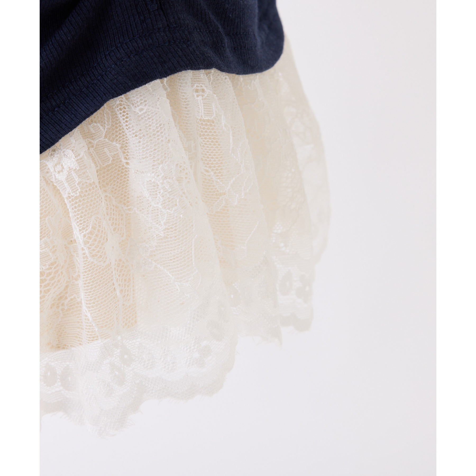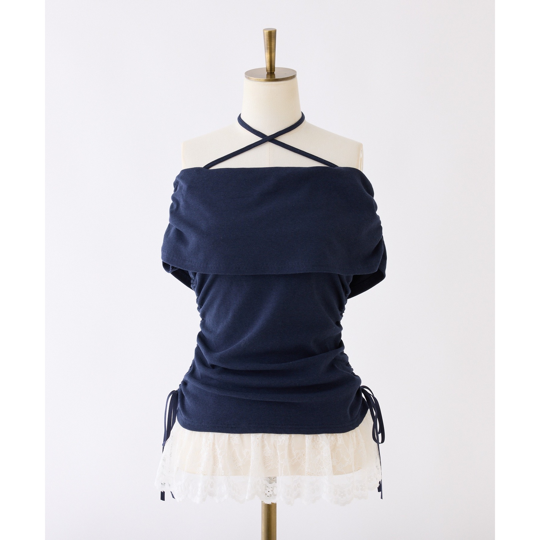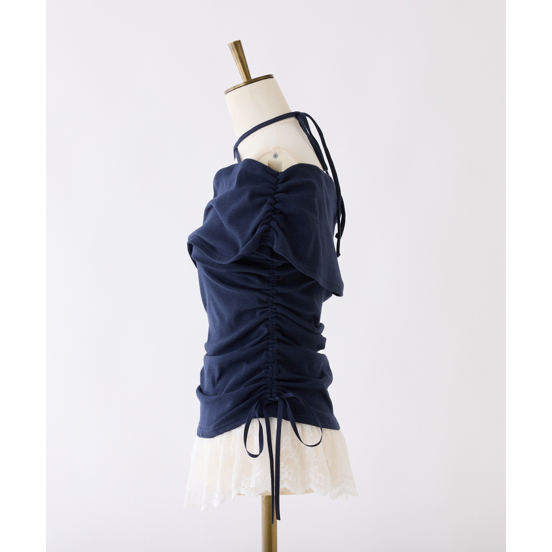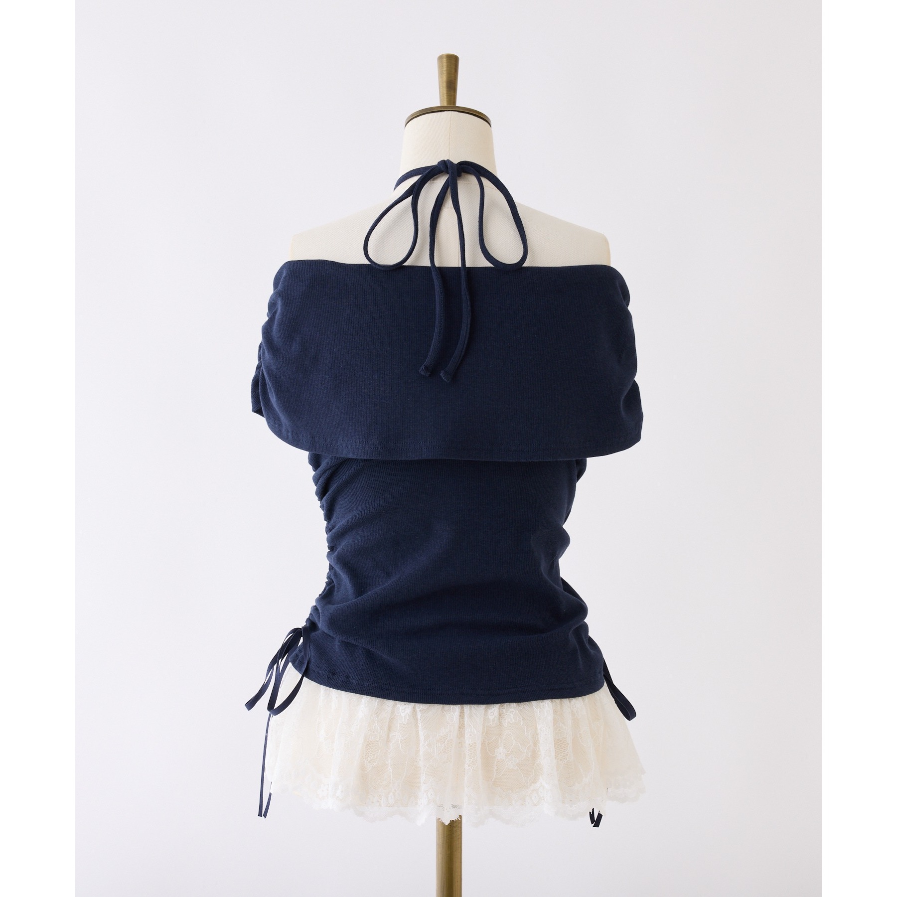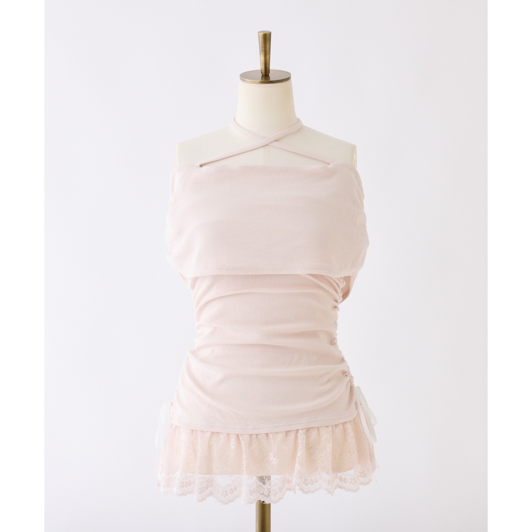 レース部分が動くたびにふんわりと揺れて、フェミニンな印象に。