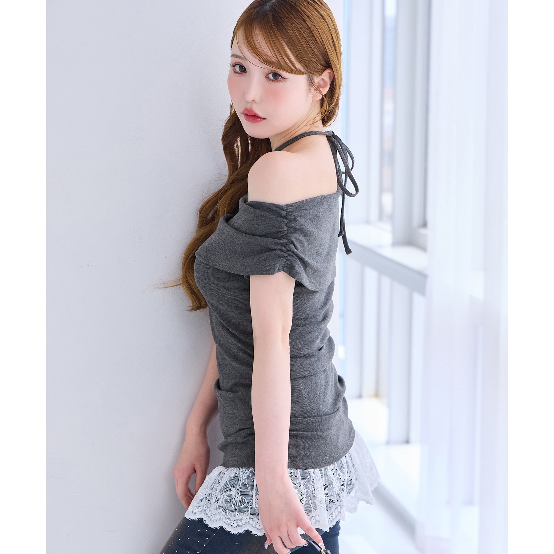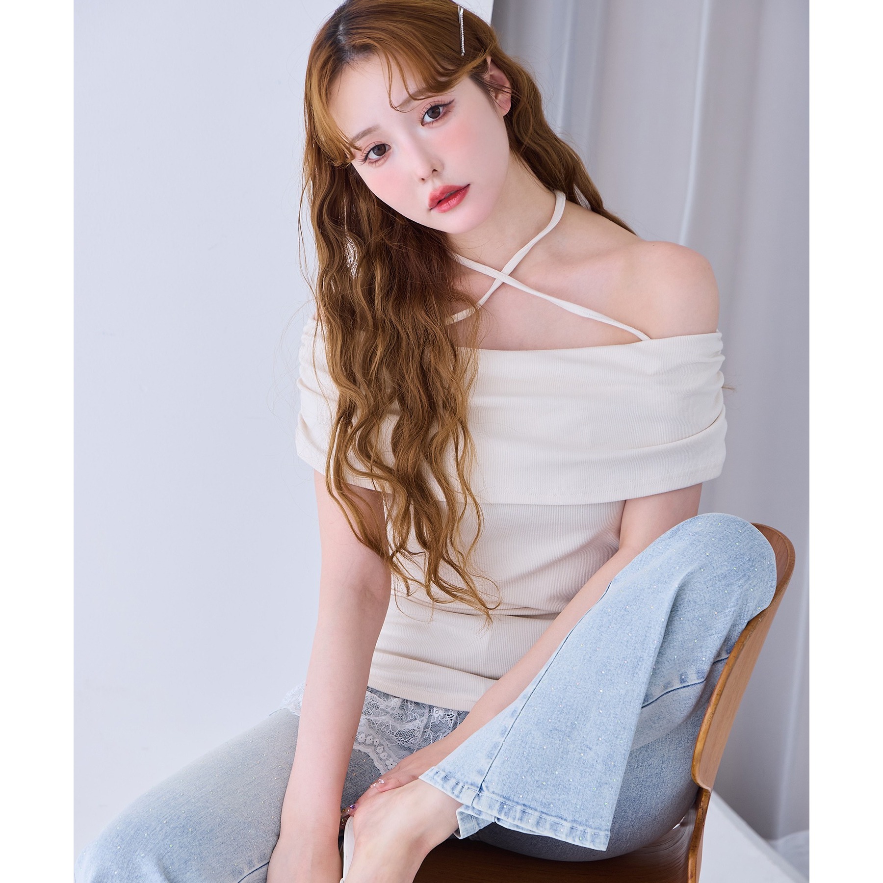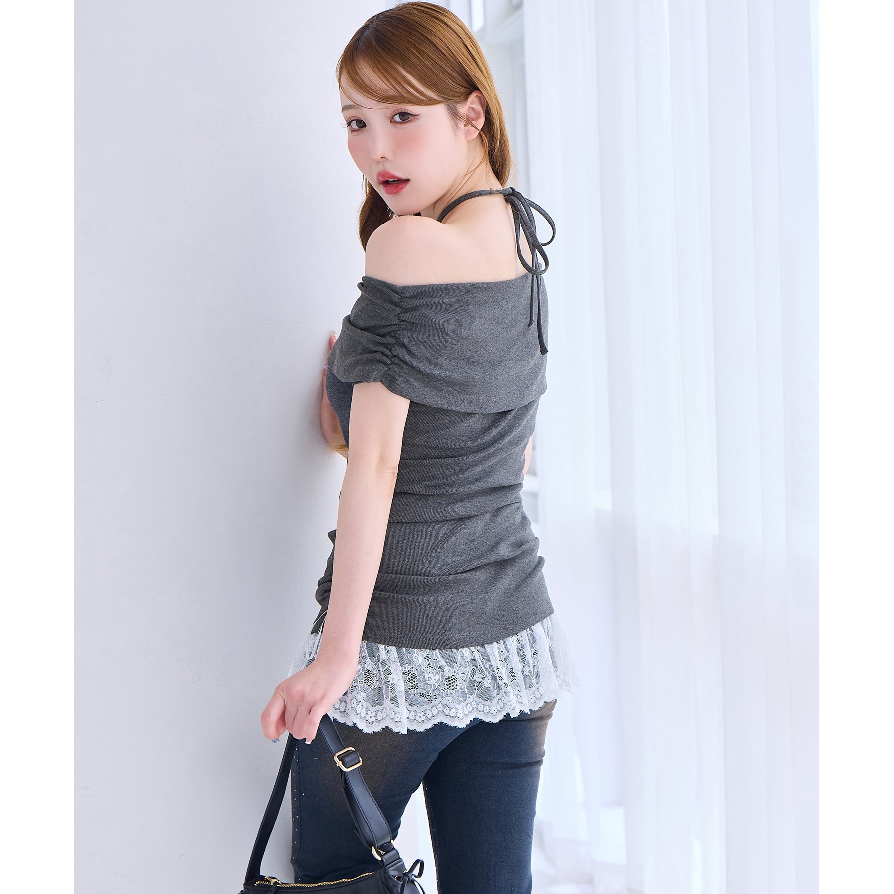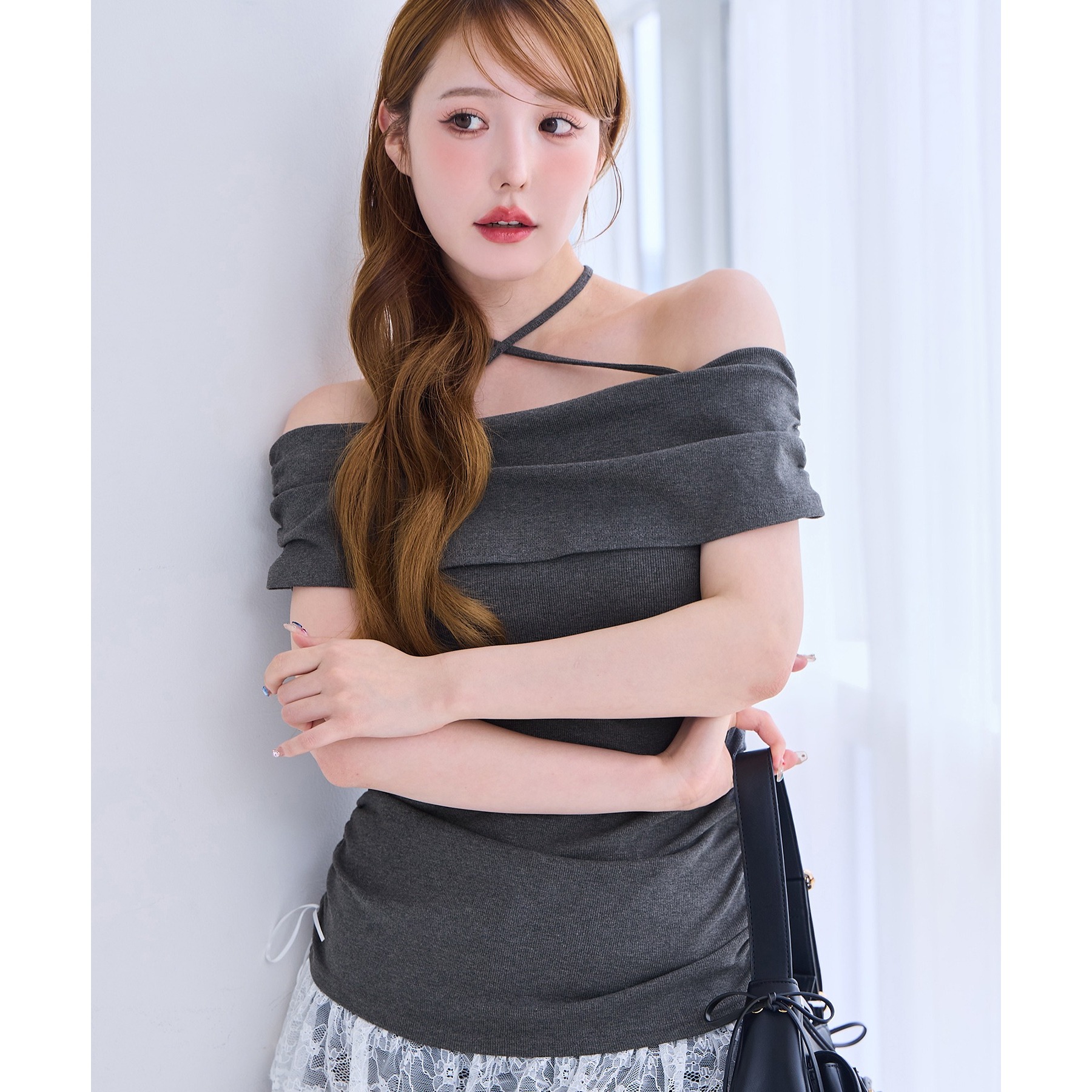 オフショル部分は大きく折り返されたデザインで、大人っぽい雰囲気を演出します。