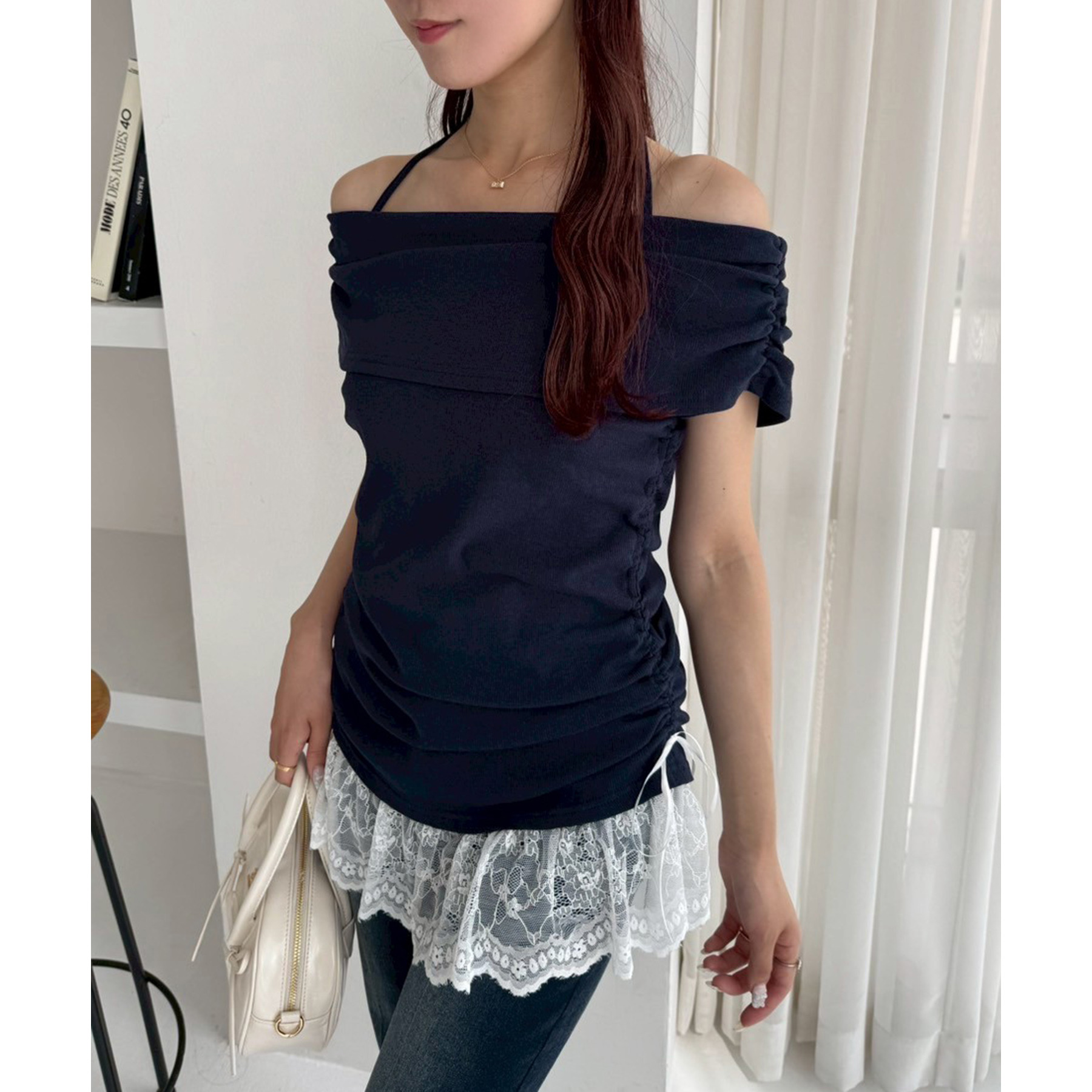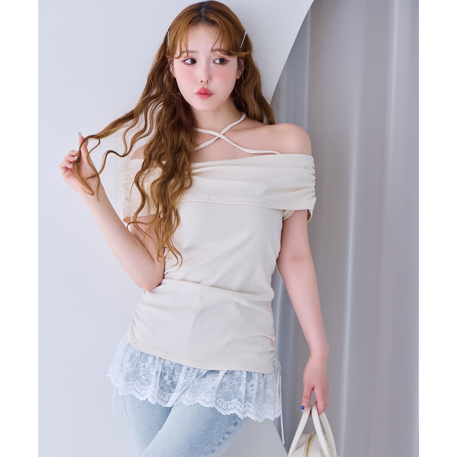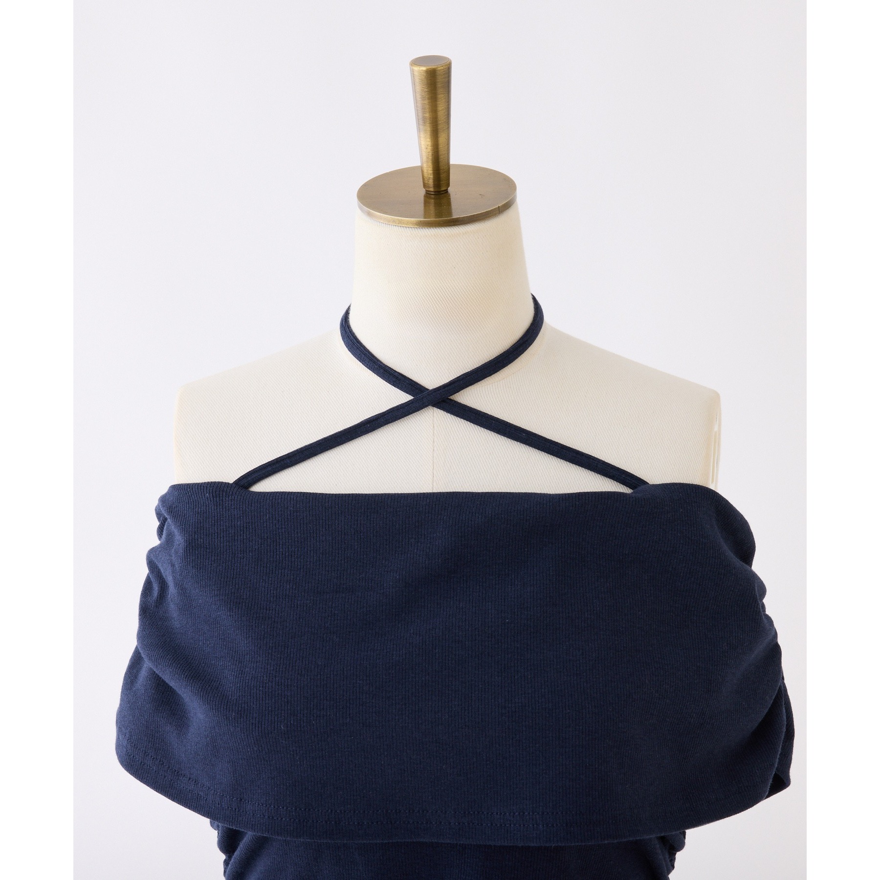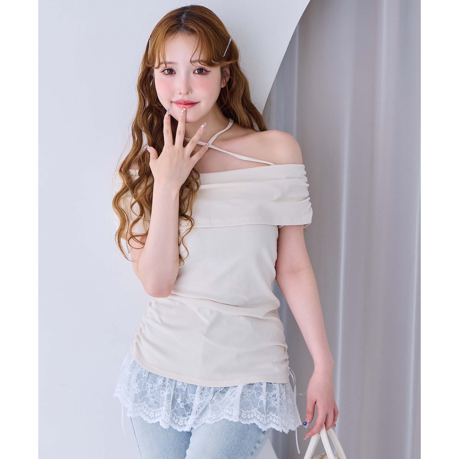 オフショル部分は大きく折り返されたデザインで、大人っぽい雰囲気を演出します。