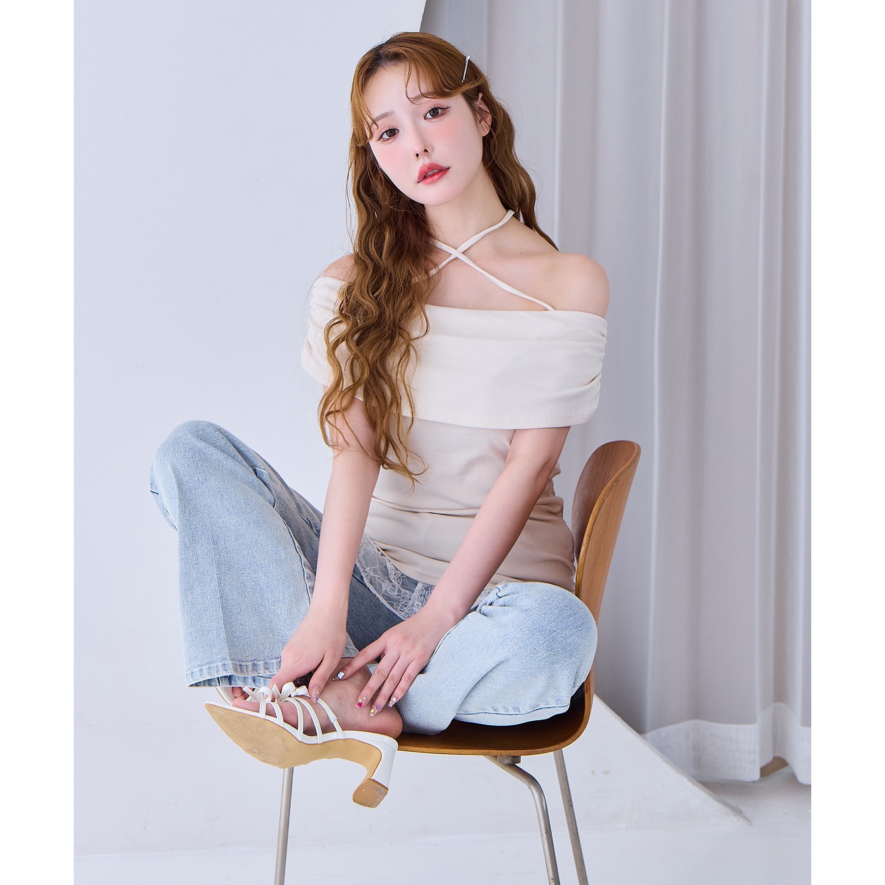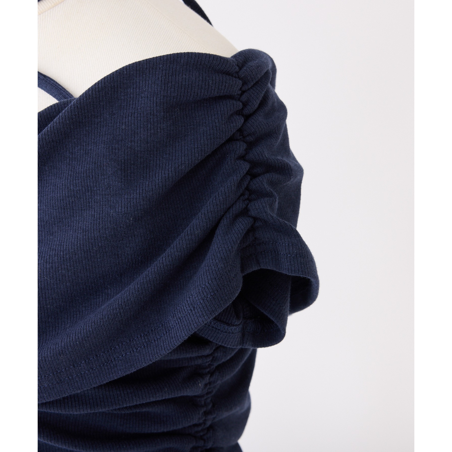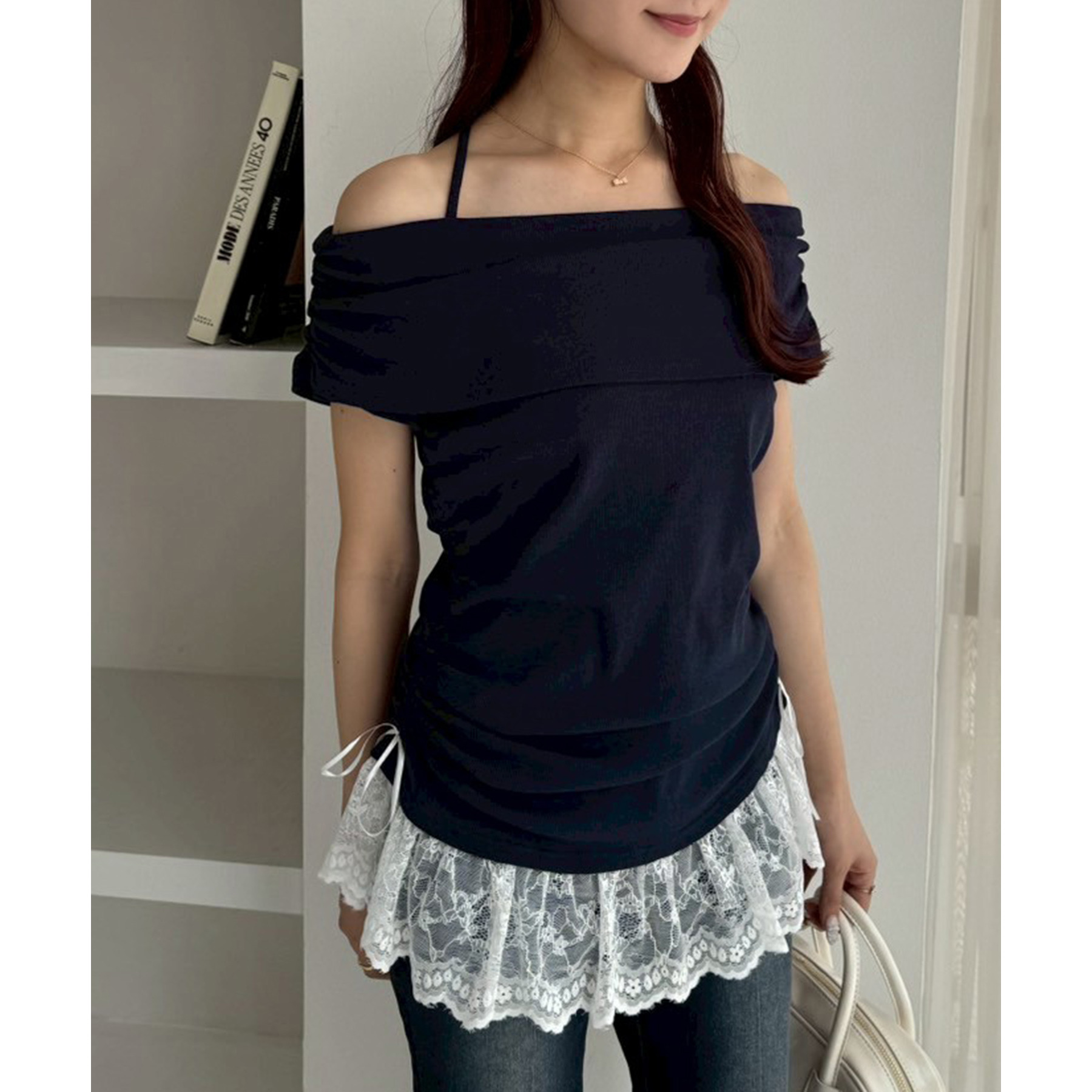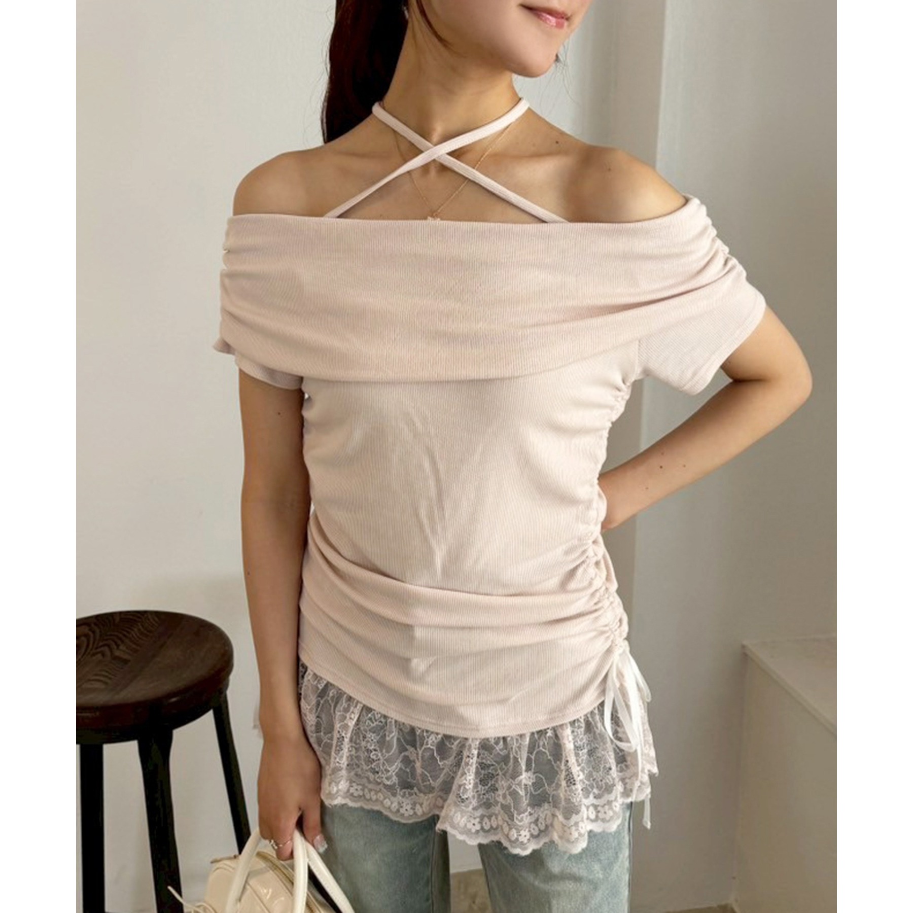 オフショル部分は大きく折り返されたデザインで、大人っぽい雰囲気を演出します。