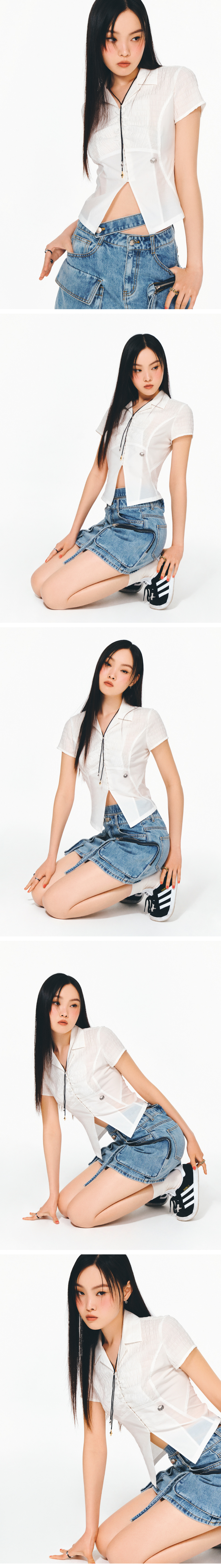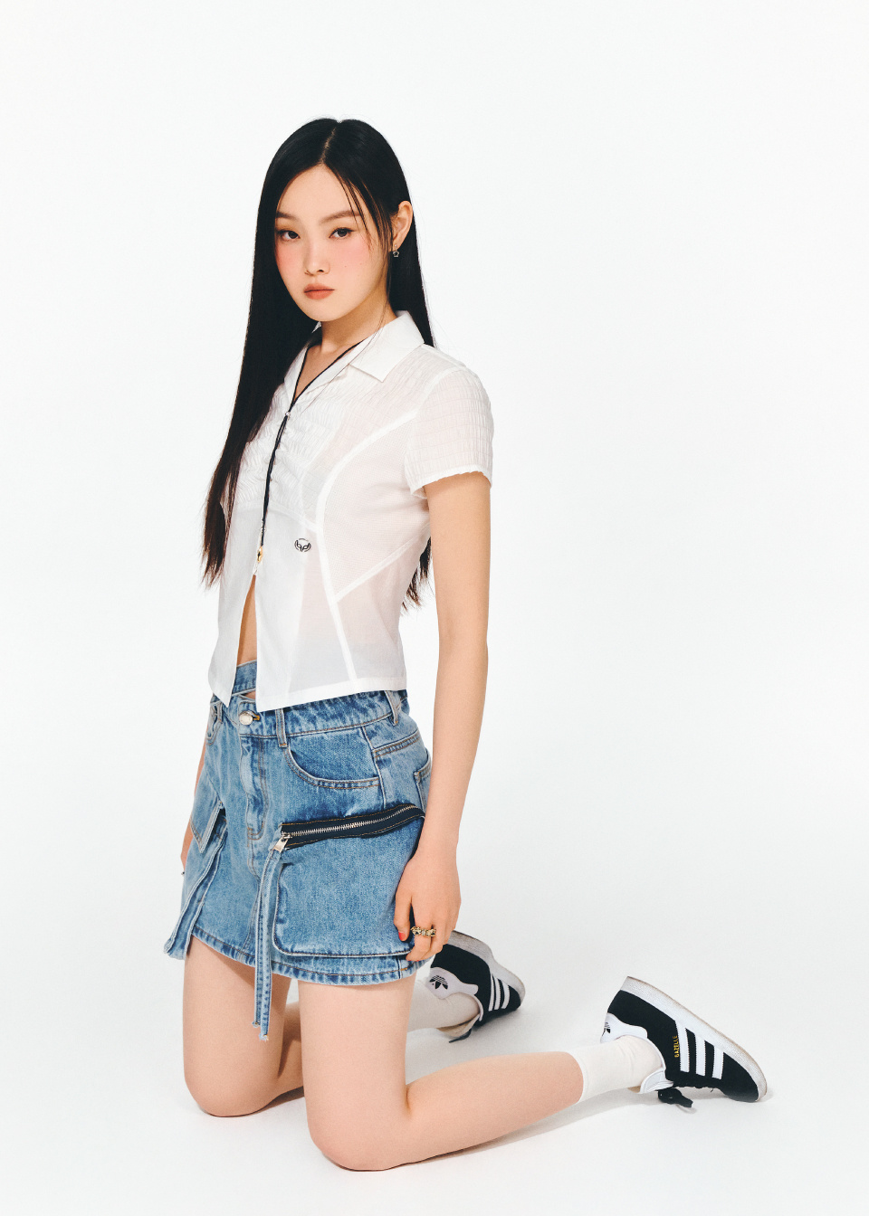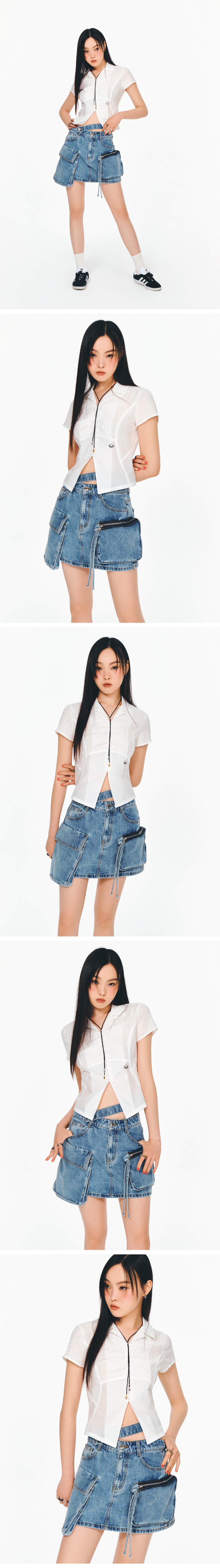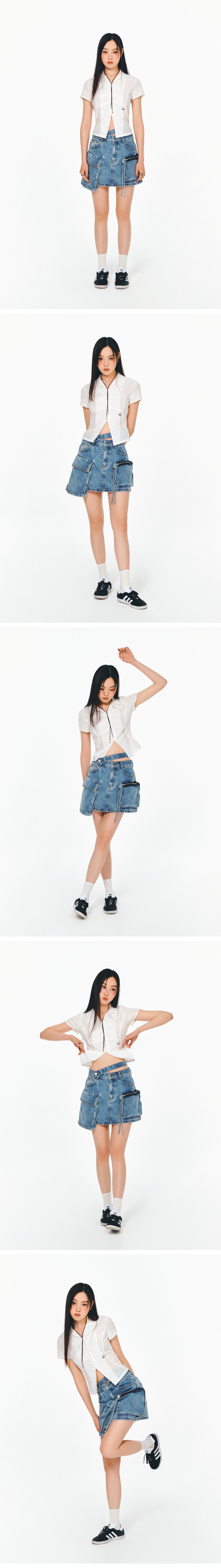 [Influencer pick] DENIM CARGO SHORT SKIRT BLUE