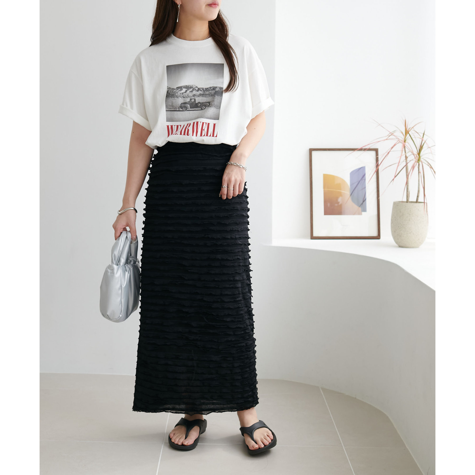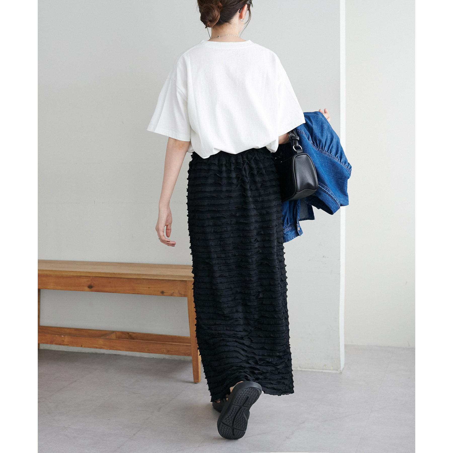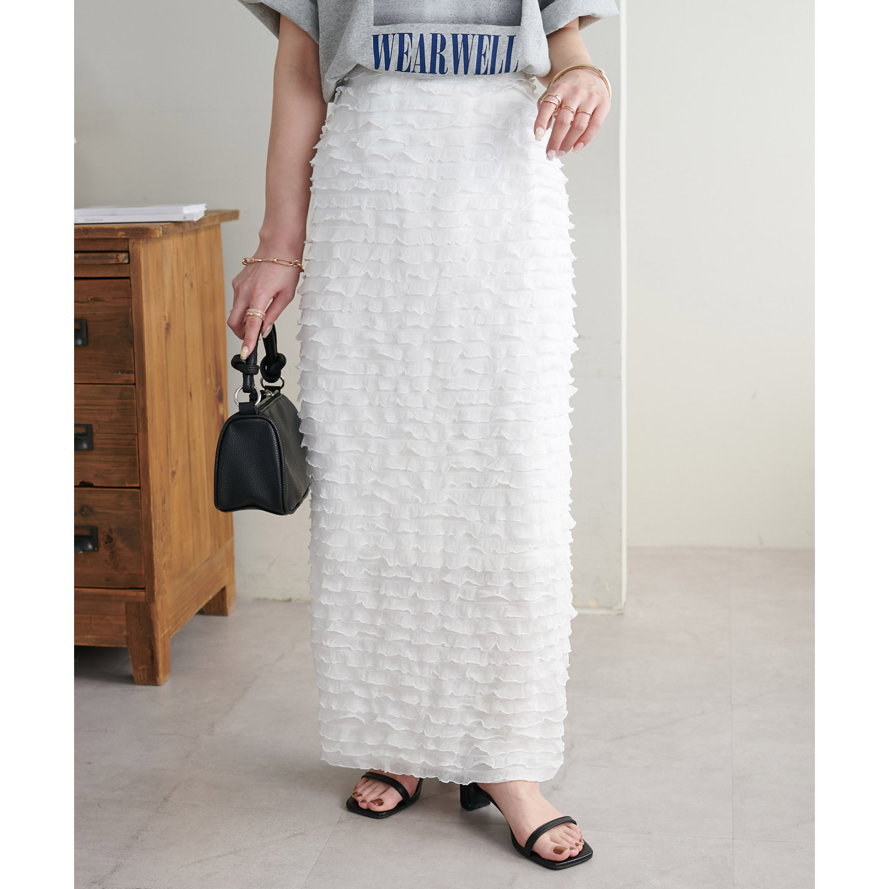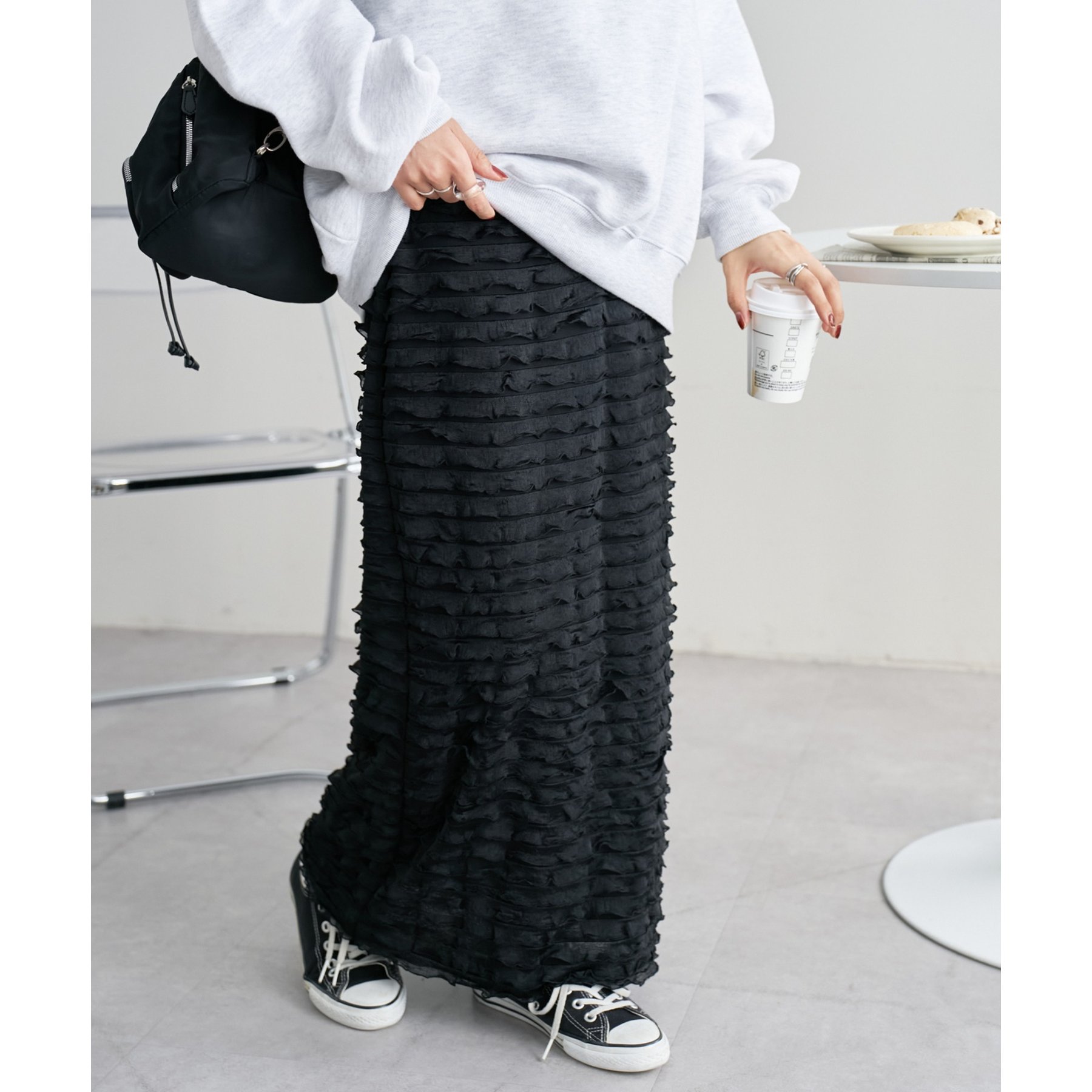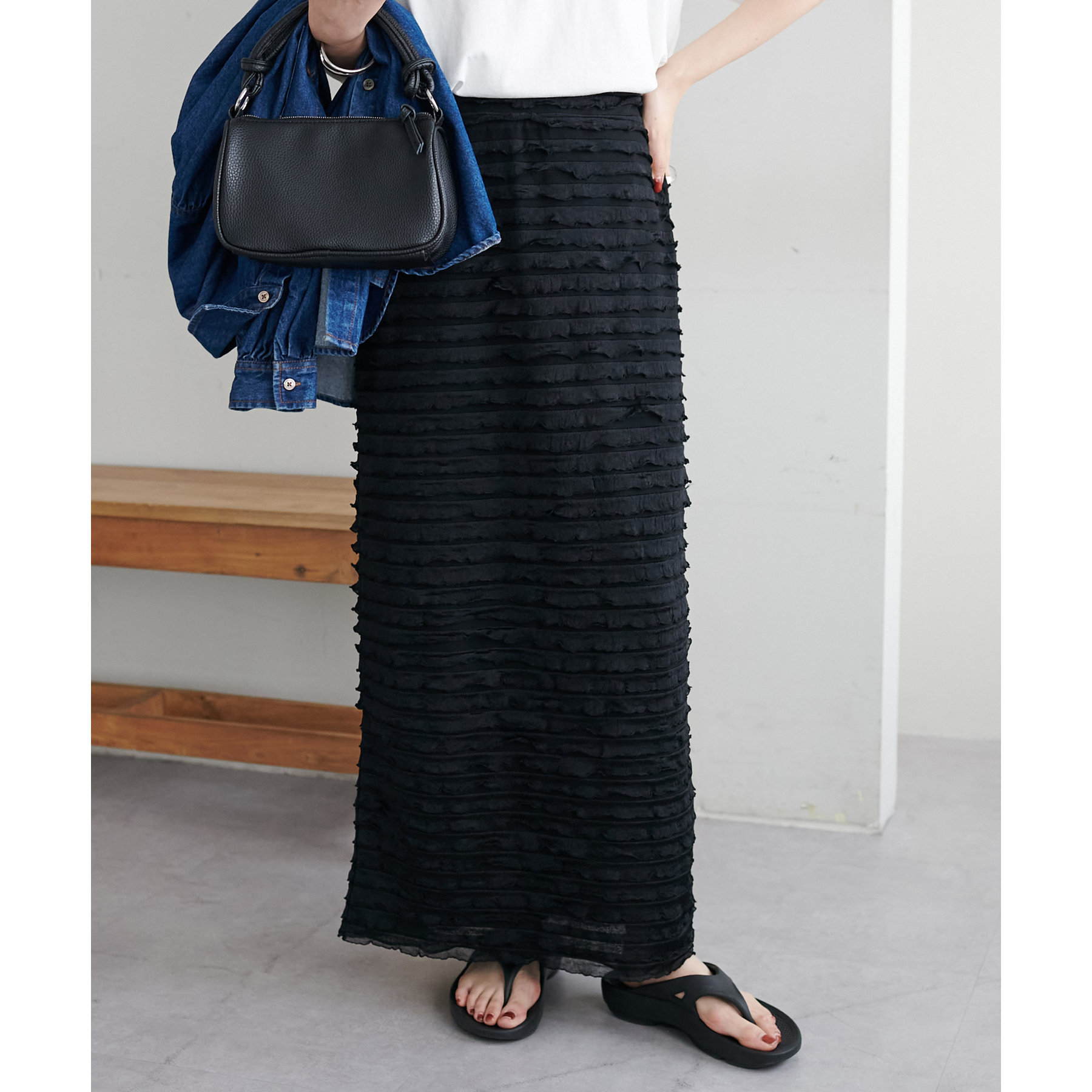表面変化のあるフリルティアードがアクセントになり、シンプルコーデでも映えるスカート。