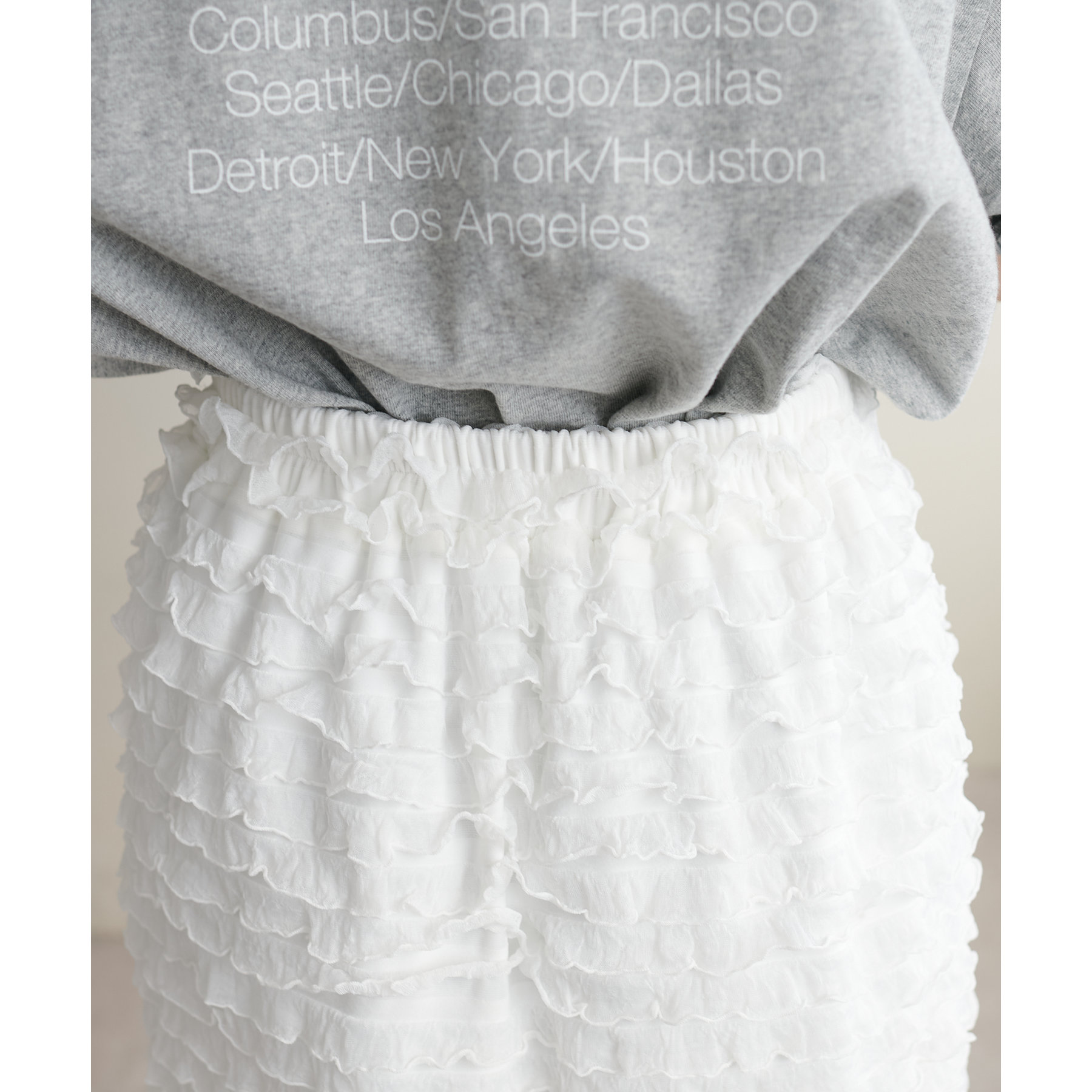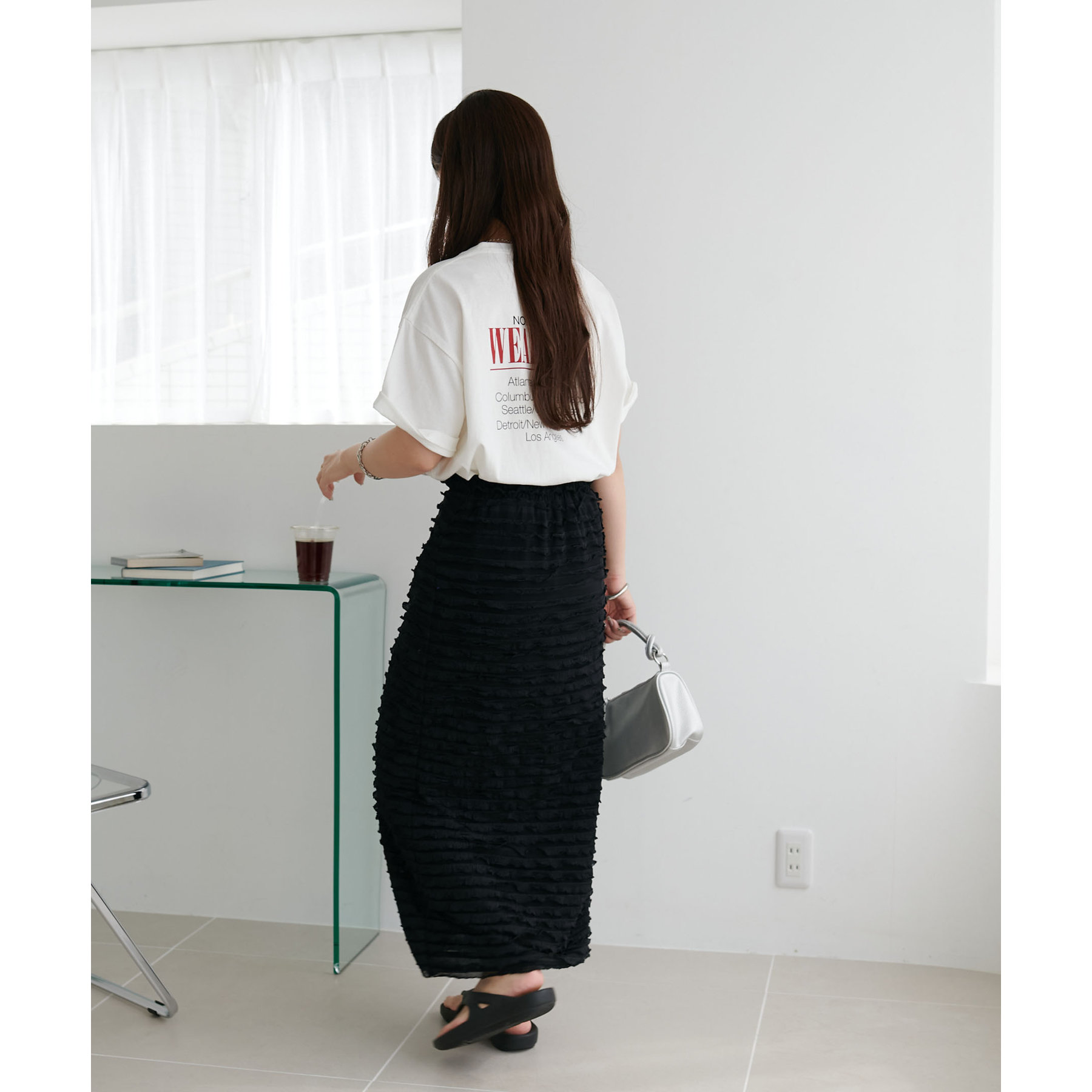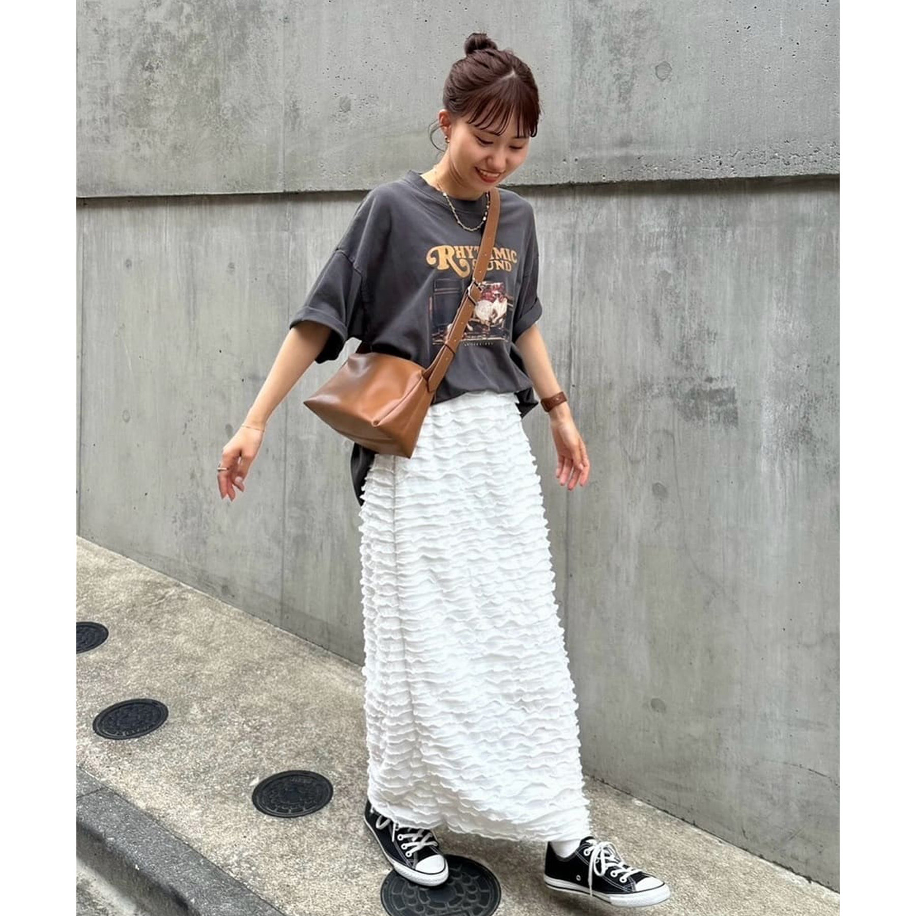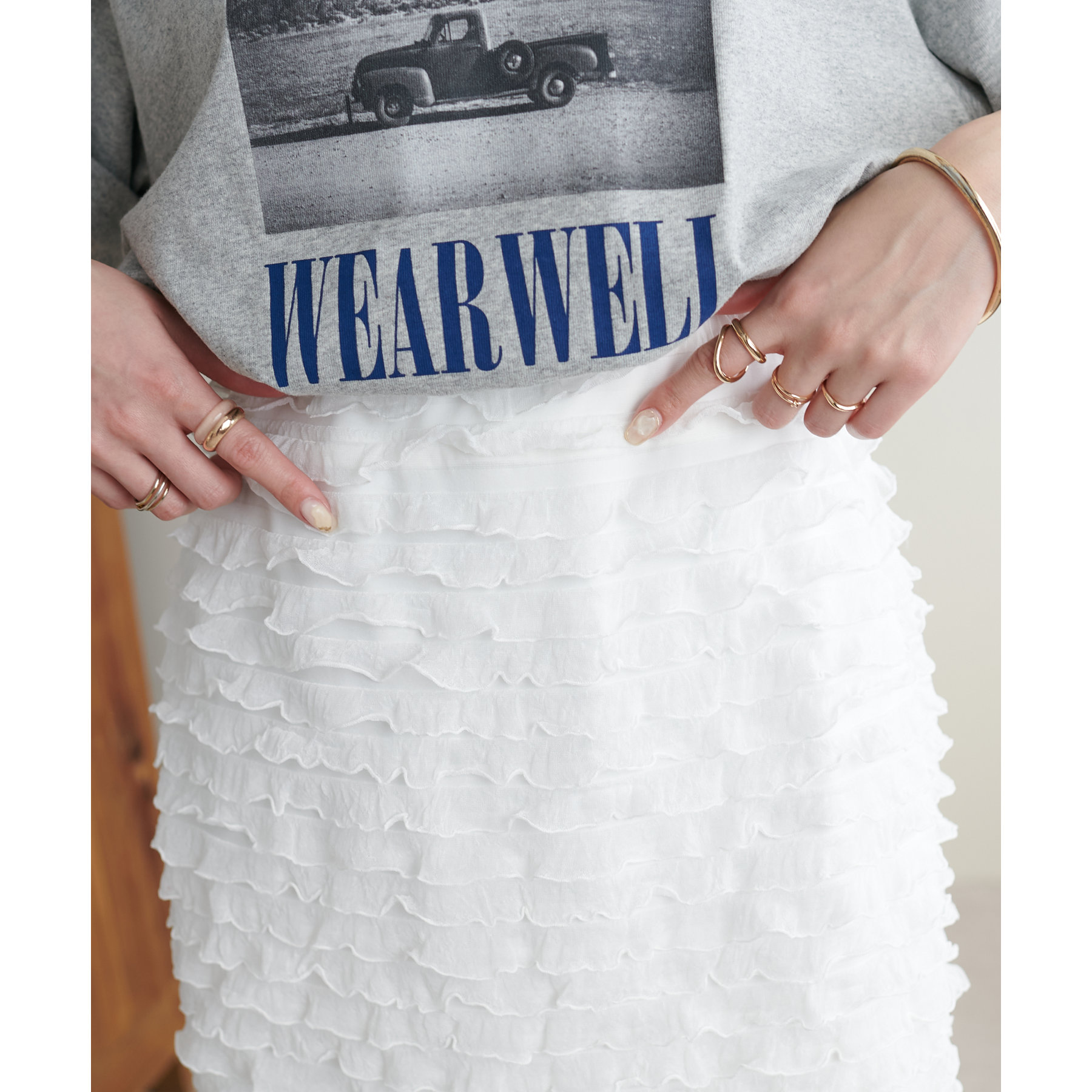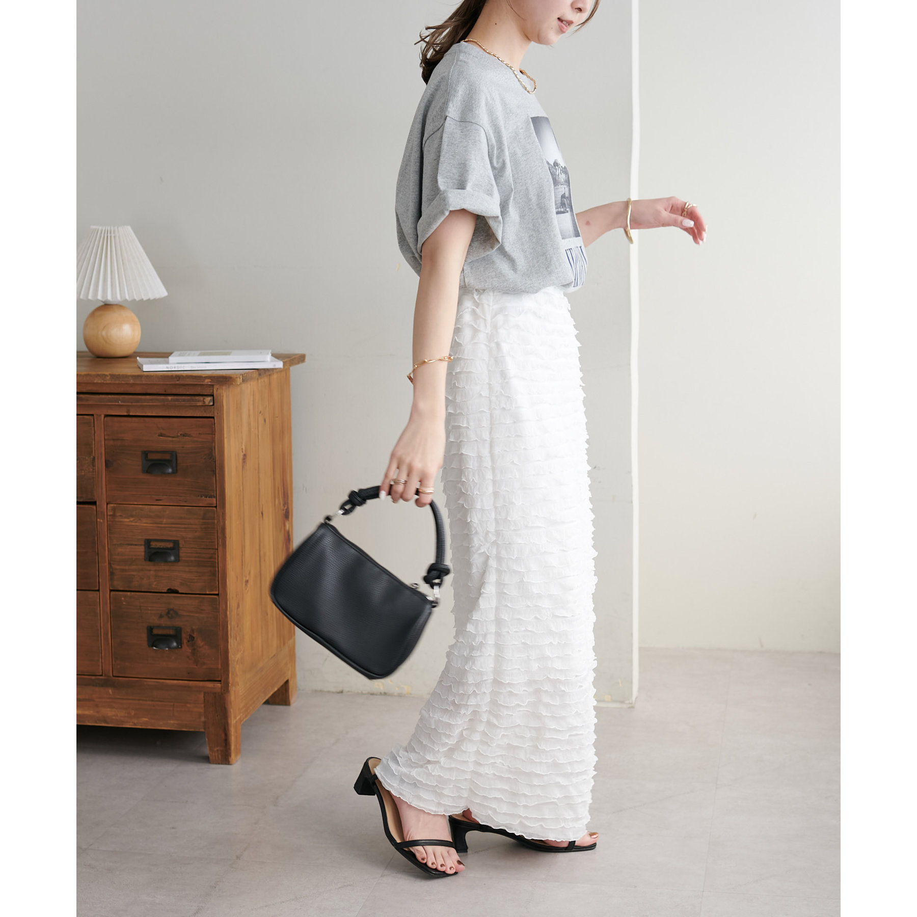 表面変化のあるフリルティアードがアクセントになり、シンプルコーデでも映えるスカート。