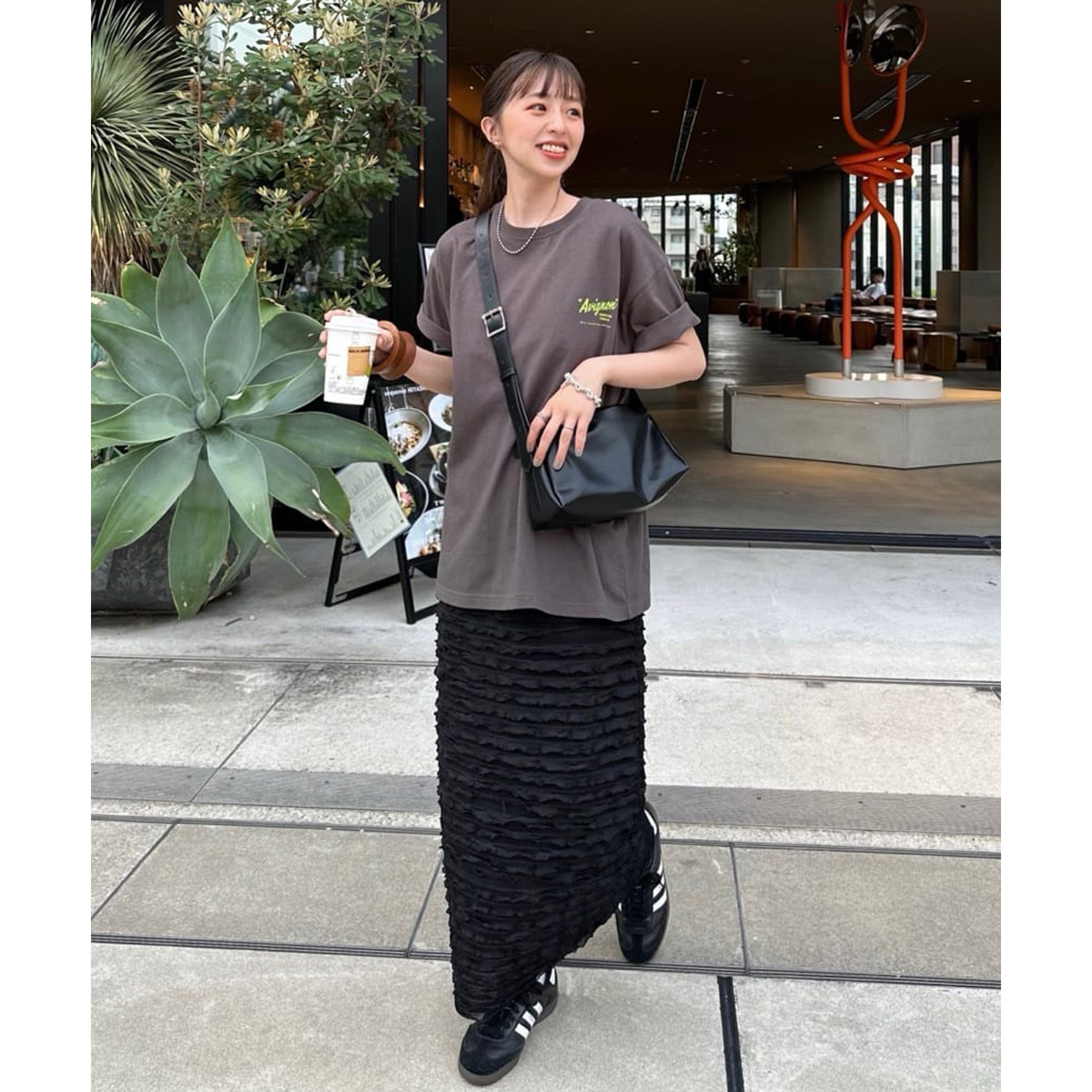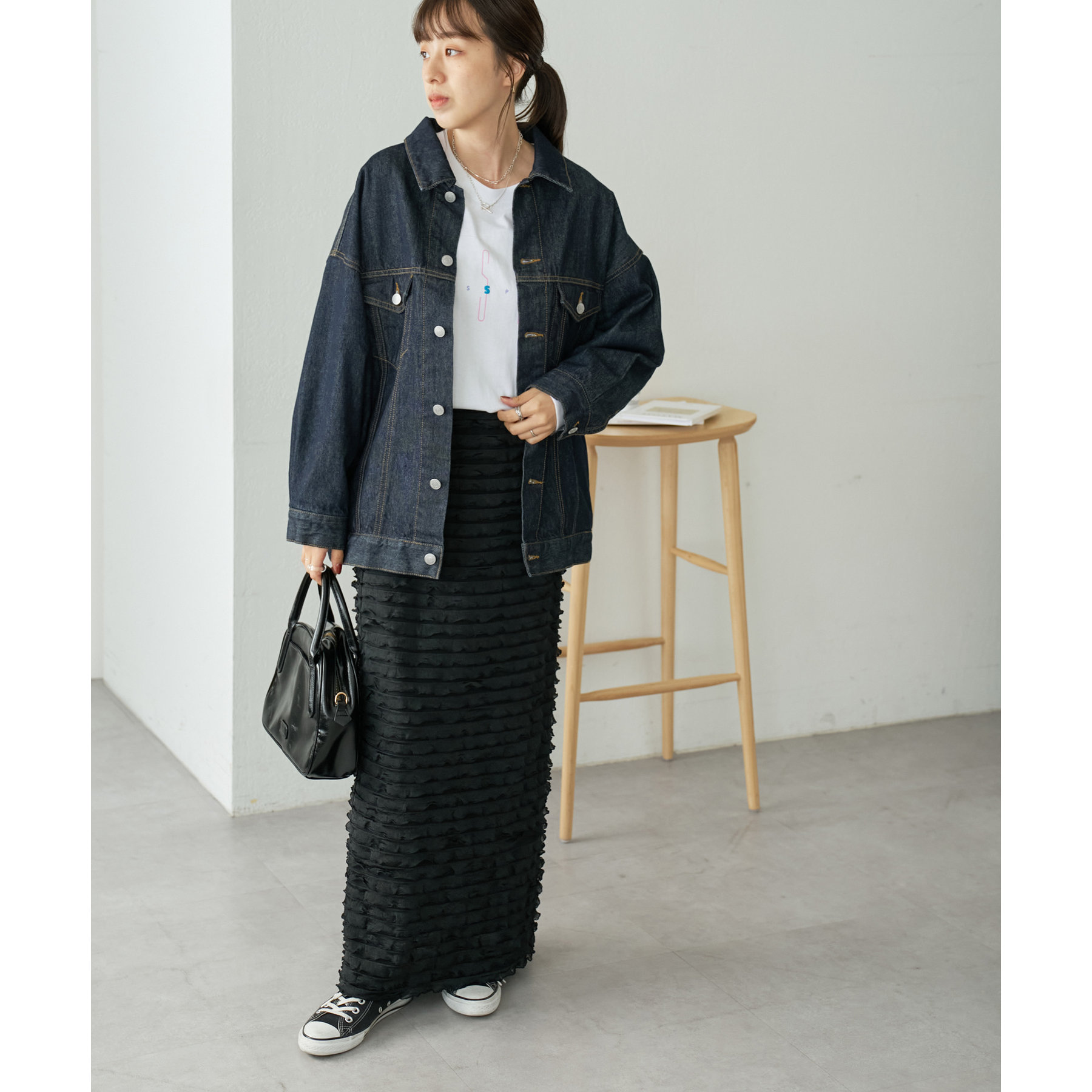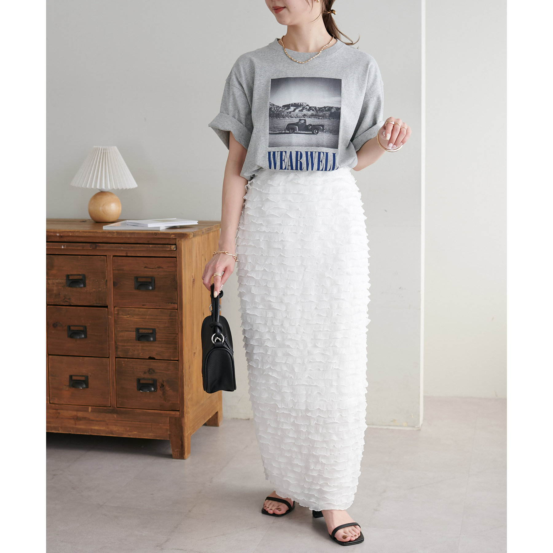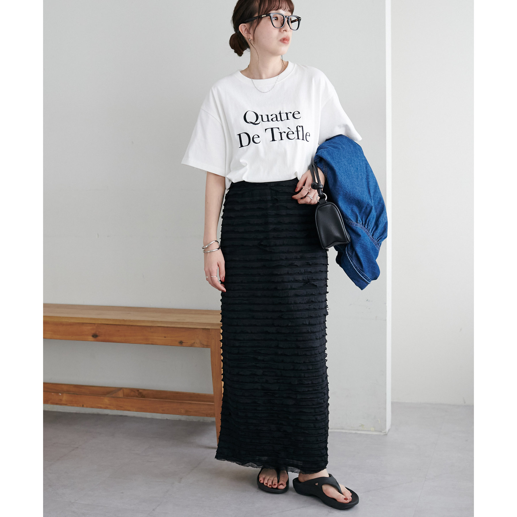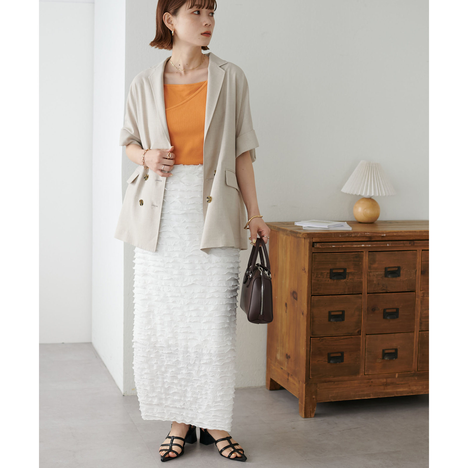 表面変化のあるフリルティアードがアクセントになり、シンプルコーデでも映えるスカート。