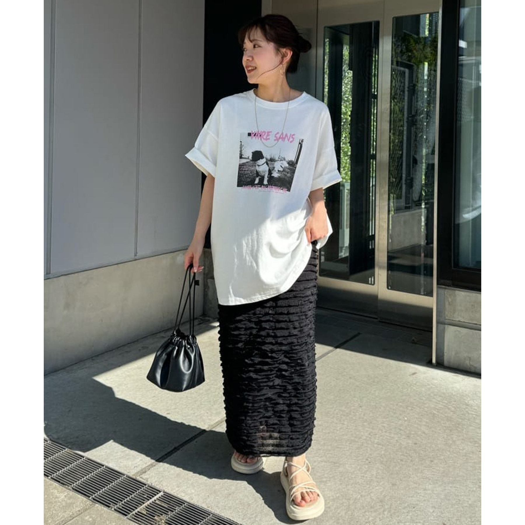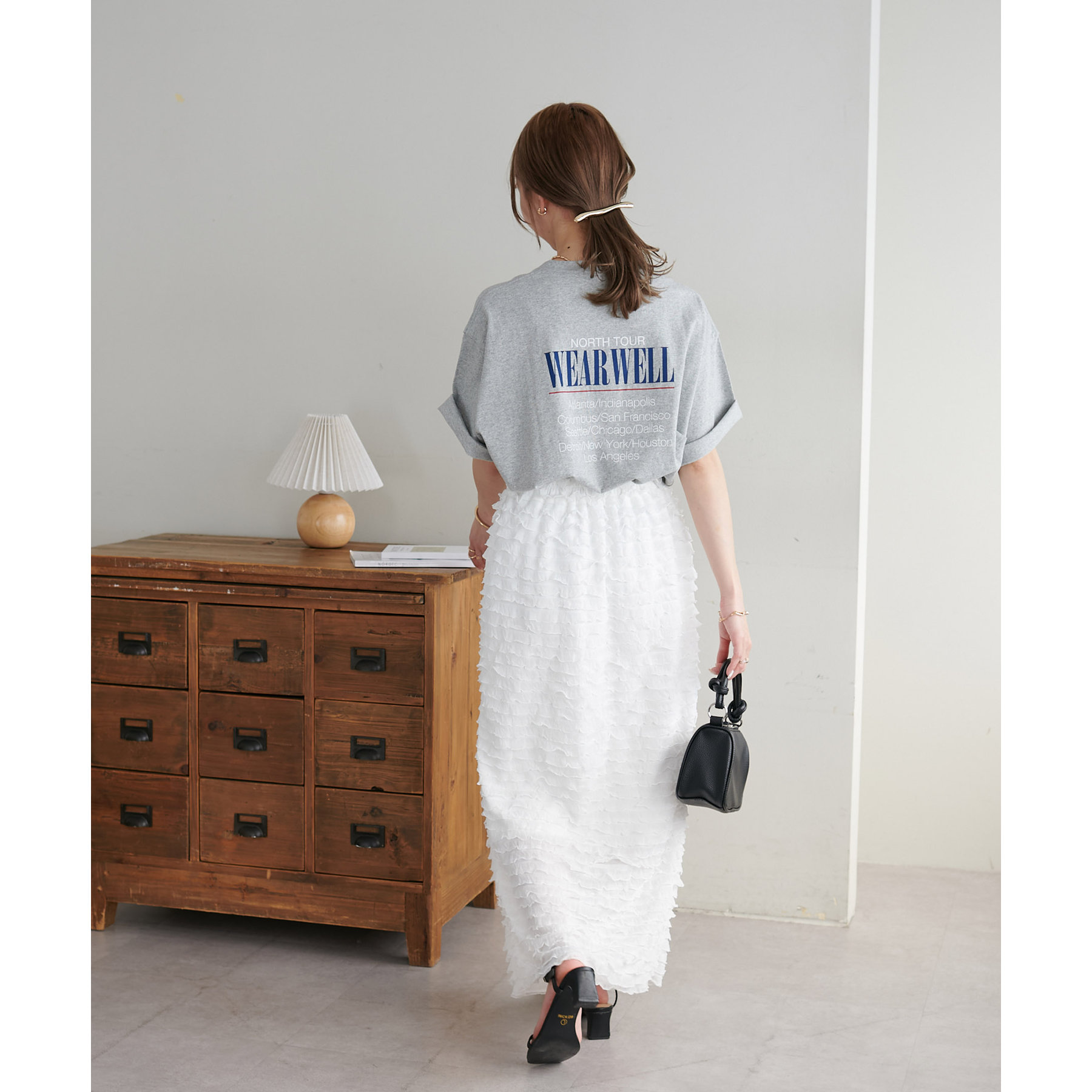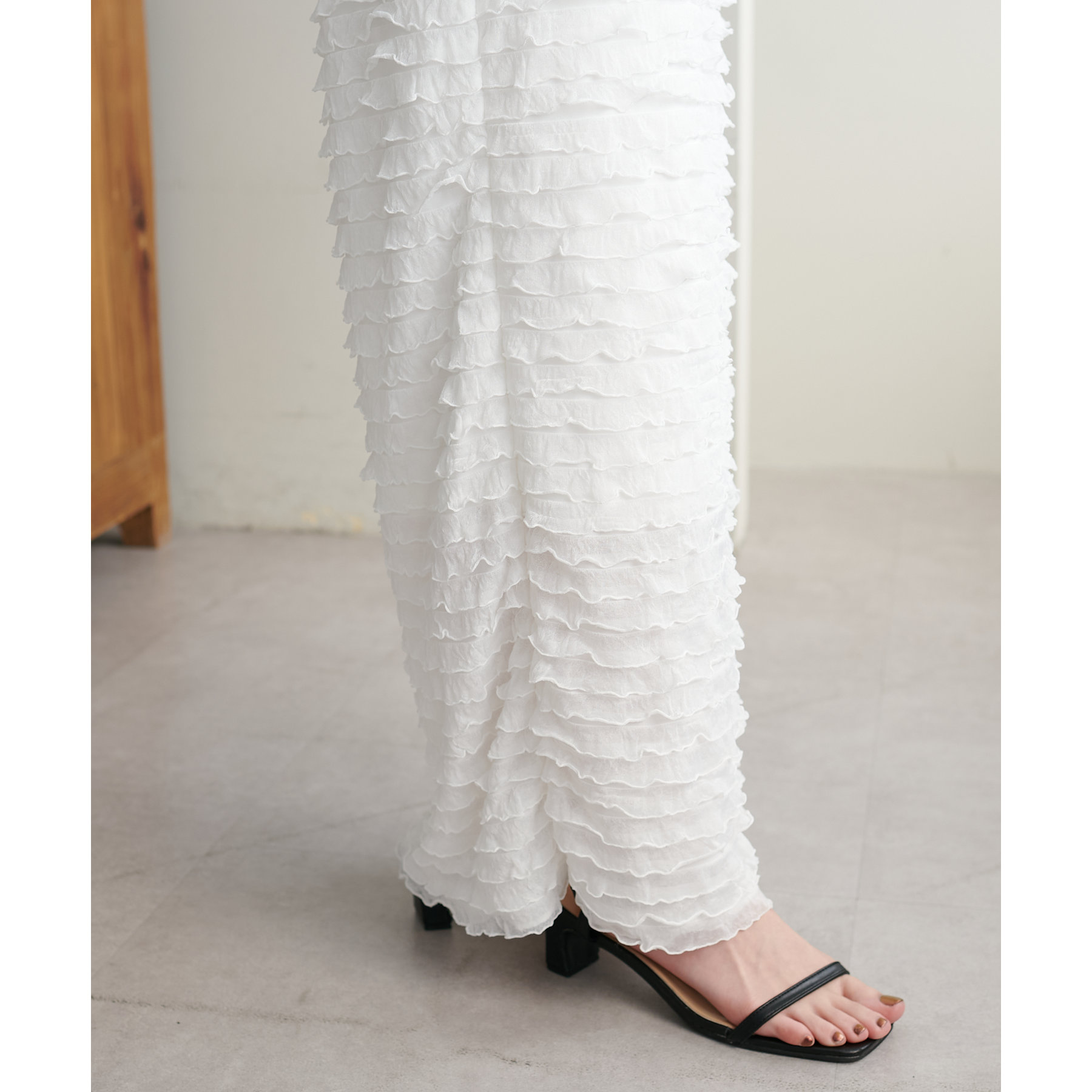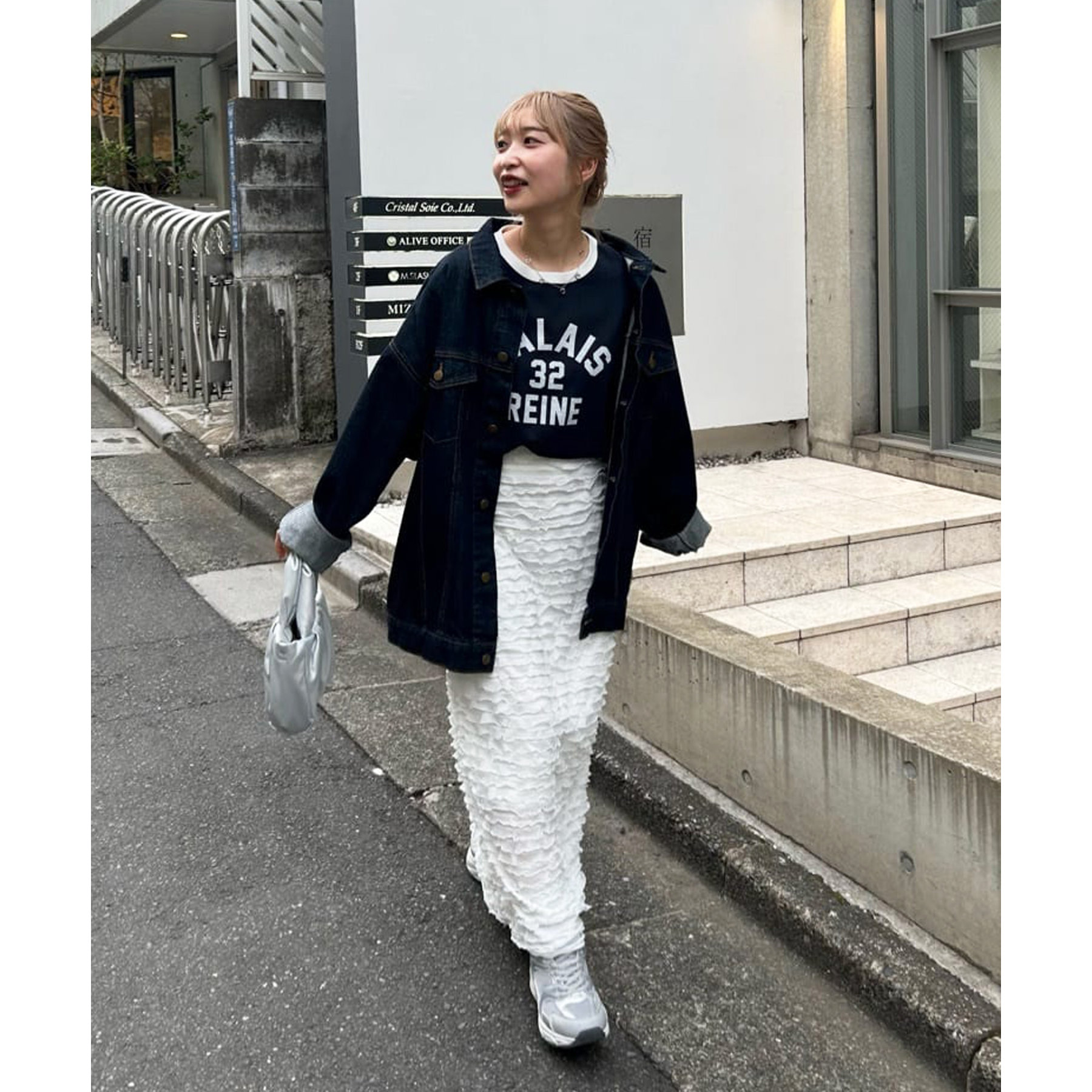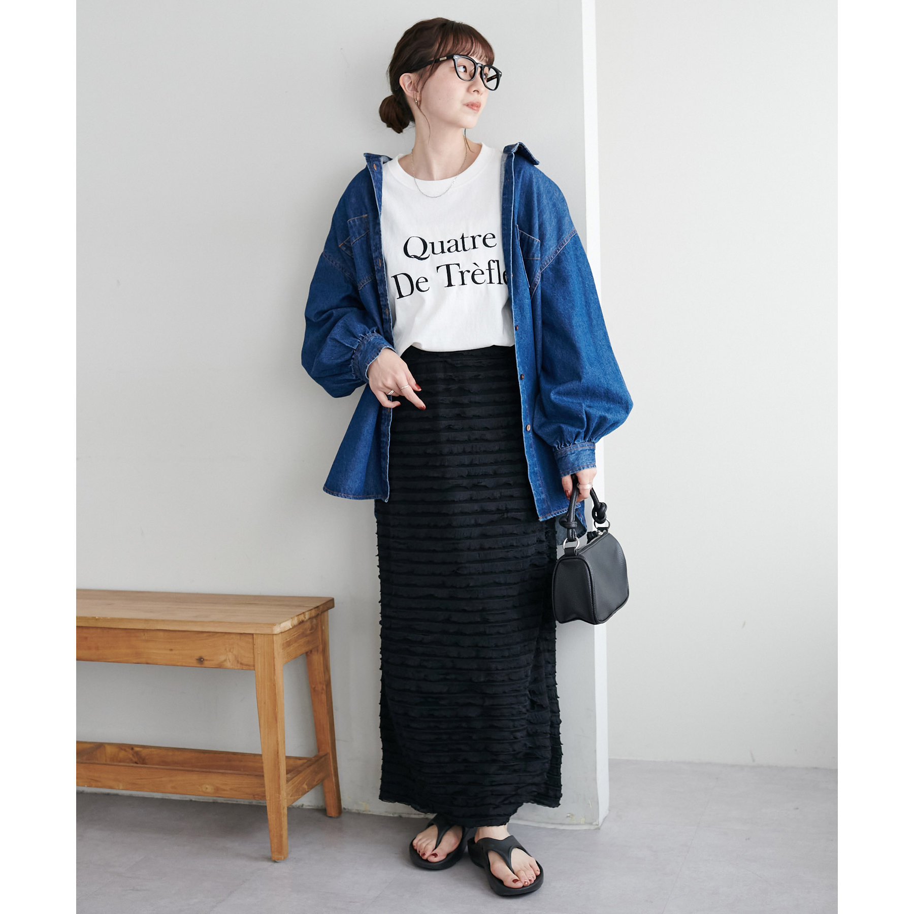 表面変化のあるフリルティアードがアクセントになり、シンプルコーデでも映えるスカート。