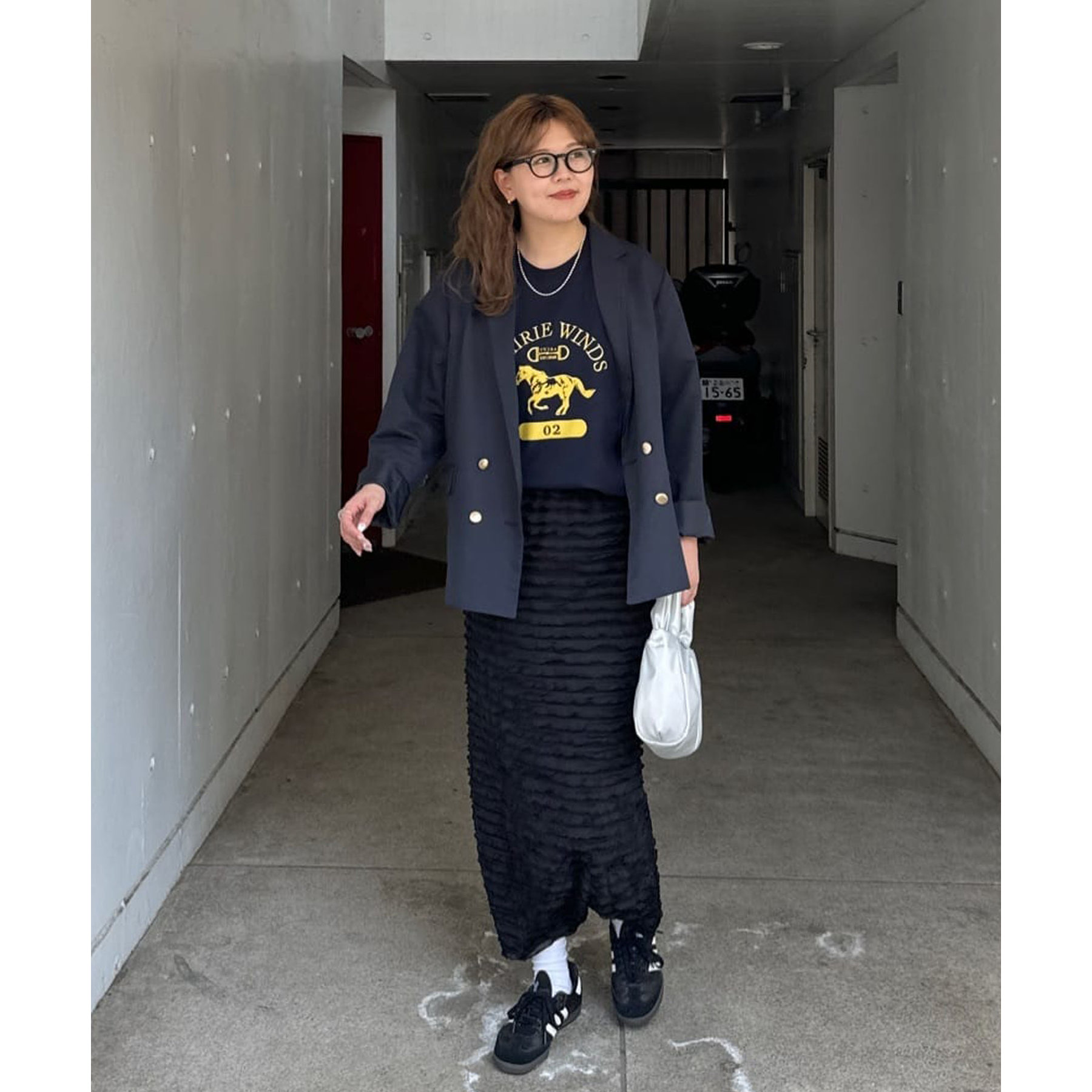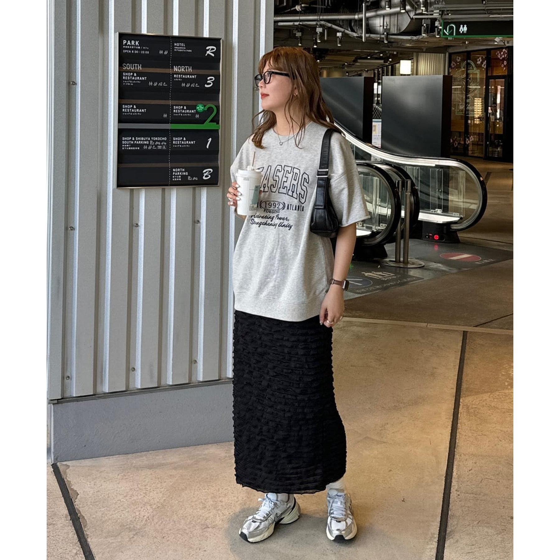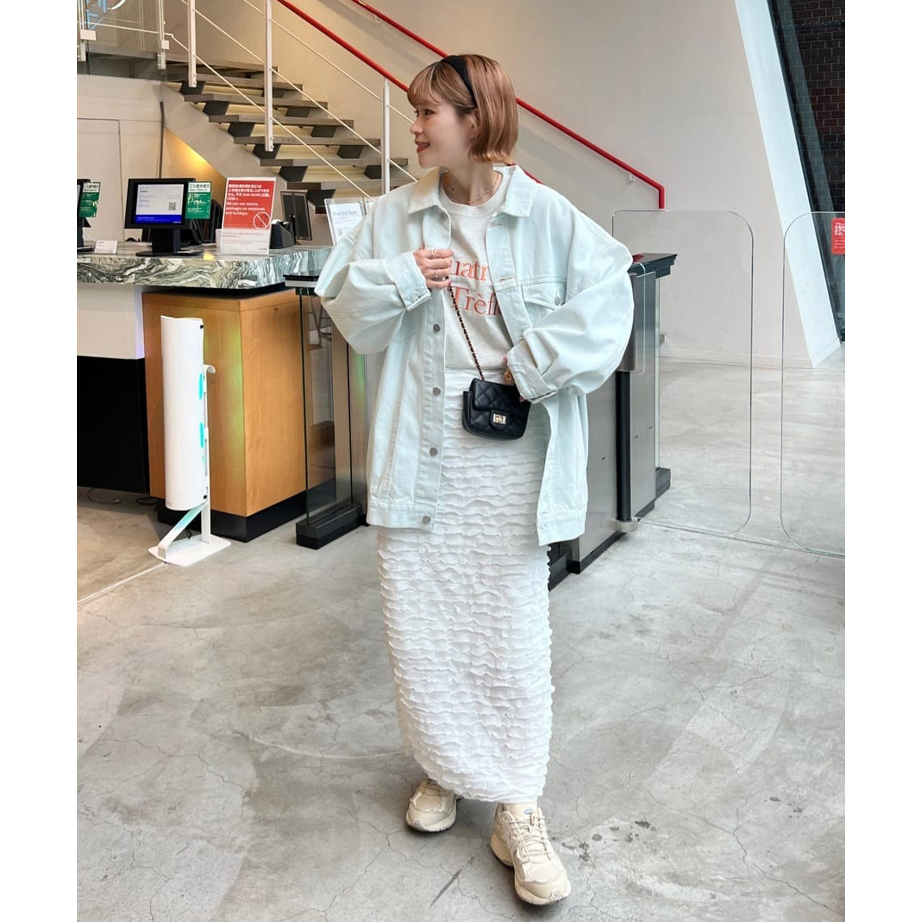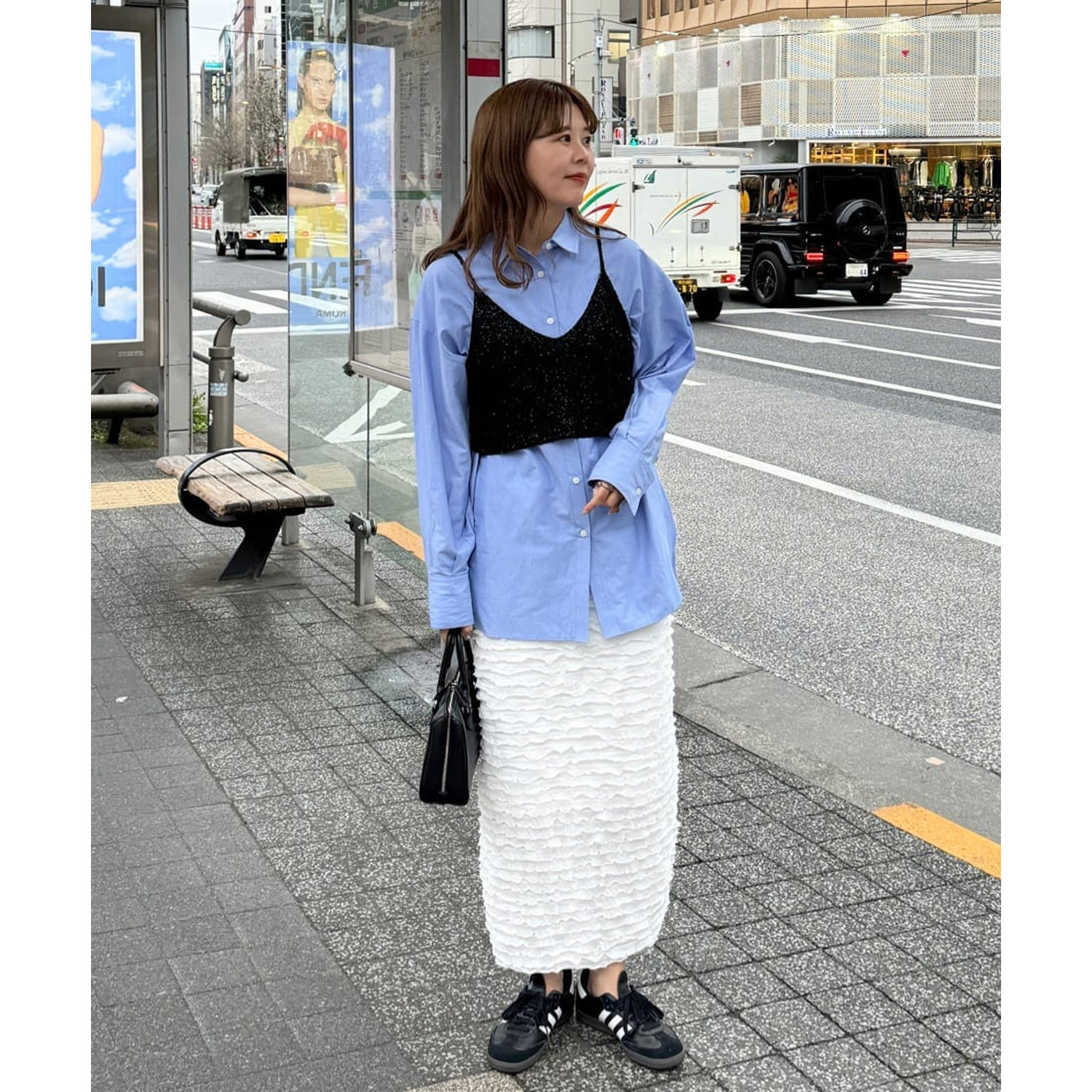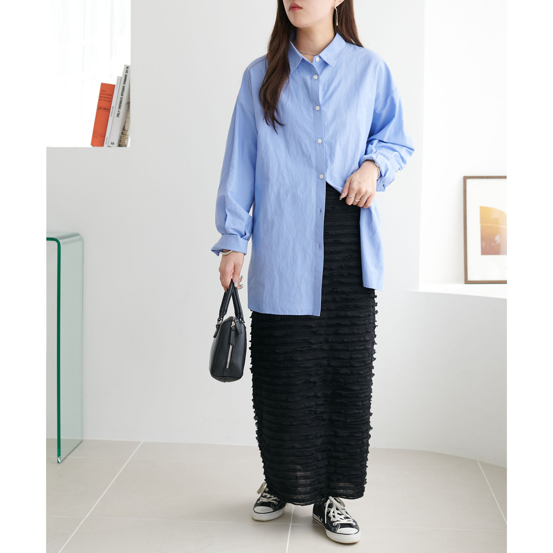 表面変化のあるフリルティアードがアクセントになり、シンプルコーデでも映えるスカート。