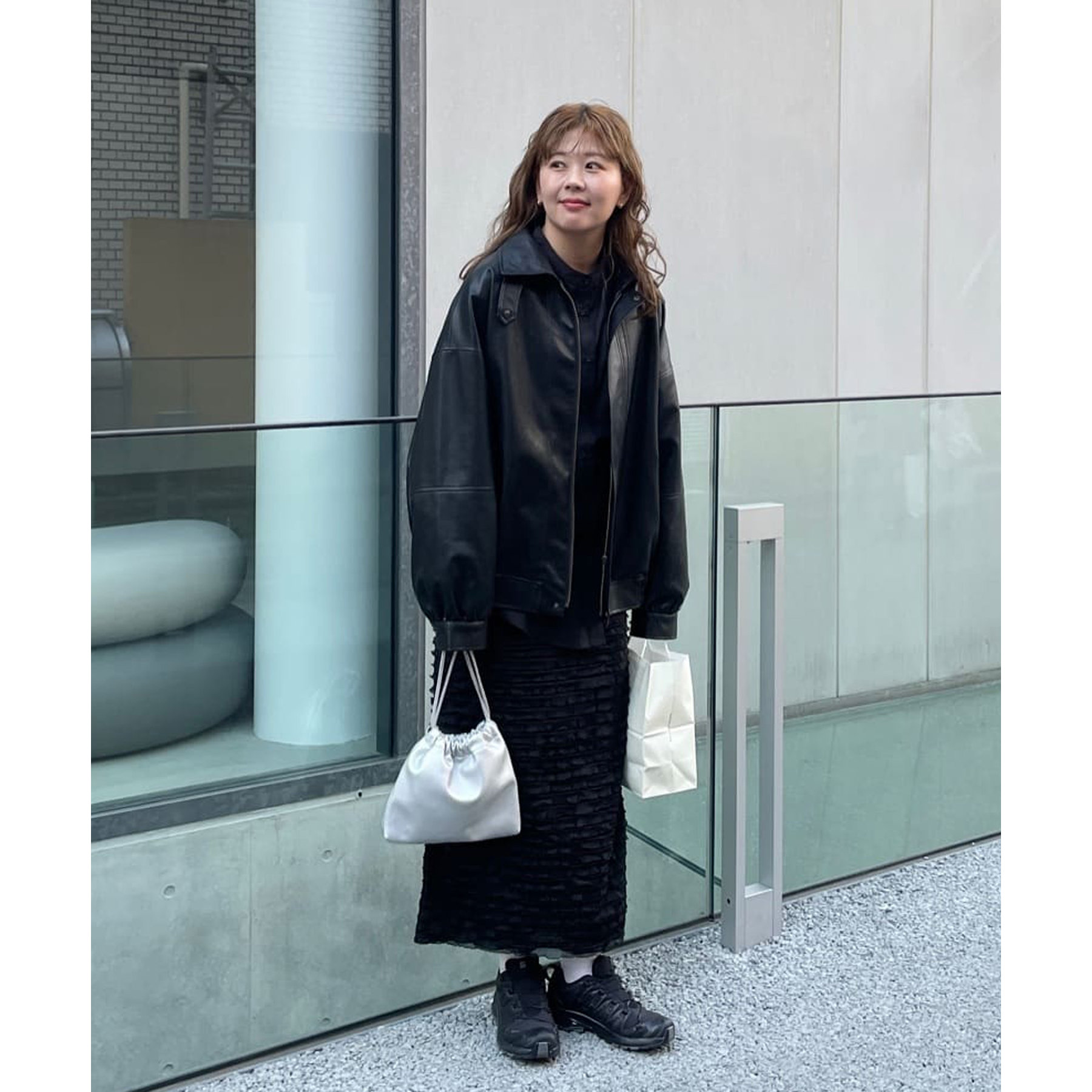 シンプルなトップスを合わせるだけでコーディネートが完成します。インして着こなすと、ウエストの位置が強調されて脚長効果もアップ。すっきり見えするIラインシルエットなのでオーバーサイズのトップスと合わせるとバランスの良いコーデになりおすすめです☆