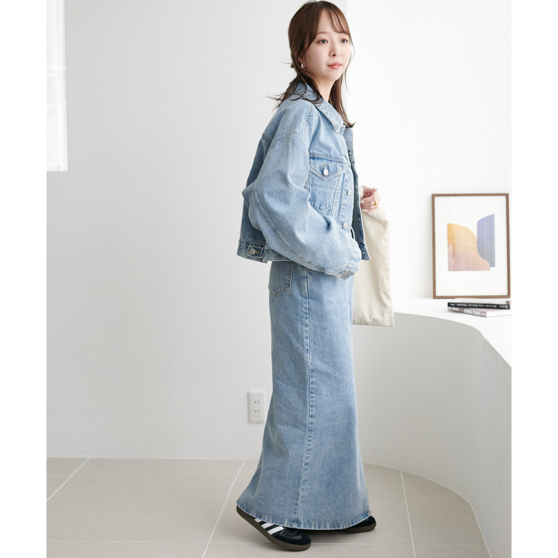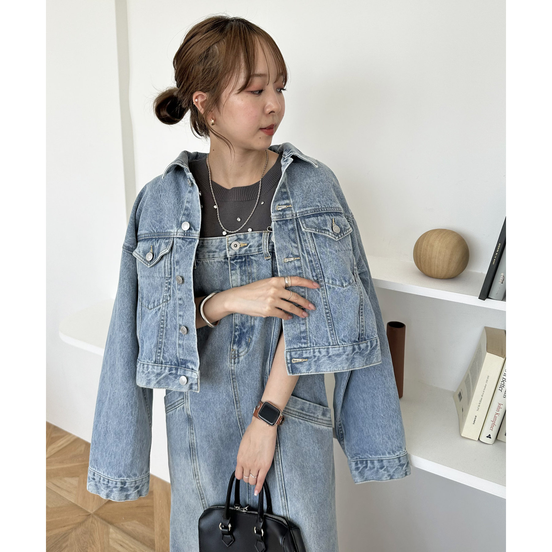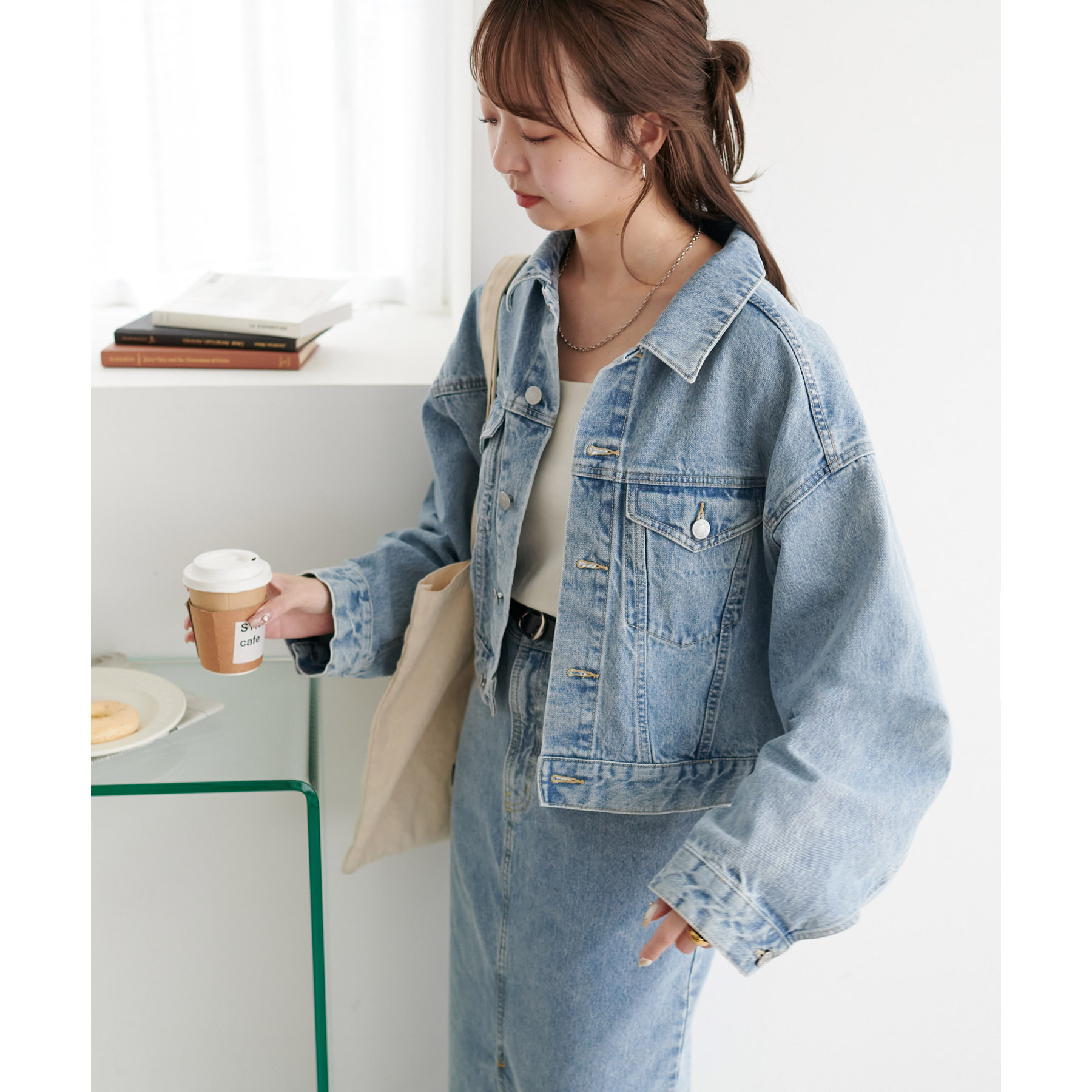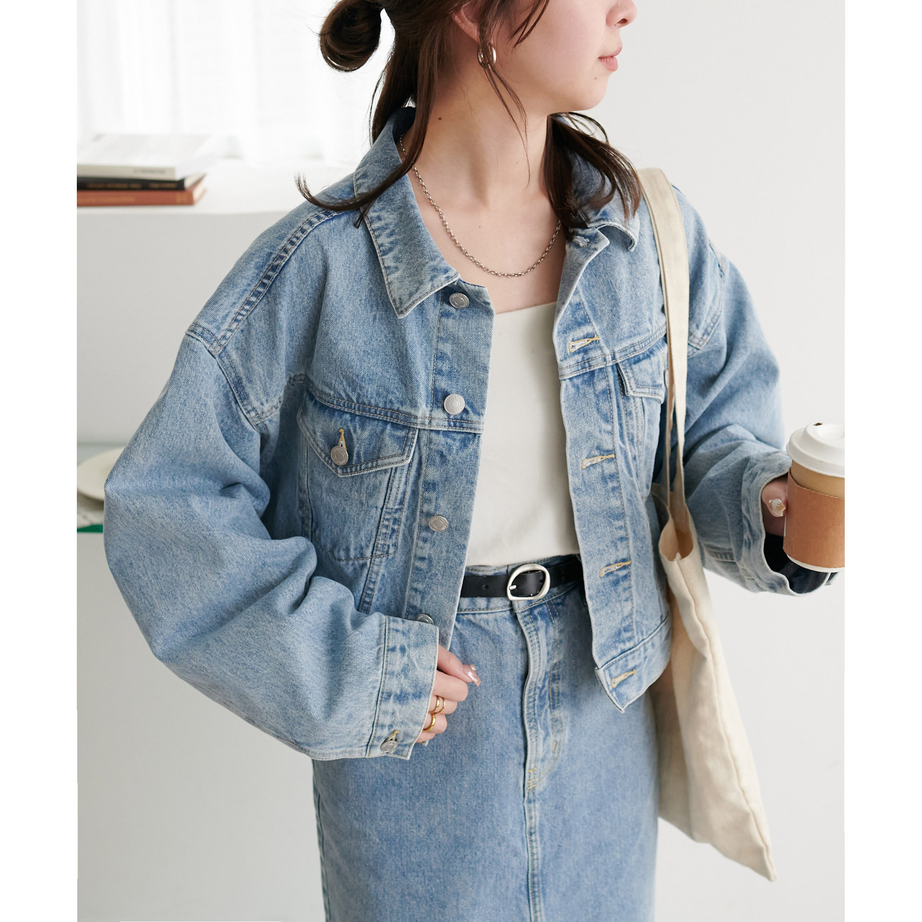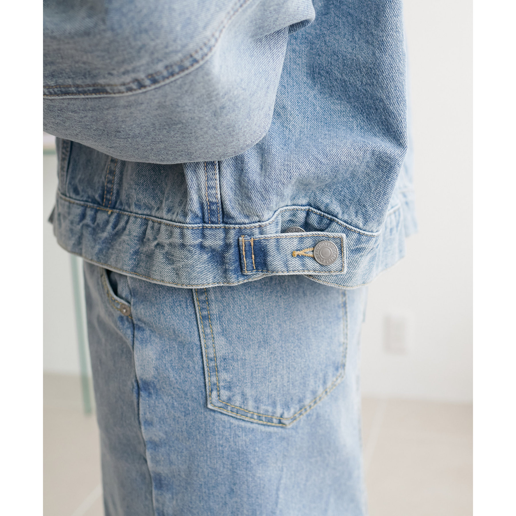 類似品番のデニムパンツやデニムスカートと合わせていただくとセットアップとしても楽しんでいただけます。