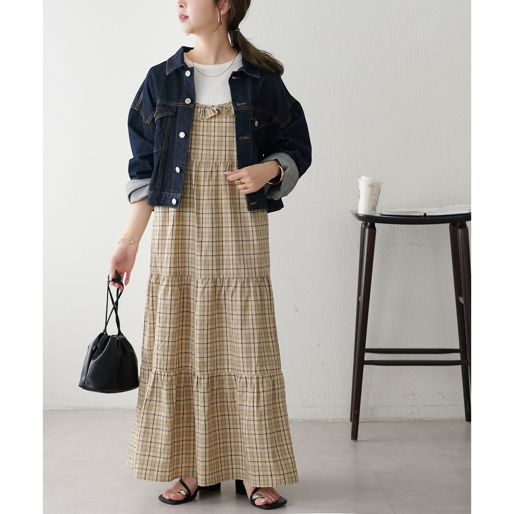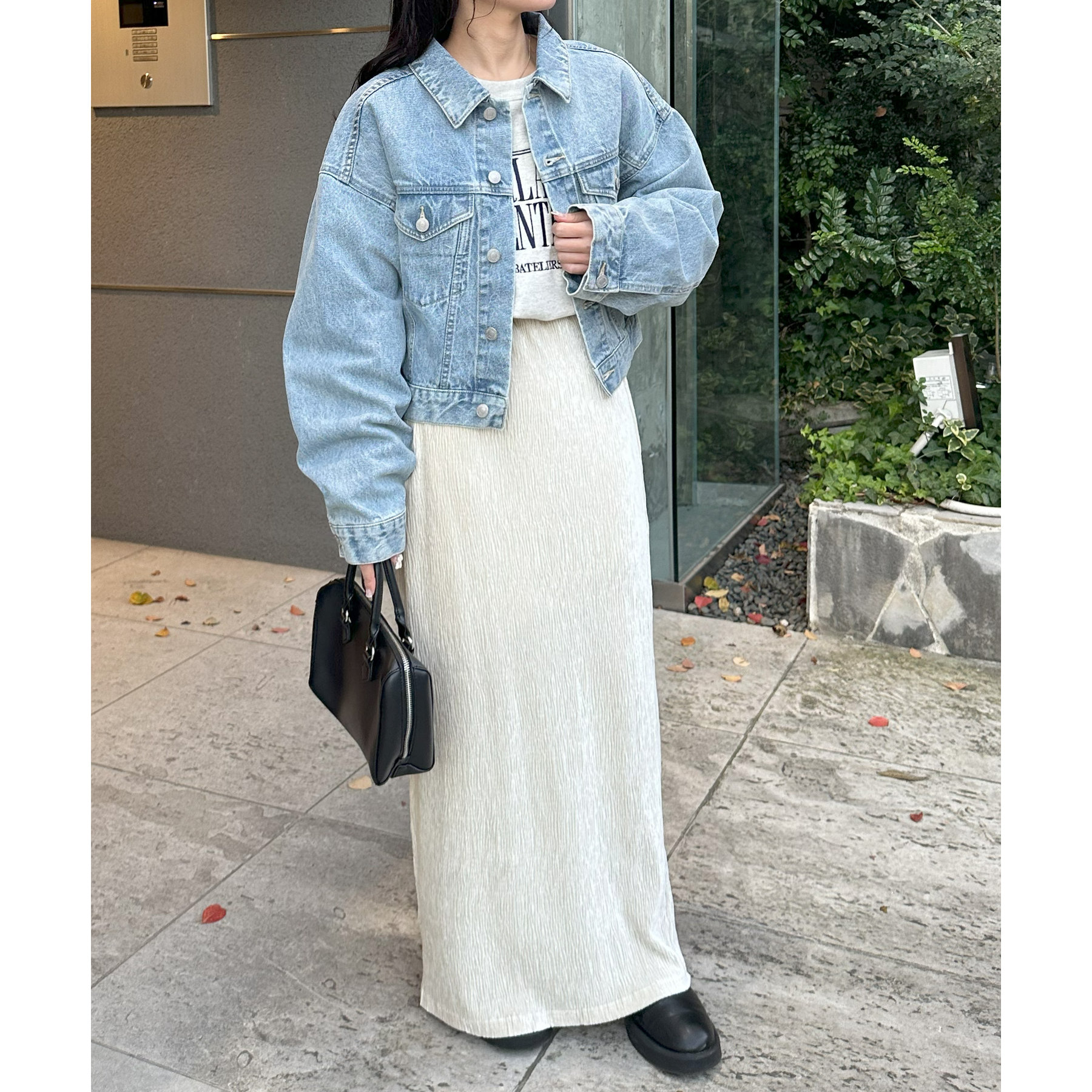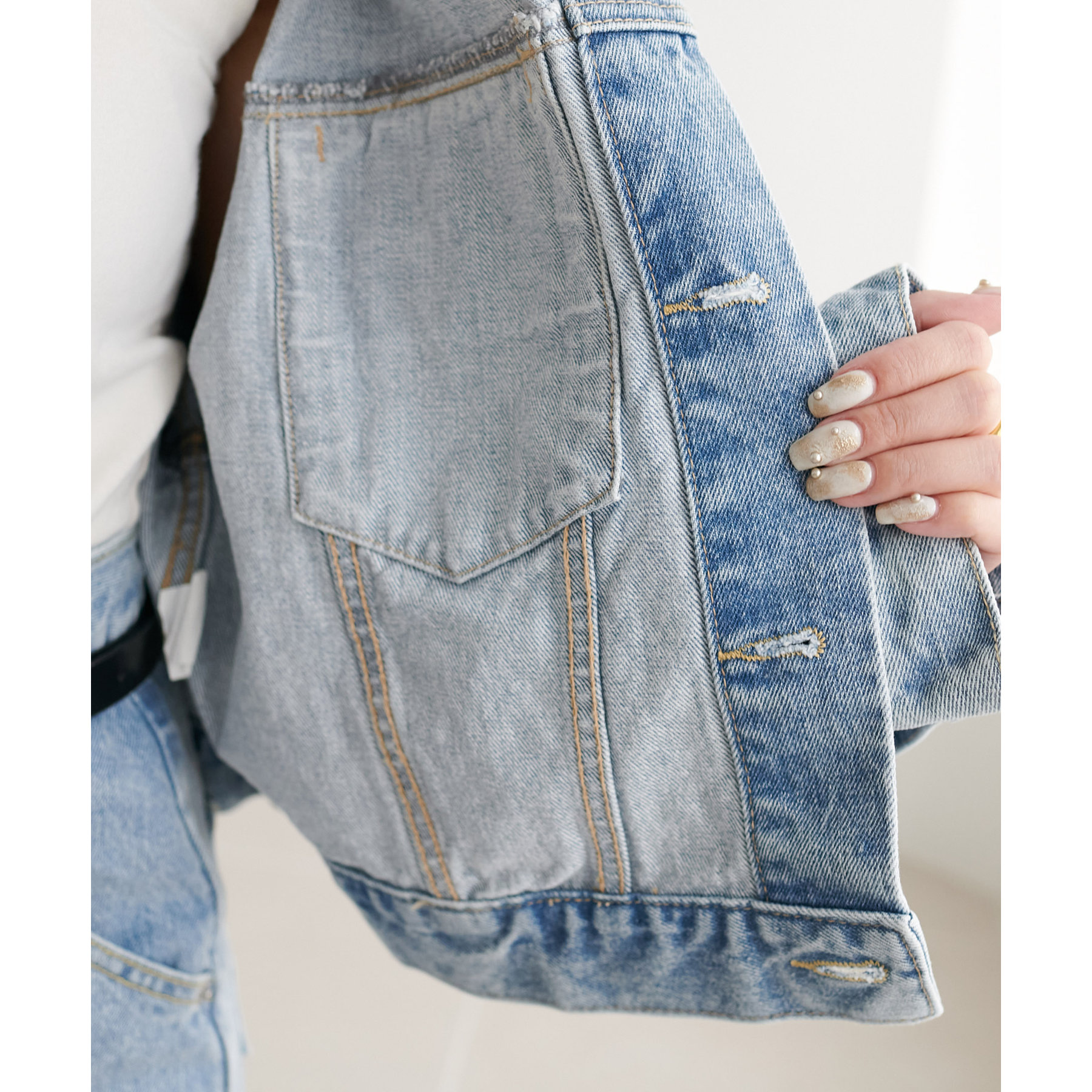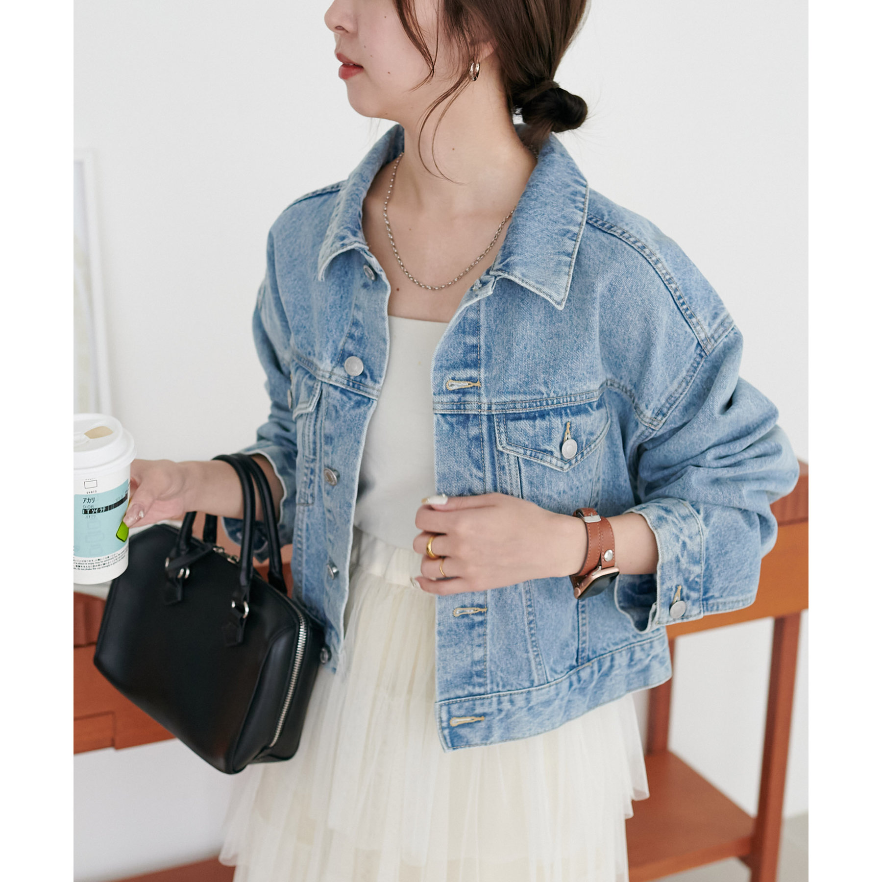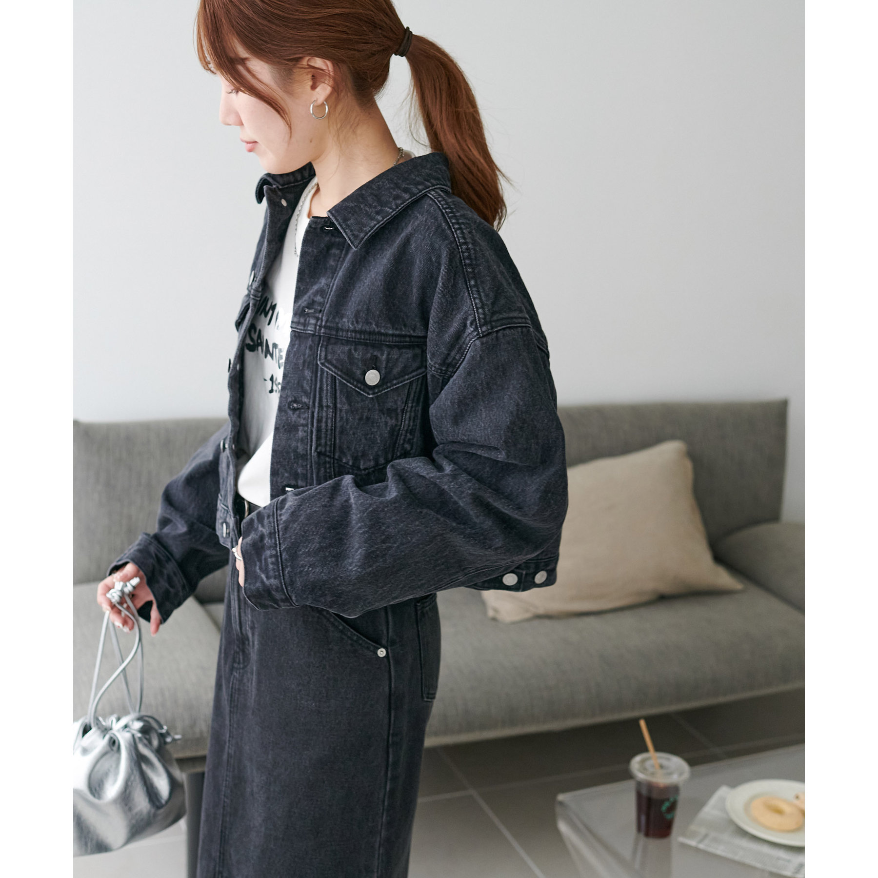 類似品番のデニムパンツやデニムスカートと合わせていただくとセットアップとしても楽しんでいただけます。
