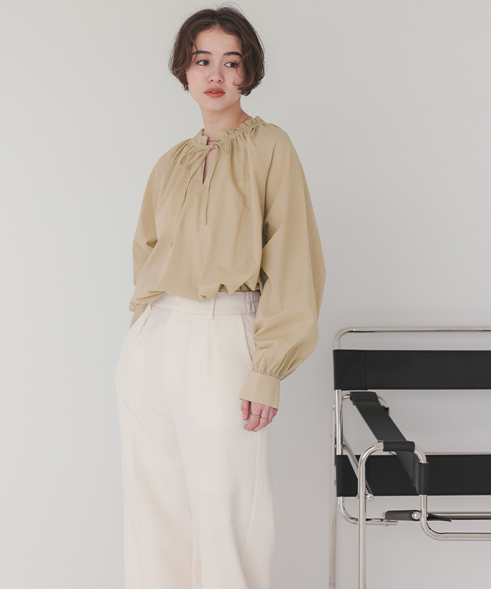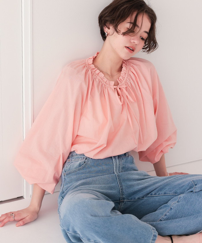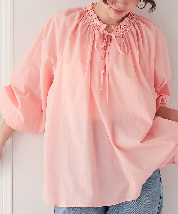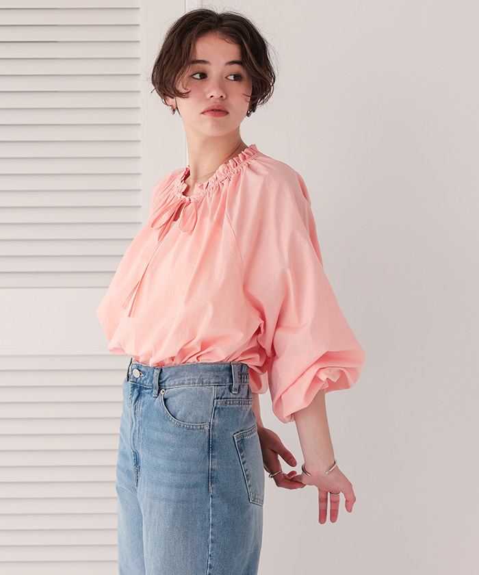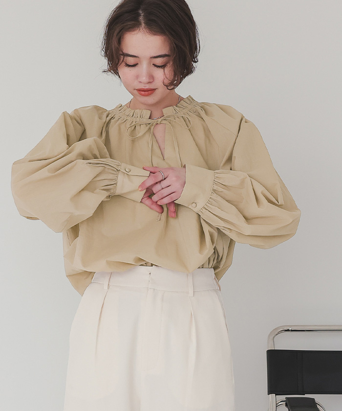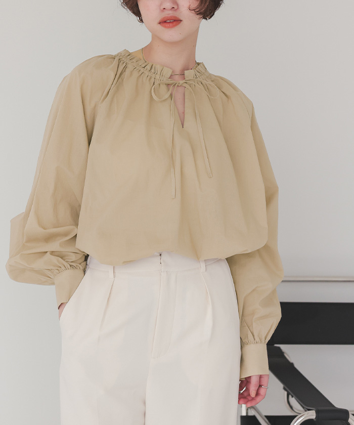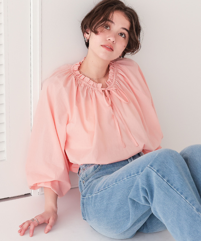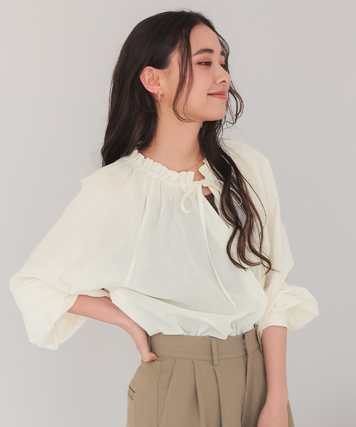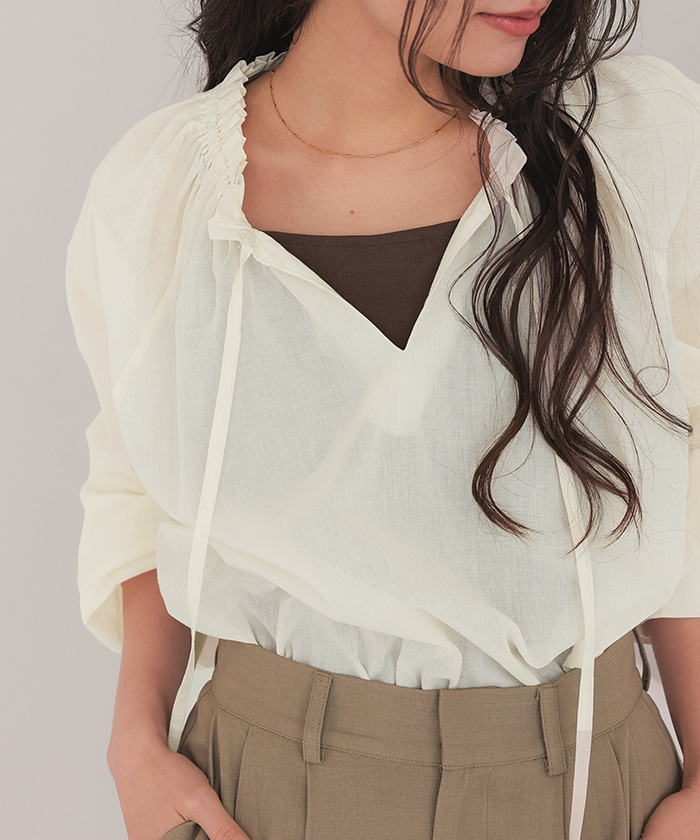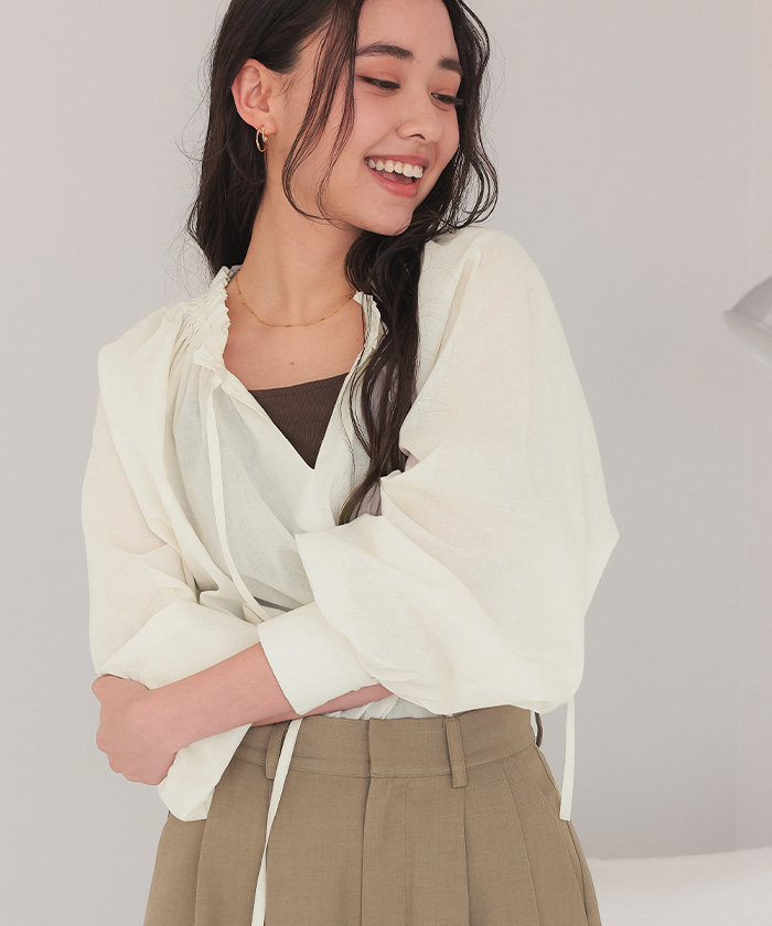 リボン付きAラインギャザーブラウス