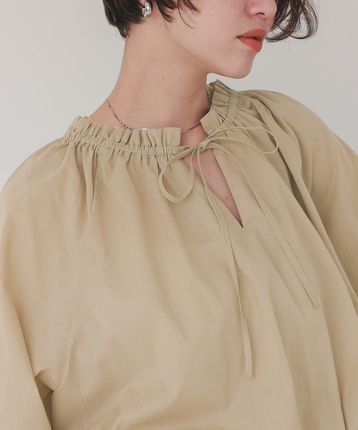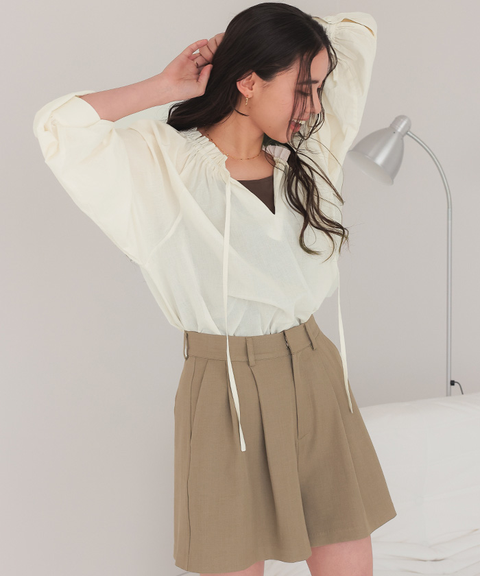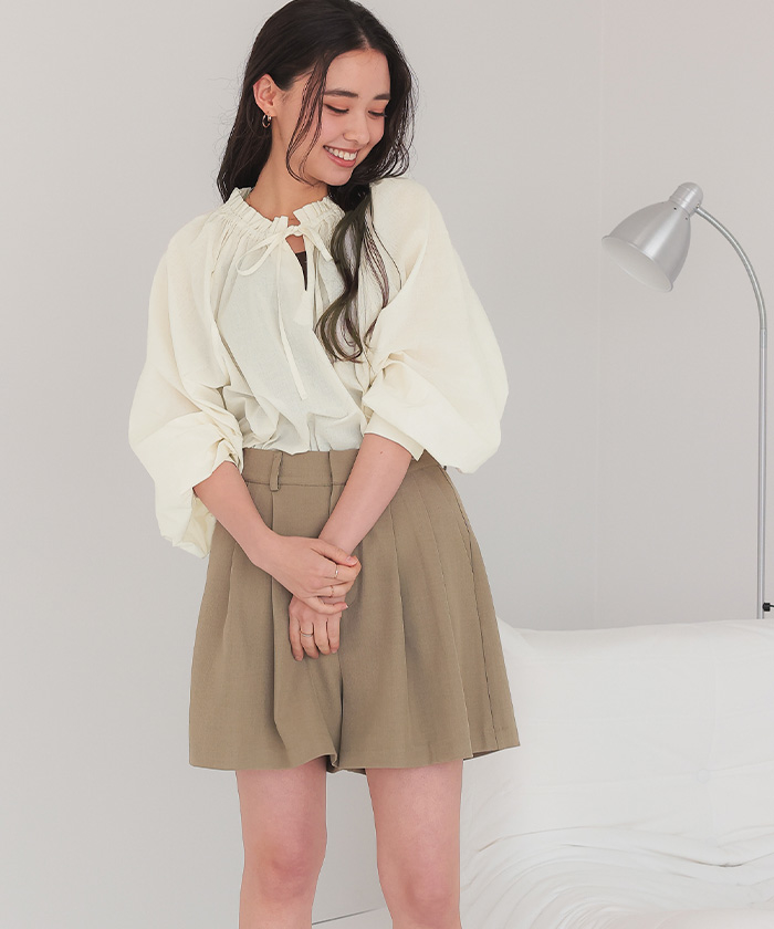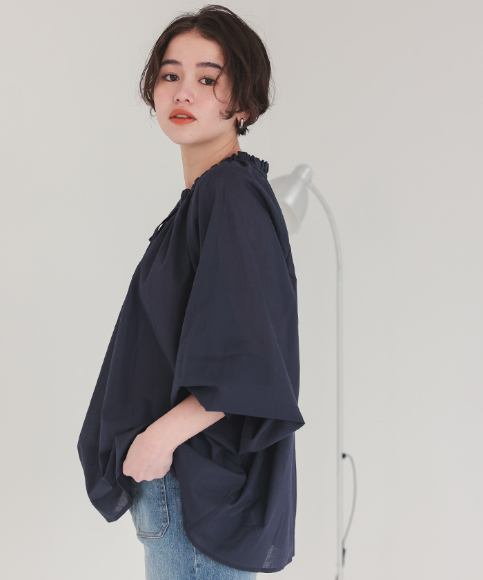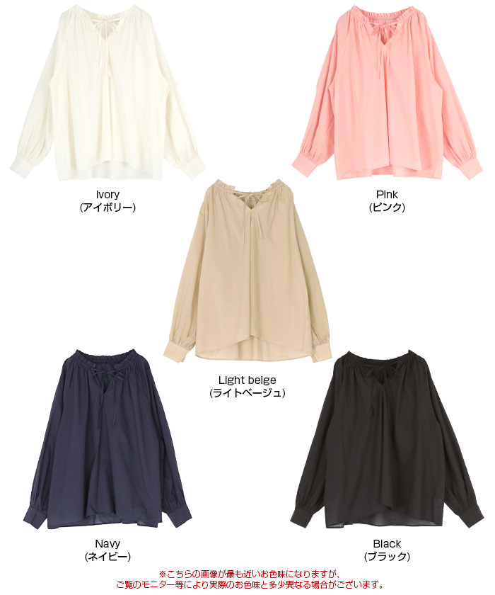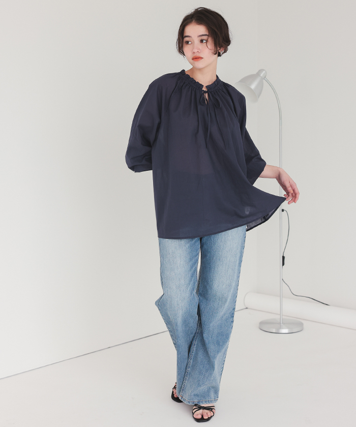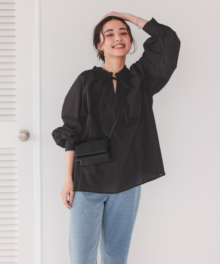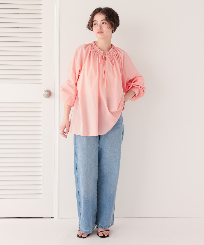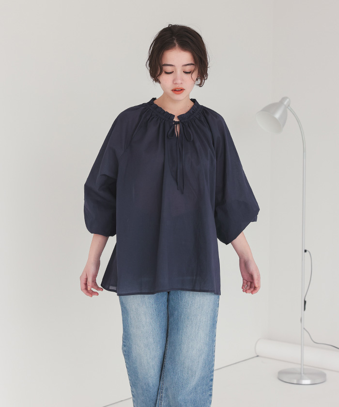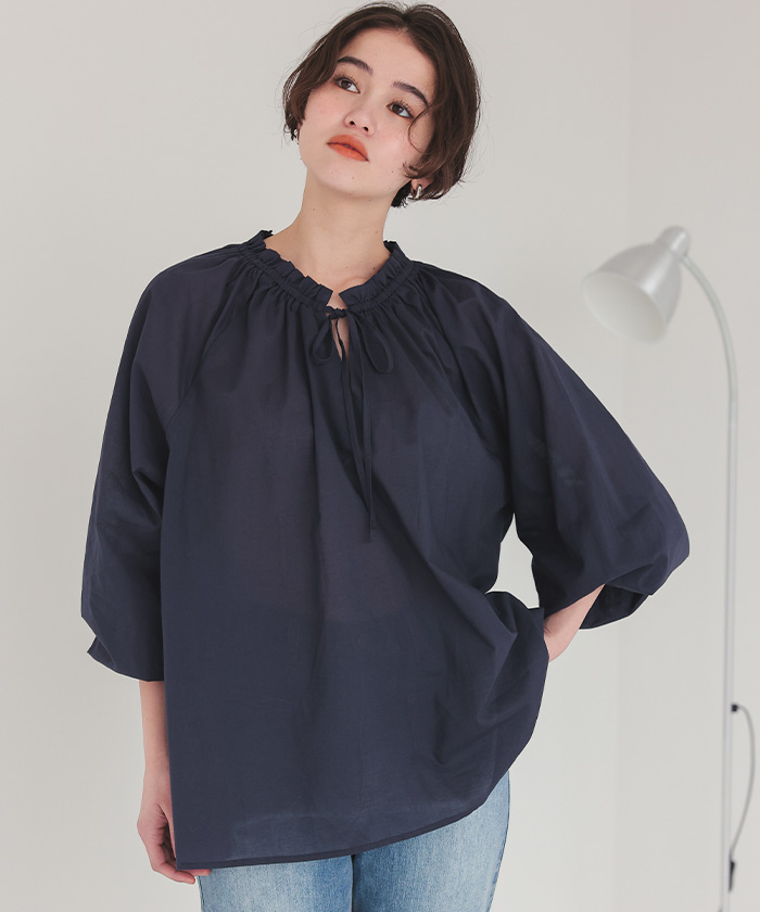リボン付きAラインギャザーブラウス