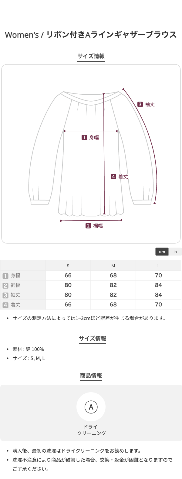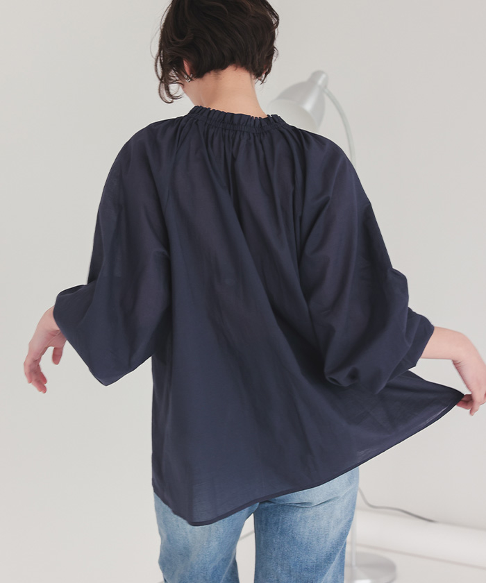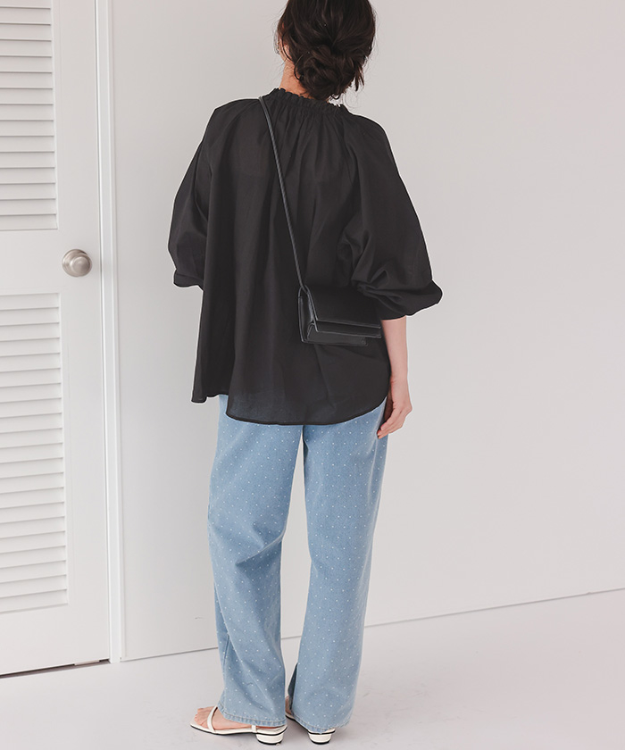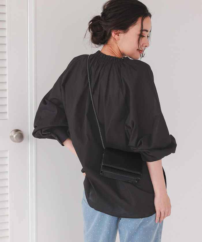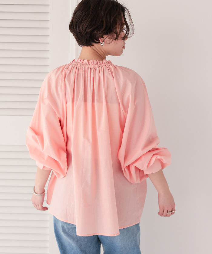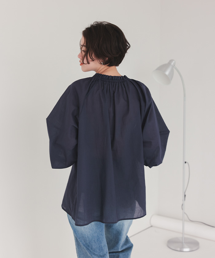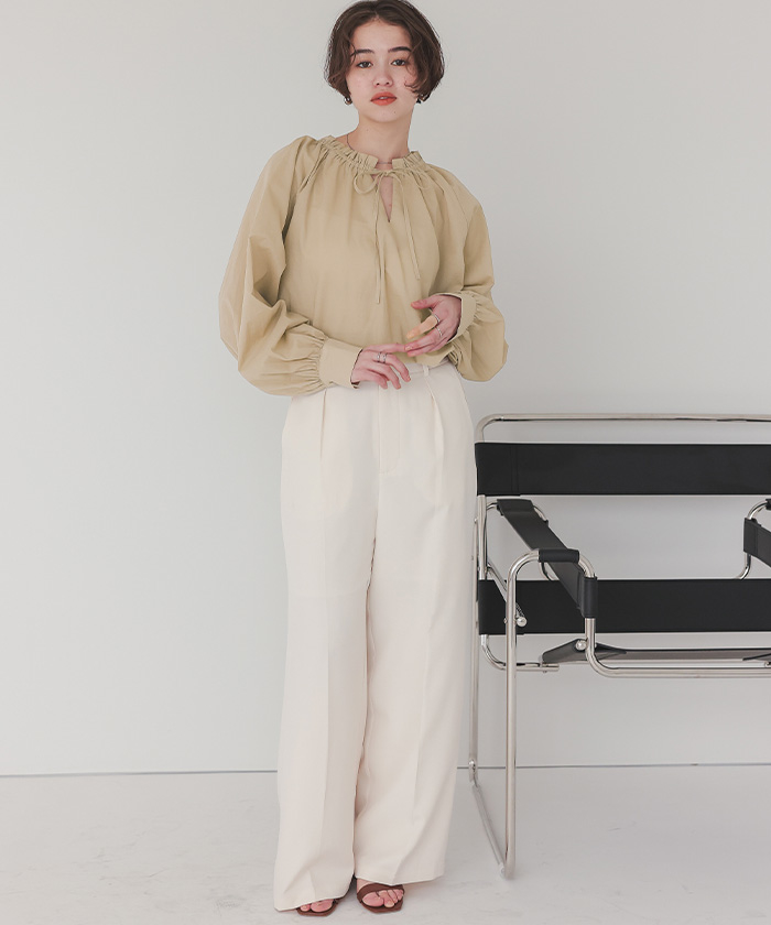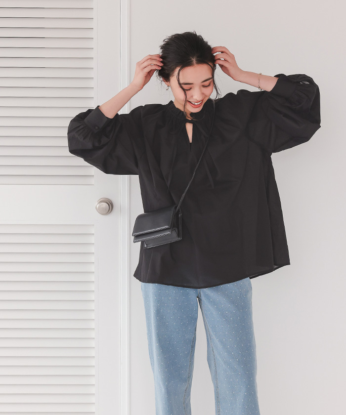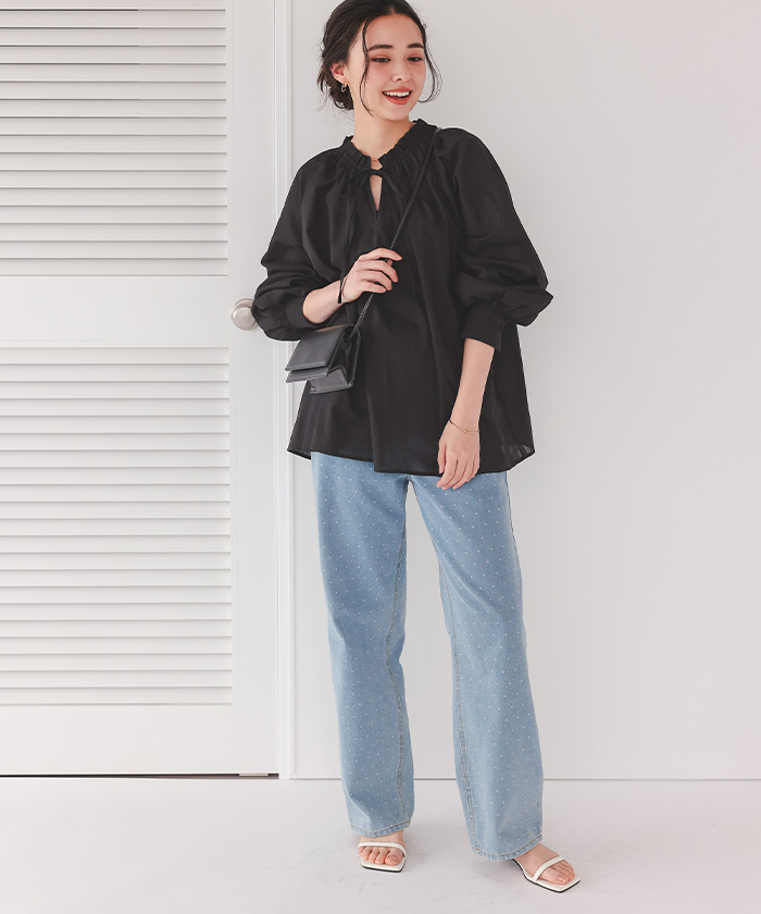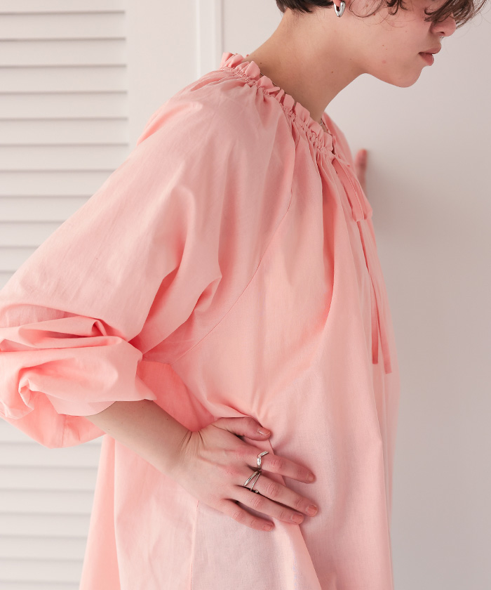 リボン付きAラインギャザーブラウス