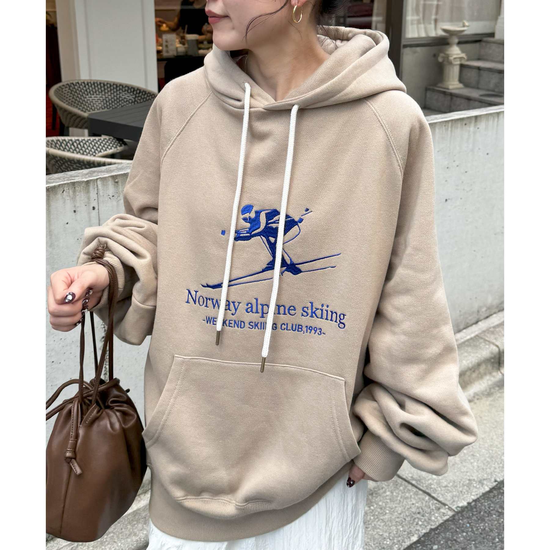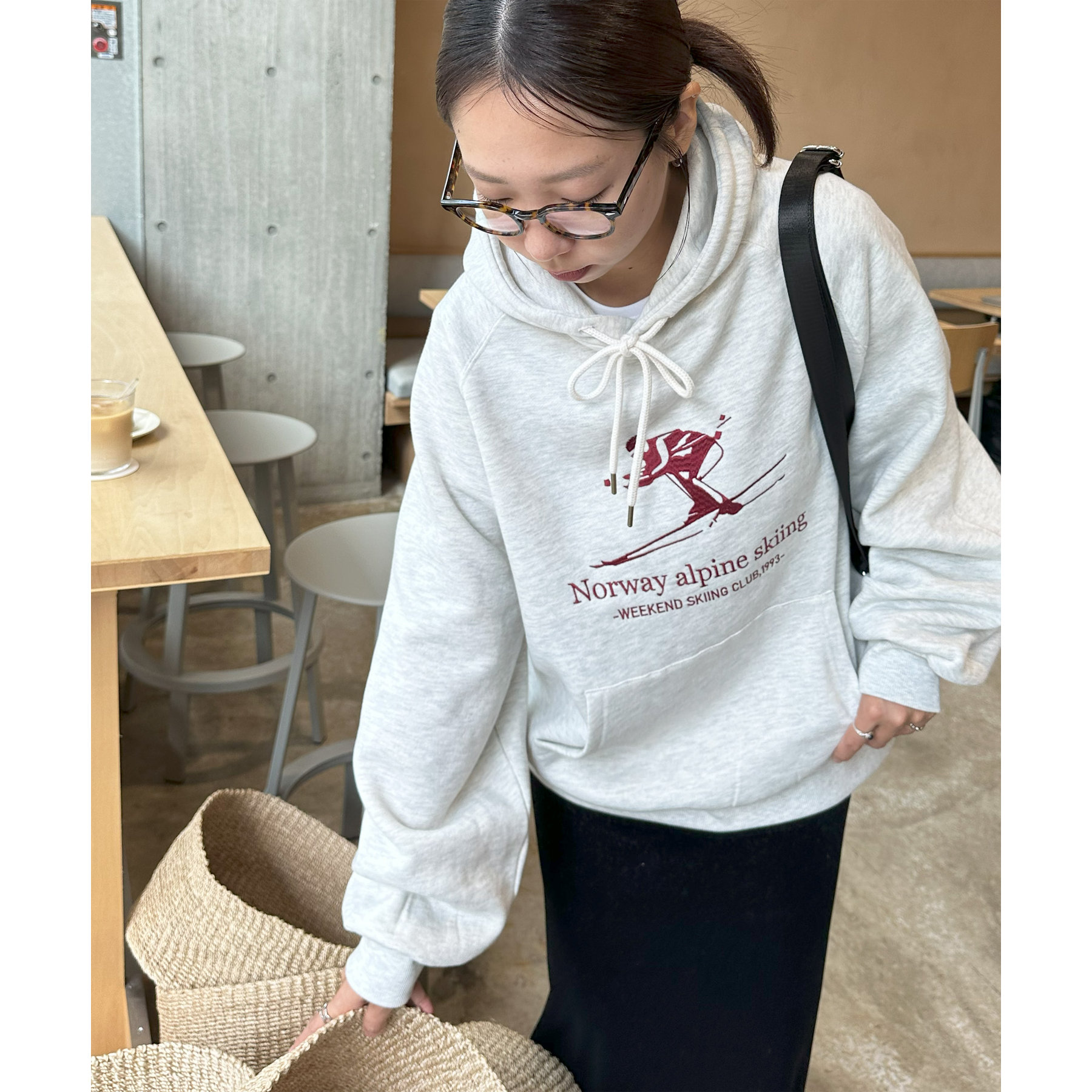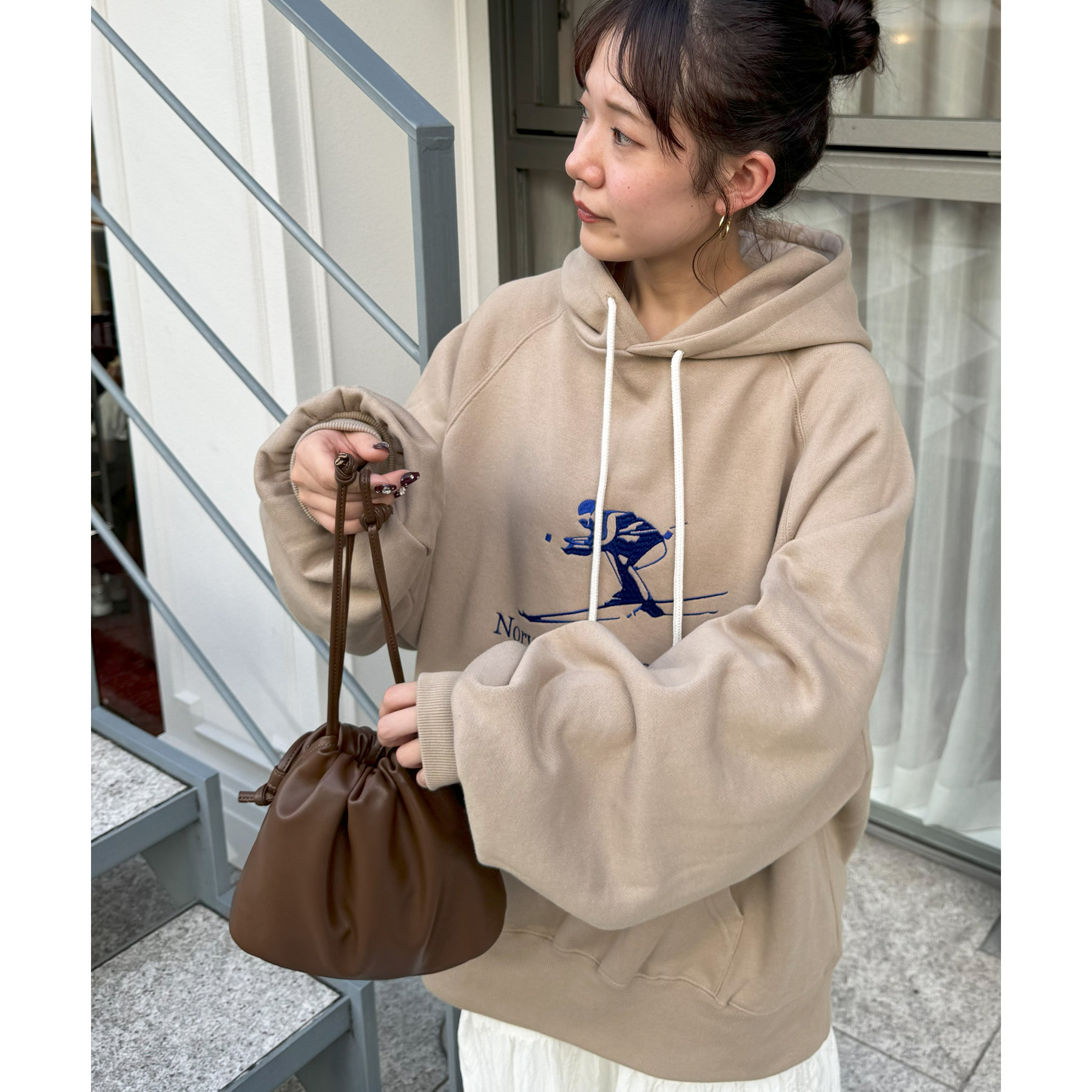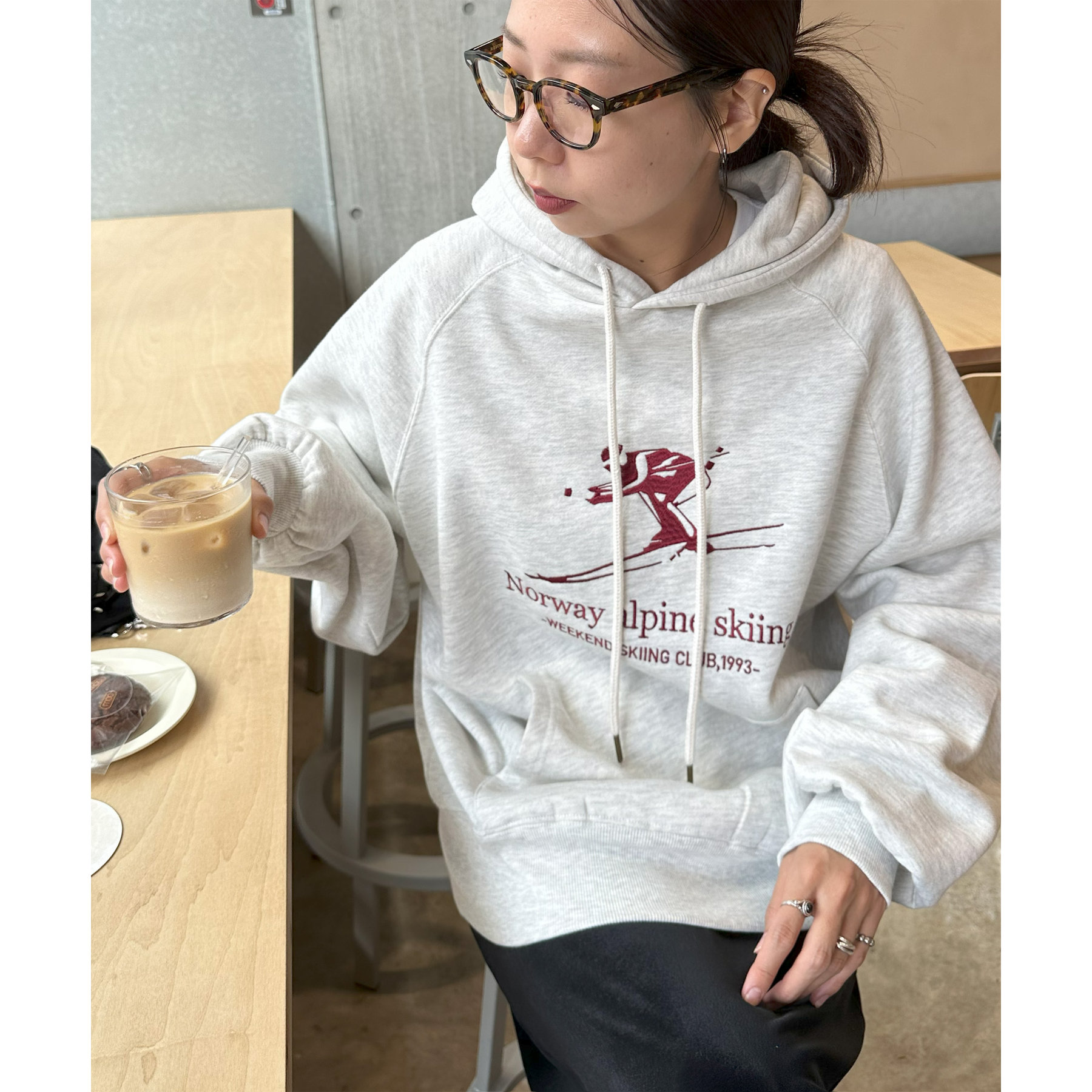 袖のボリューム感や刺繍ロゴのデザイン、太めのフード紐などこだわりが詰まったアイテムです。