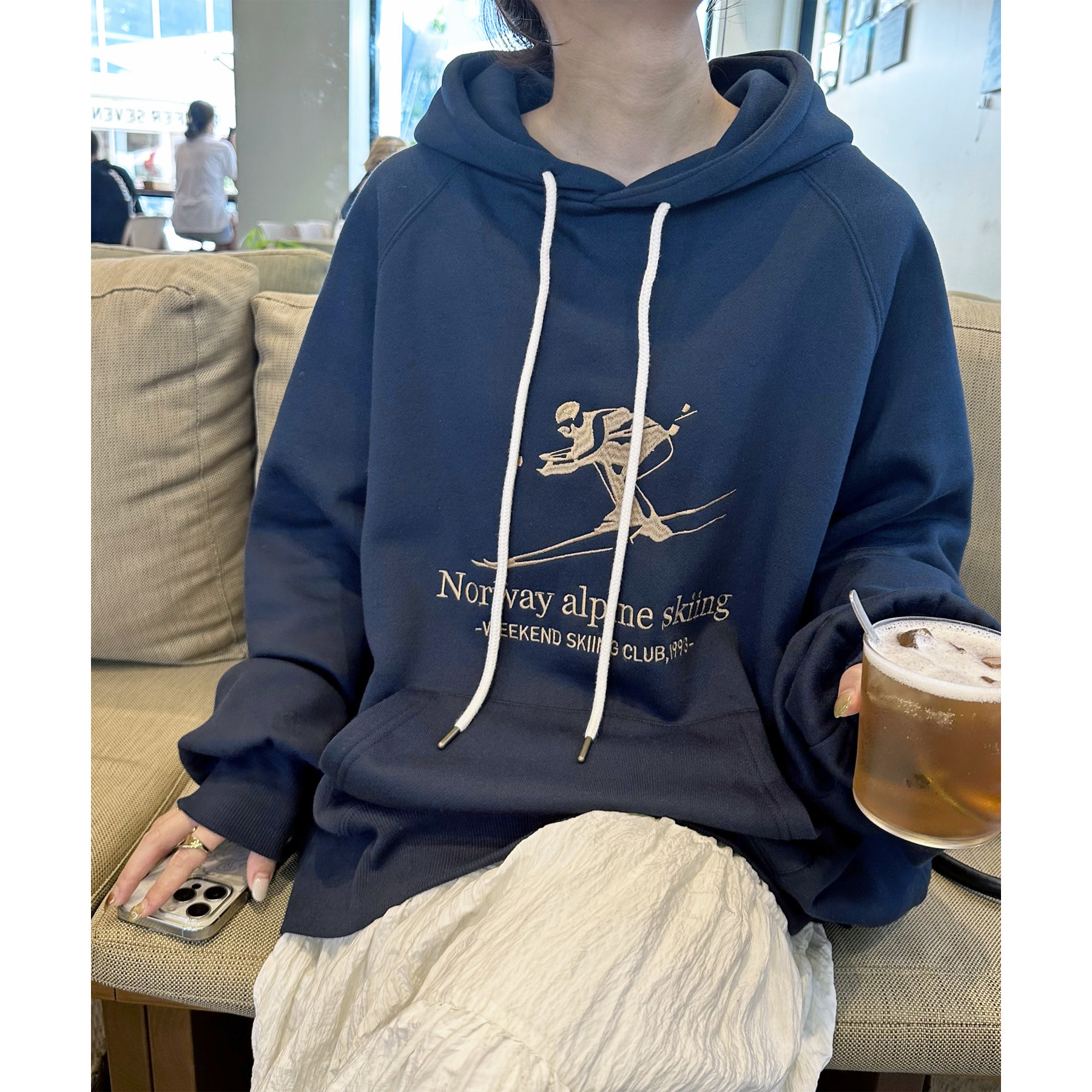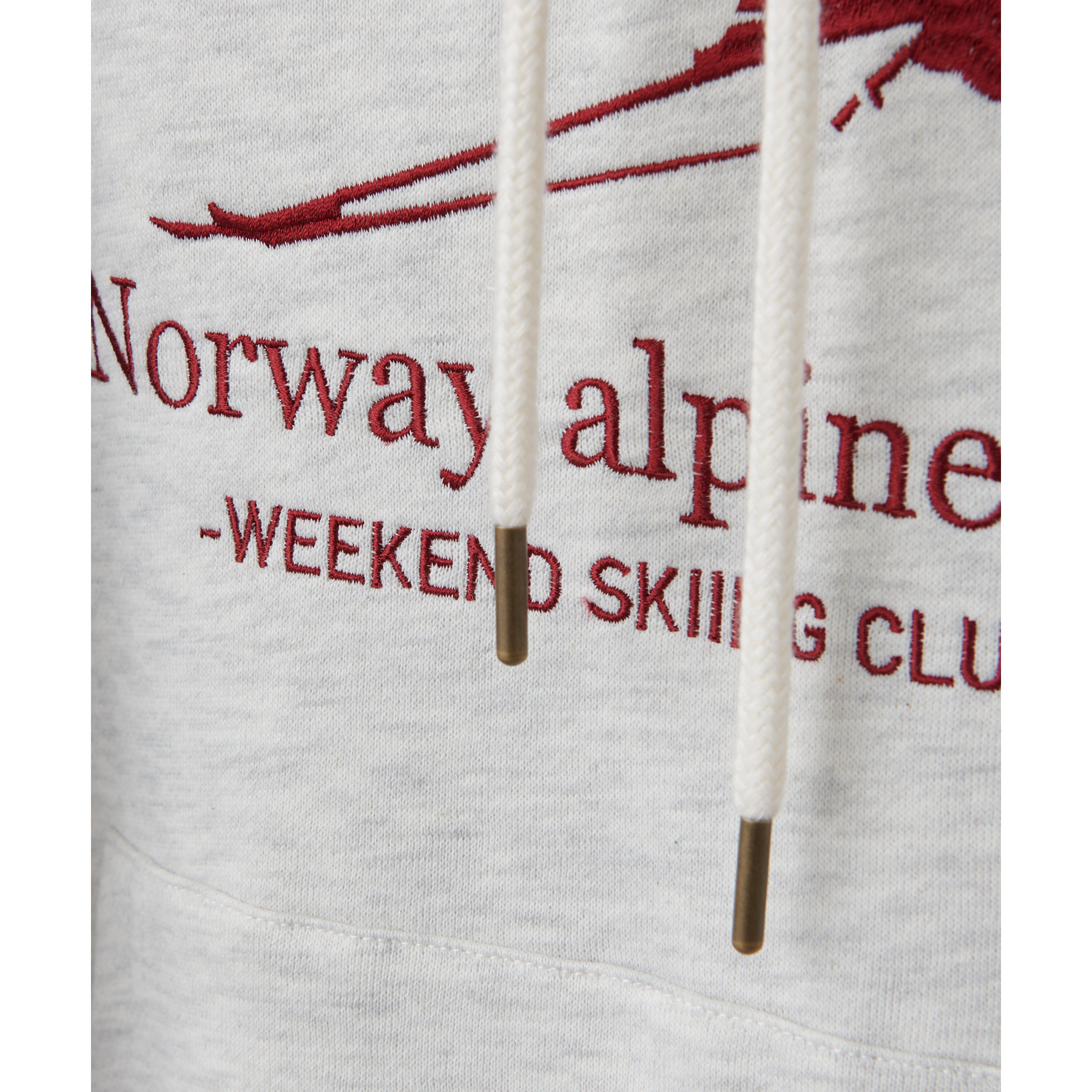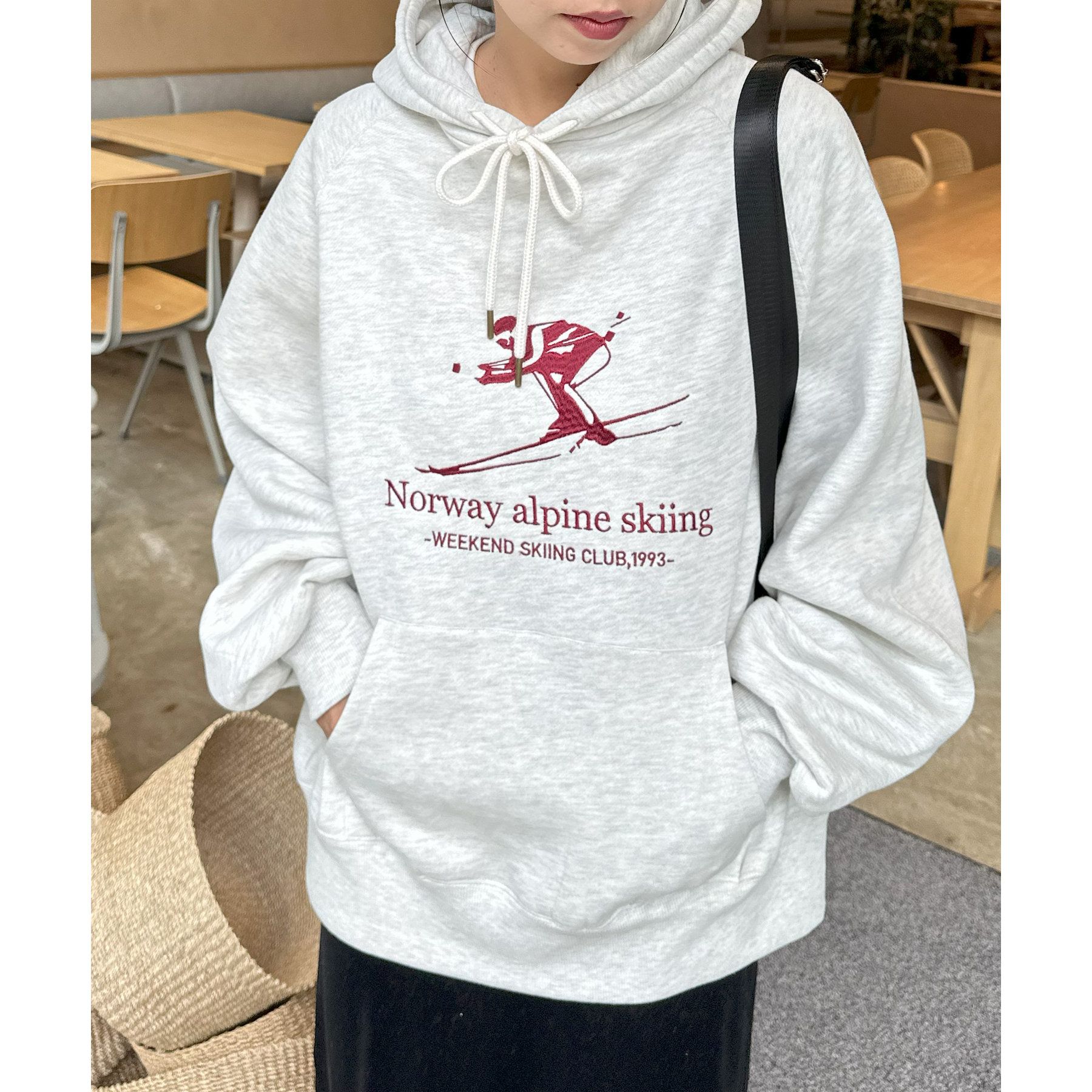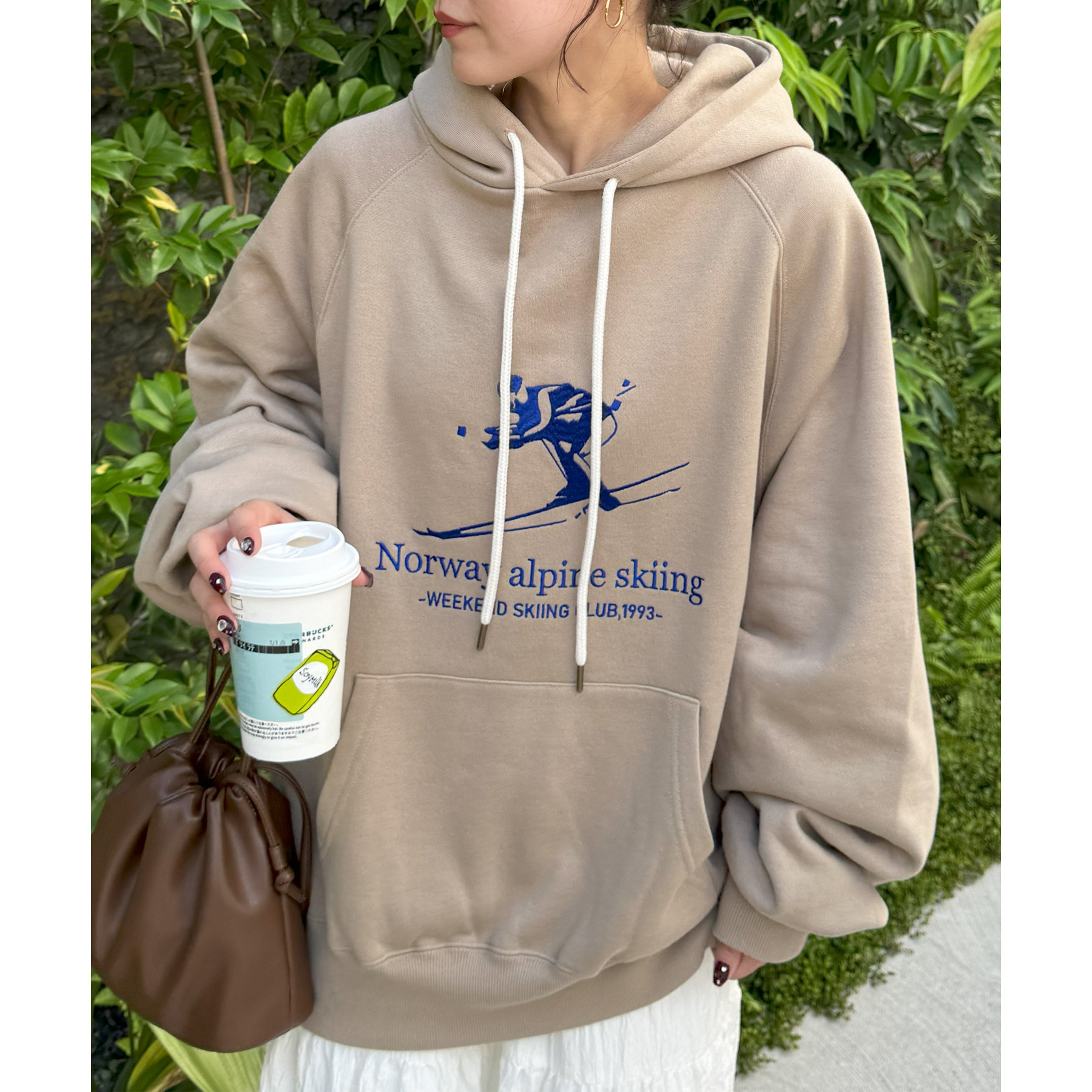 袖のボリューム感や刺繍ロゴのデザイン、太めのフード紐などこだわりが詰まったアイテムです。