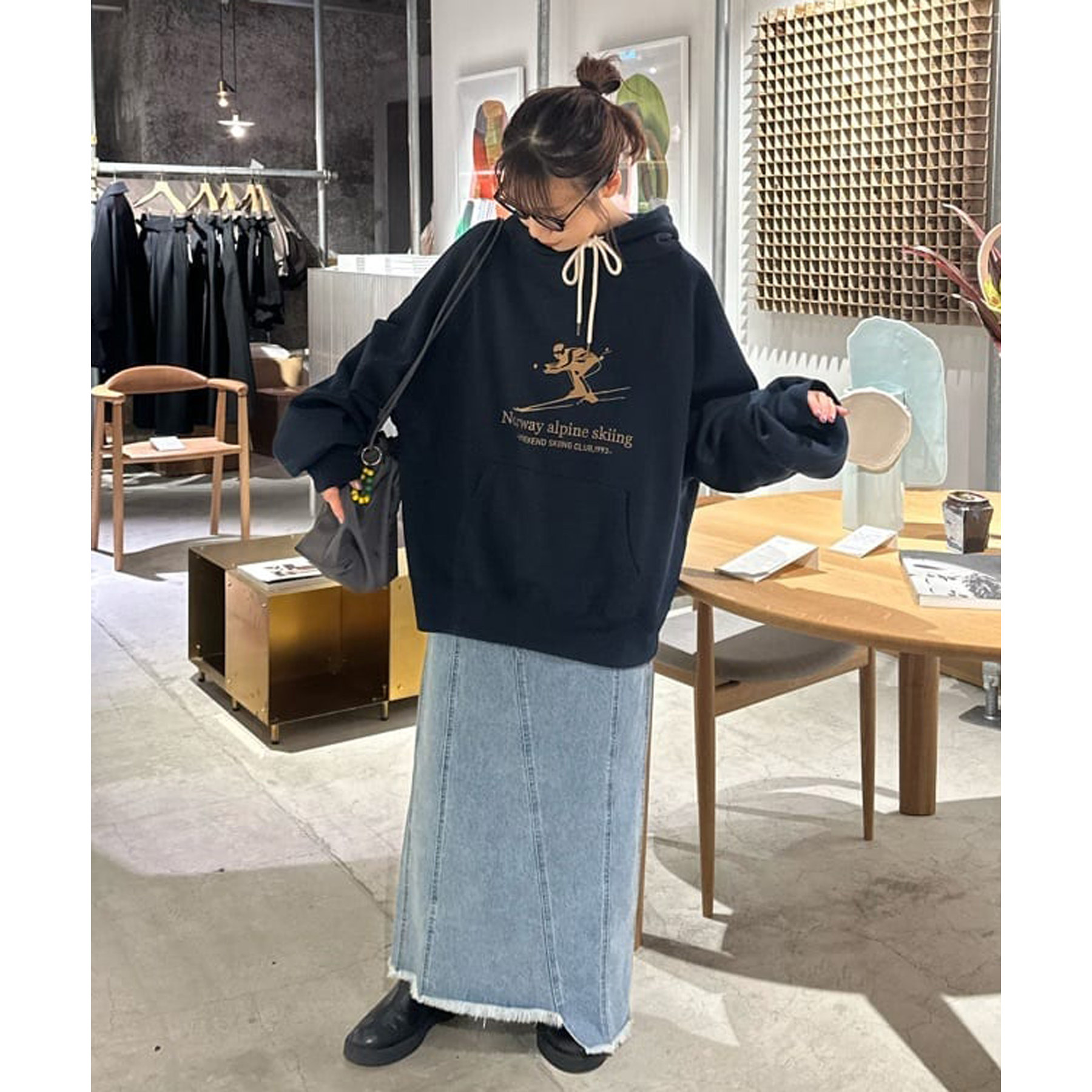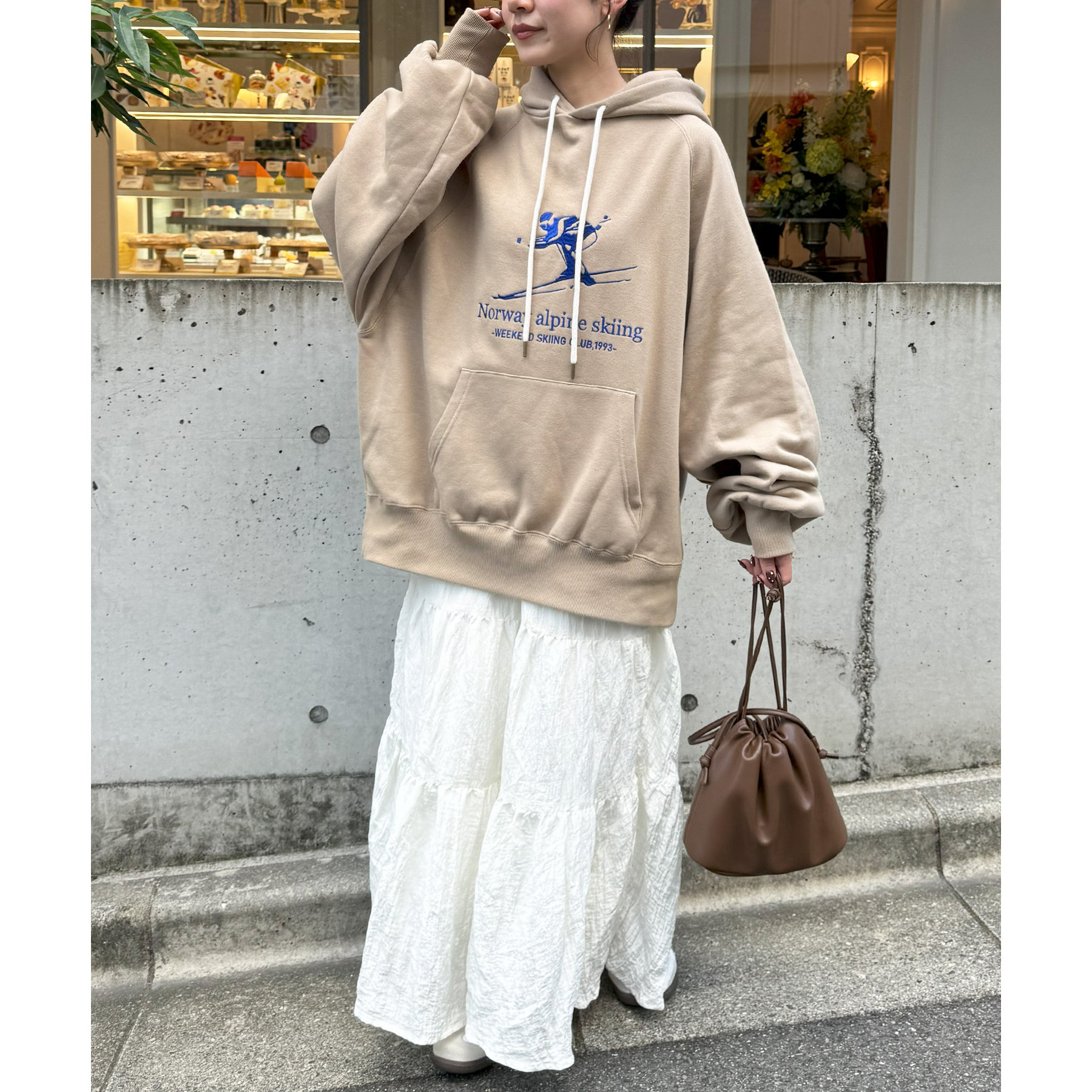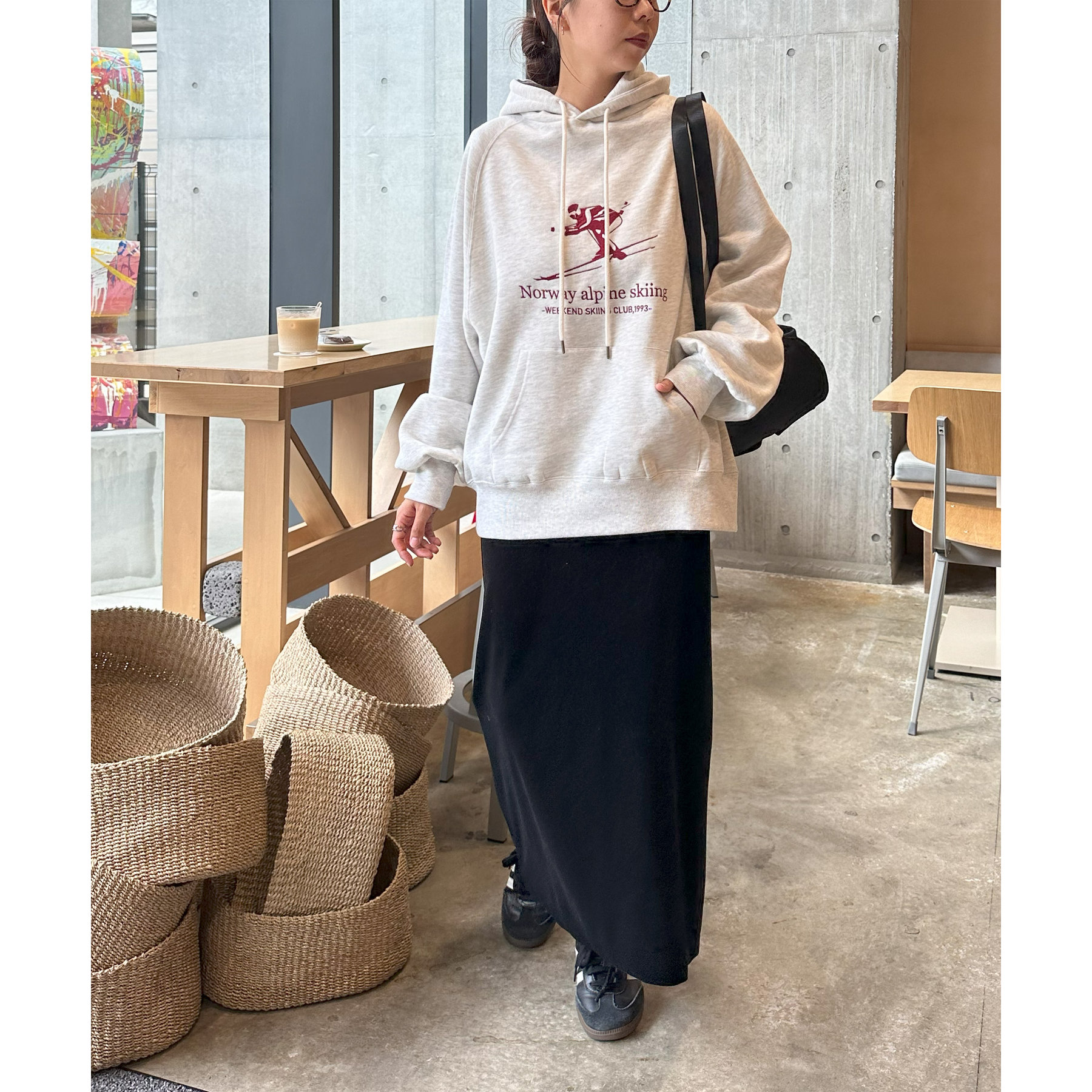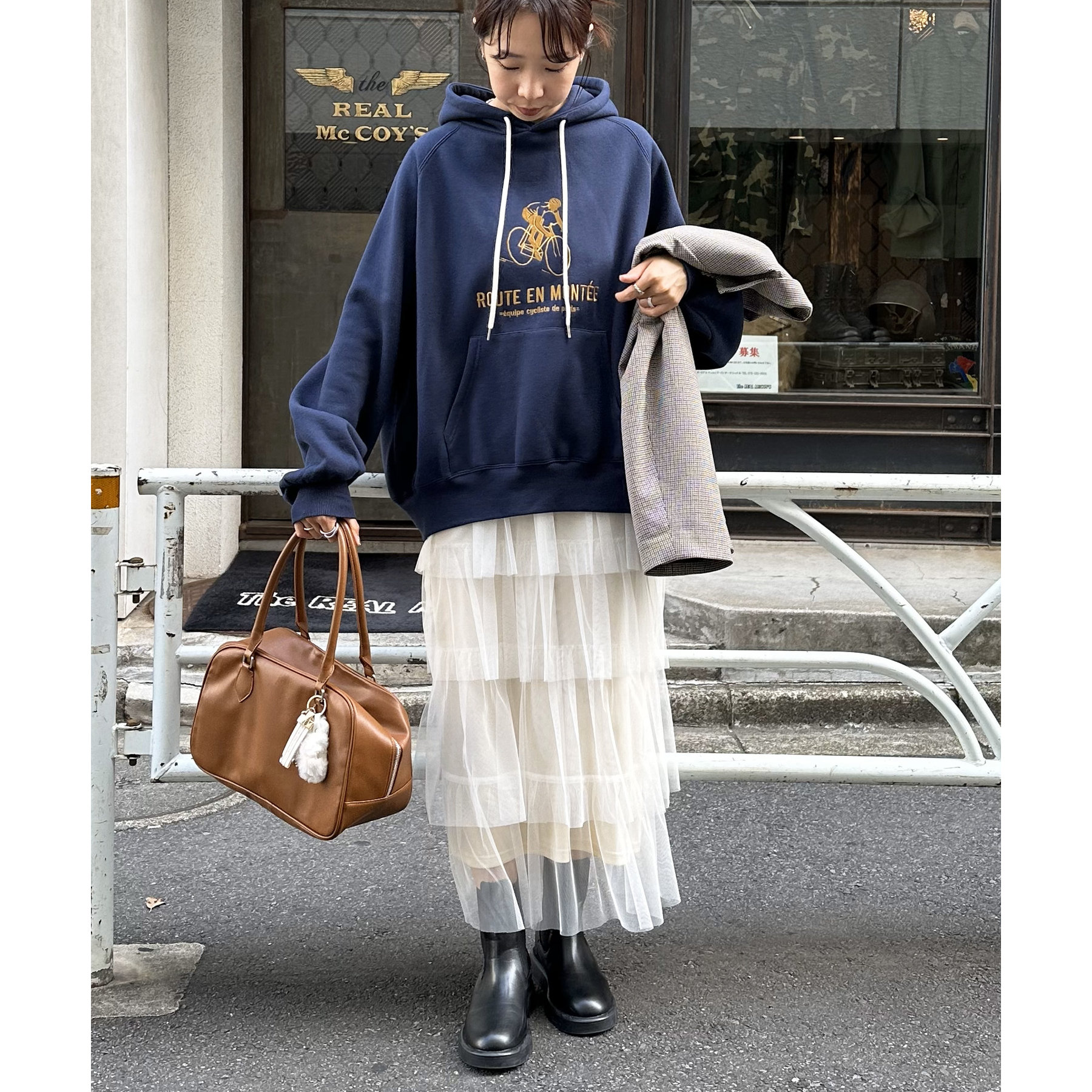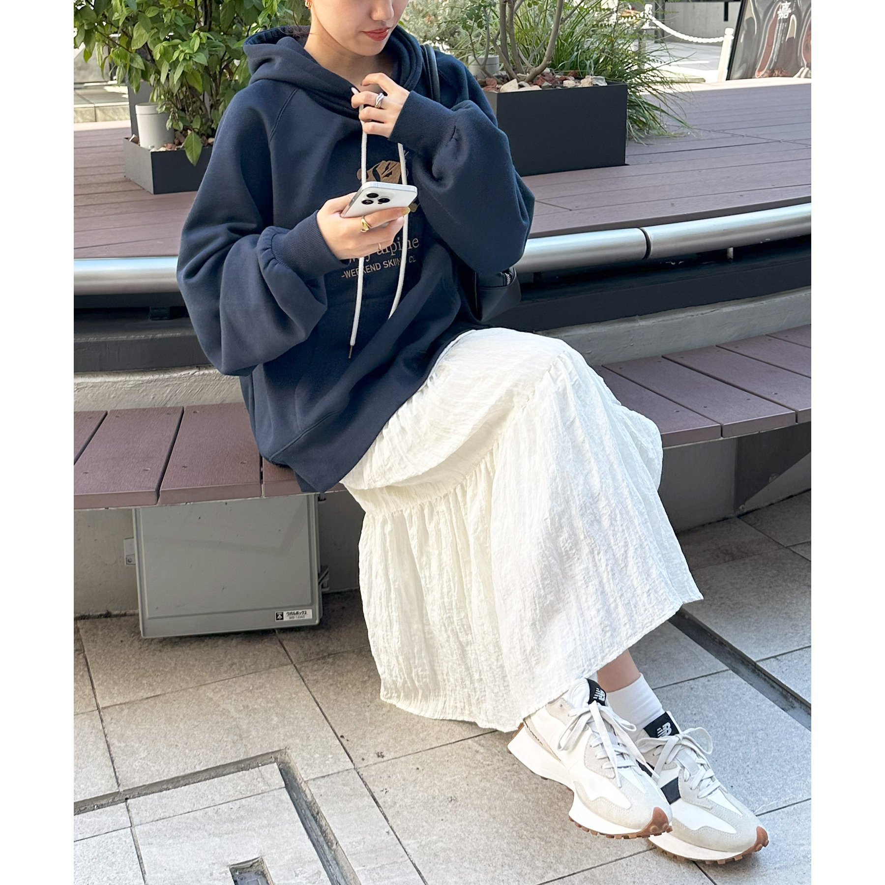 メンズライクなパーカーはカジュアルコーデはもちろん、ナロースカートやティアードスカートと合わせたコーデもおすすめ。