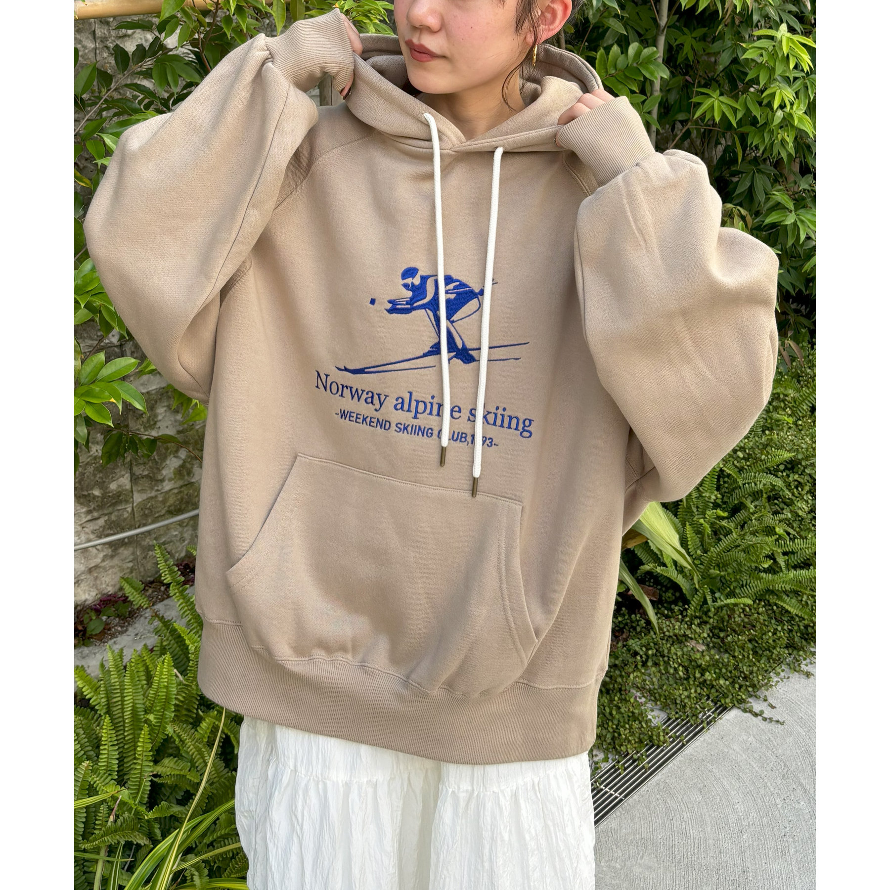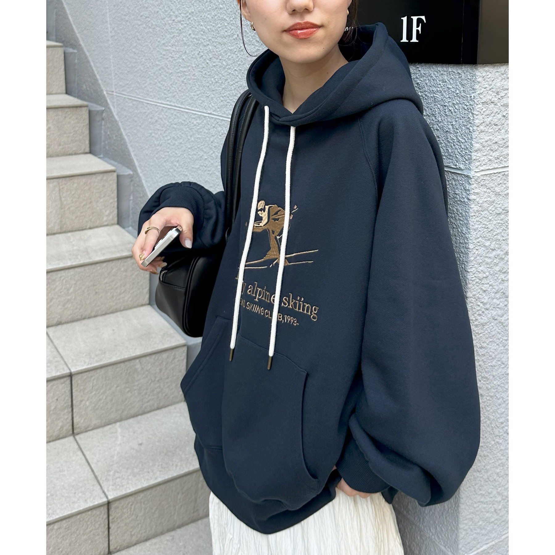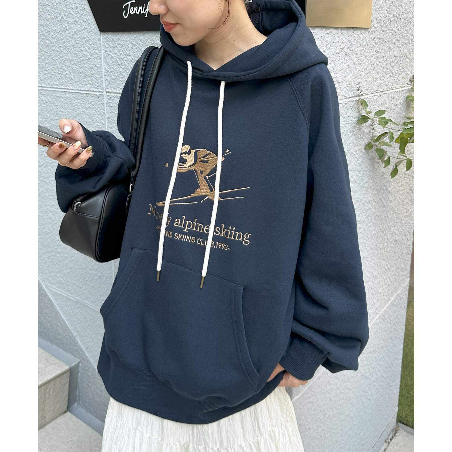 【ユニセックス】モチーフ刺繍ロゴフードプルオーバー