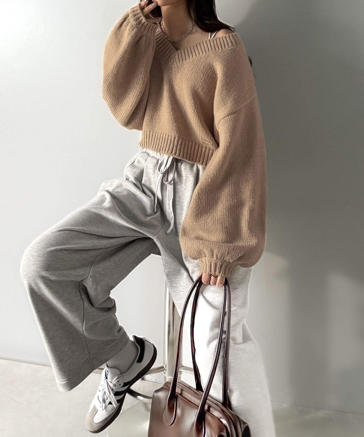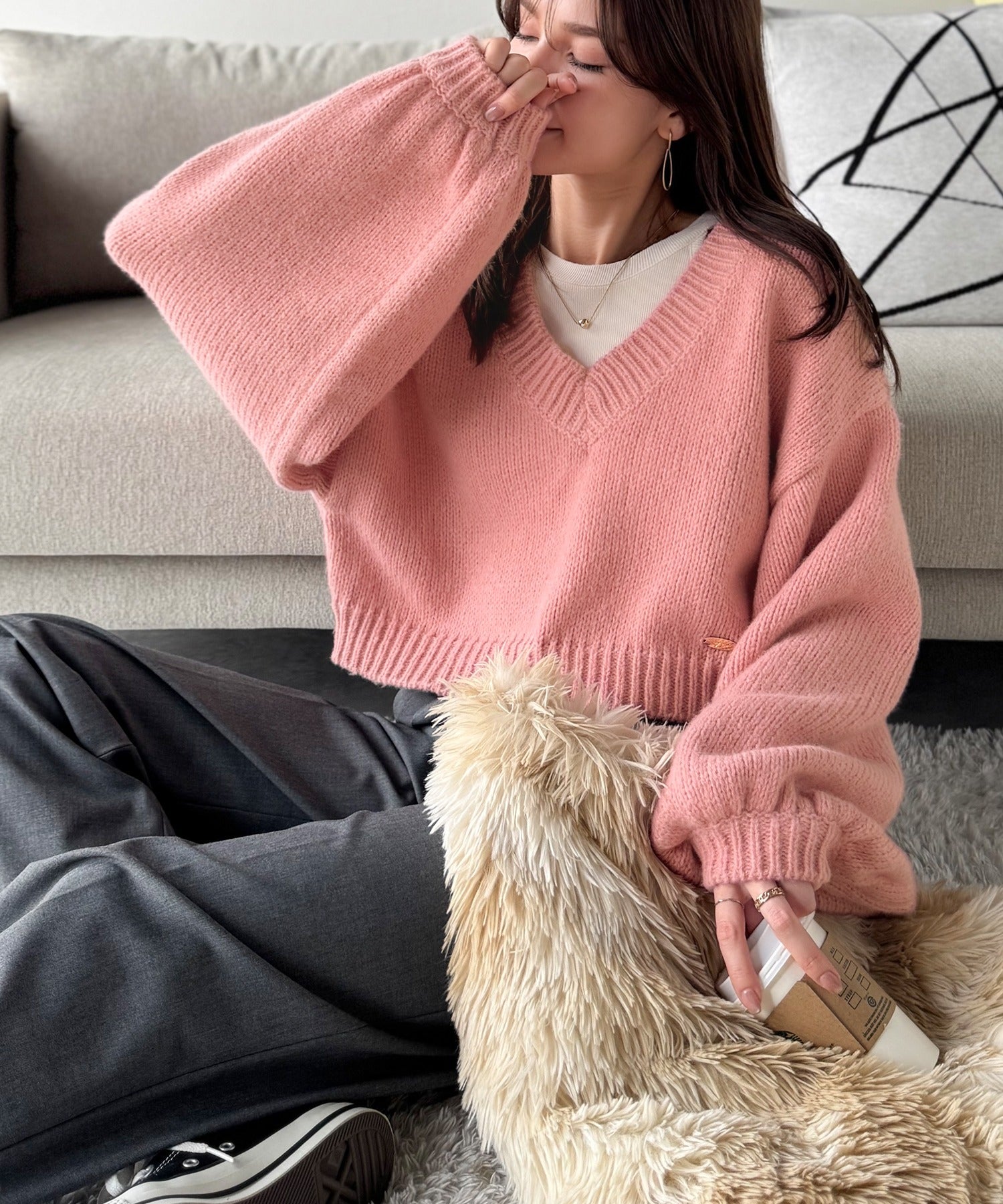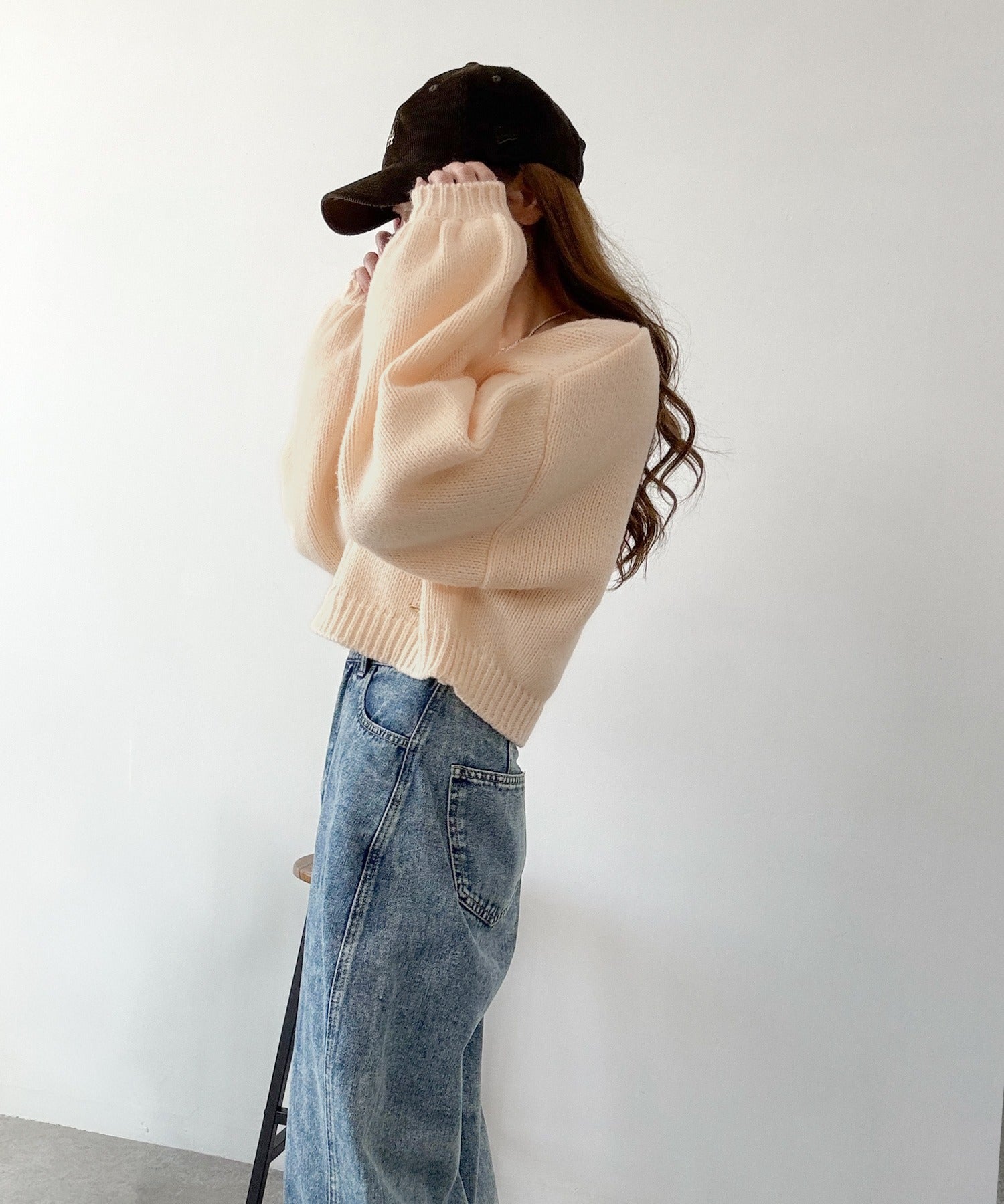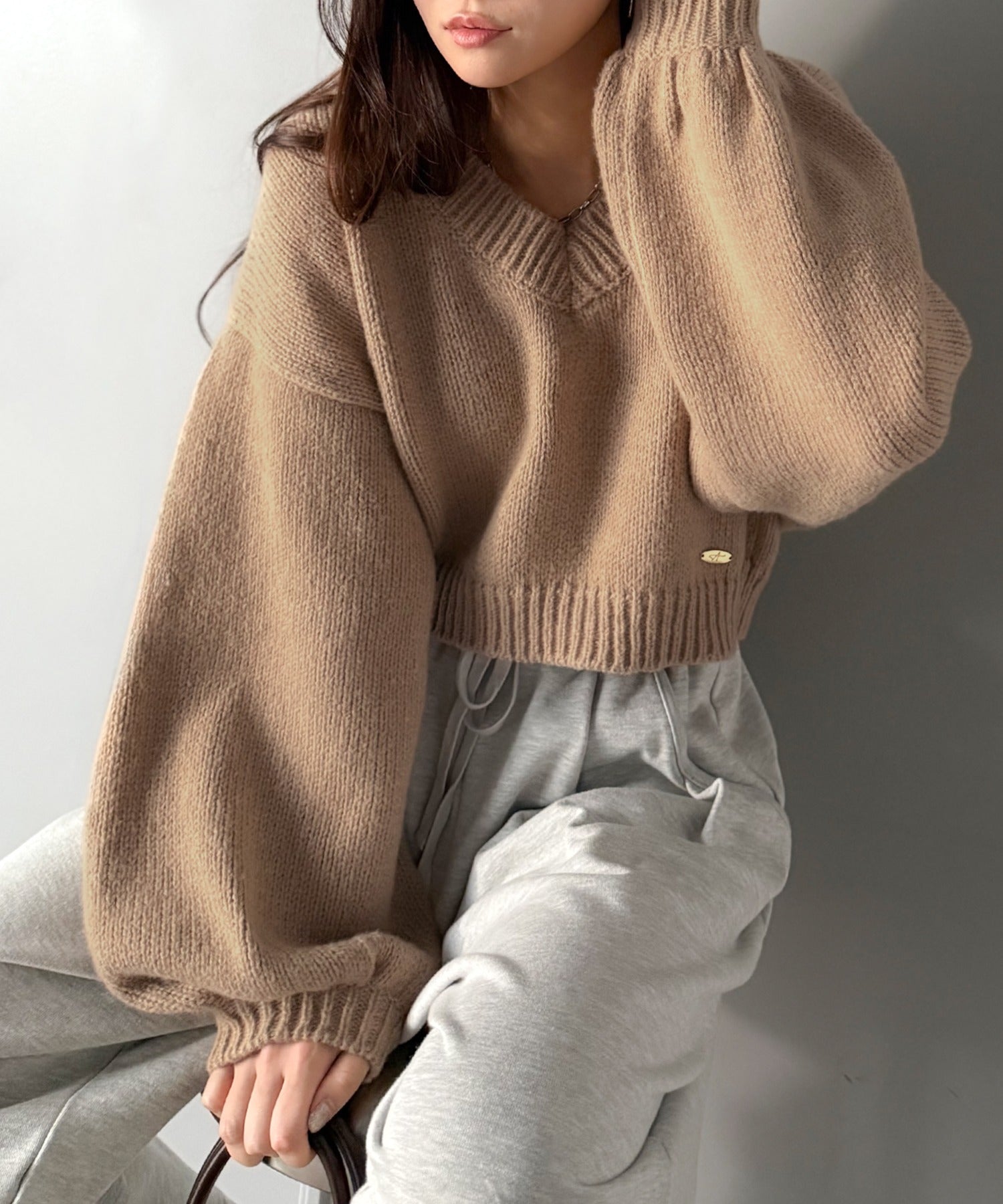 1枚で今っぽさを叶える、ボリューム袖とクロップド丈が可愛いニット♪