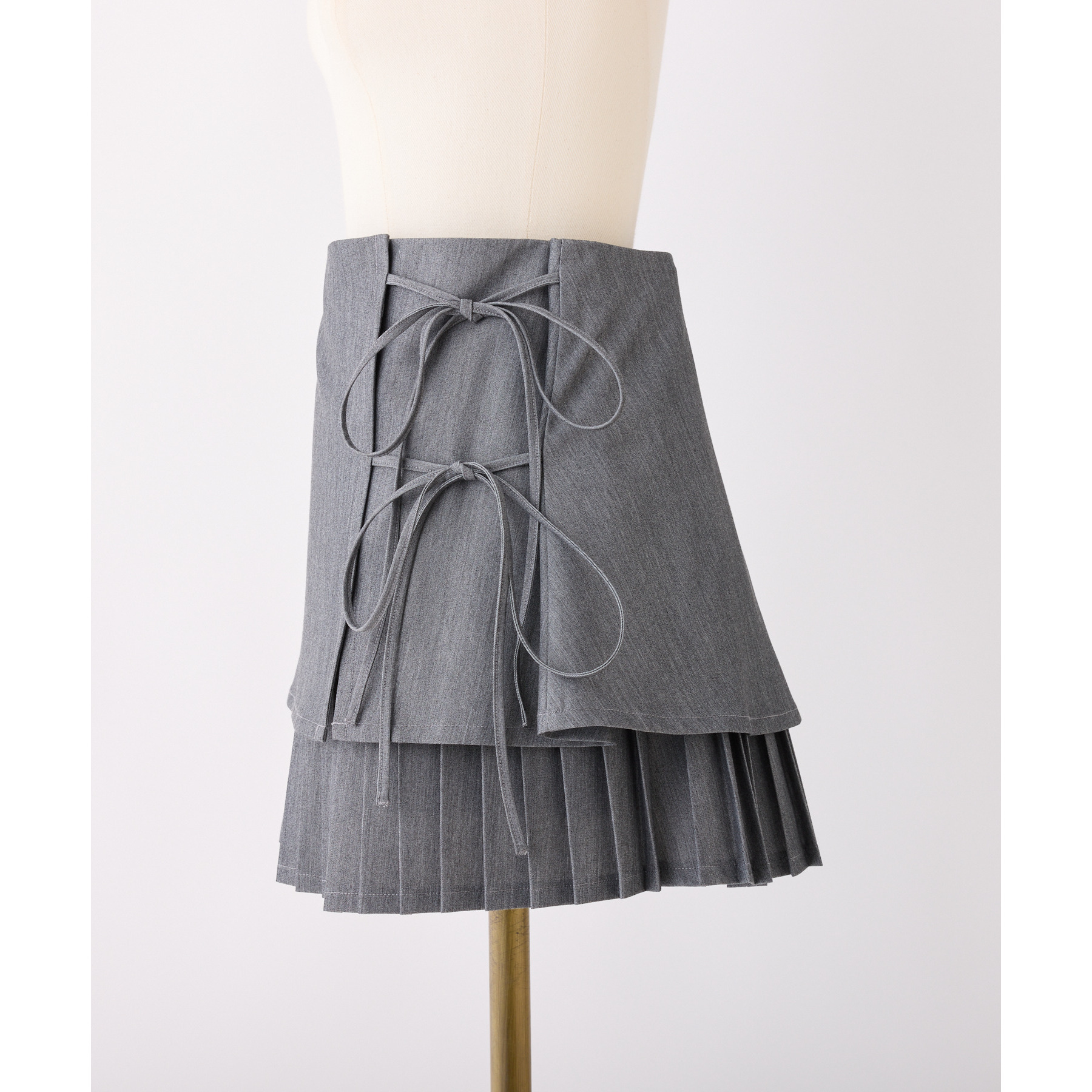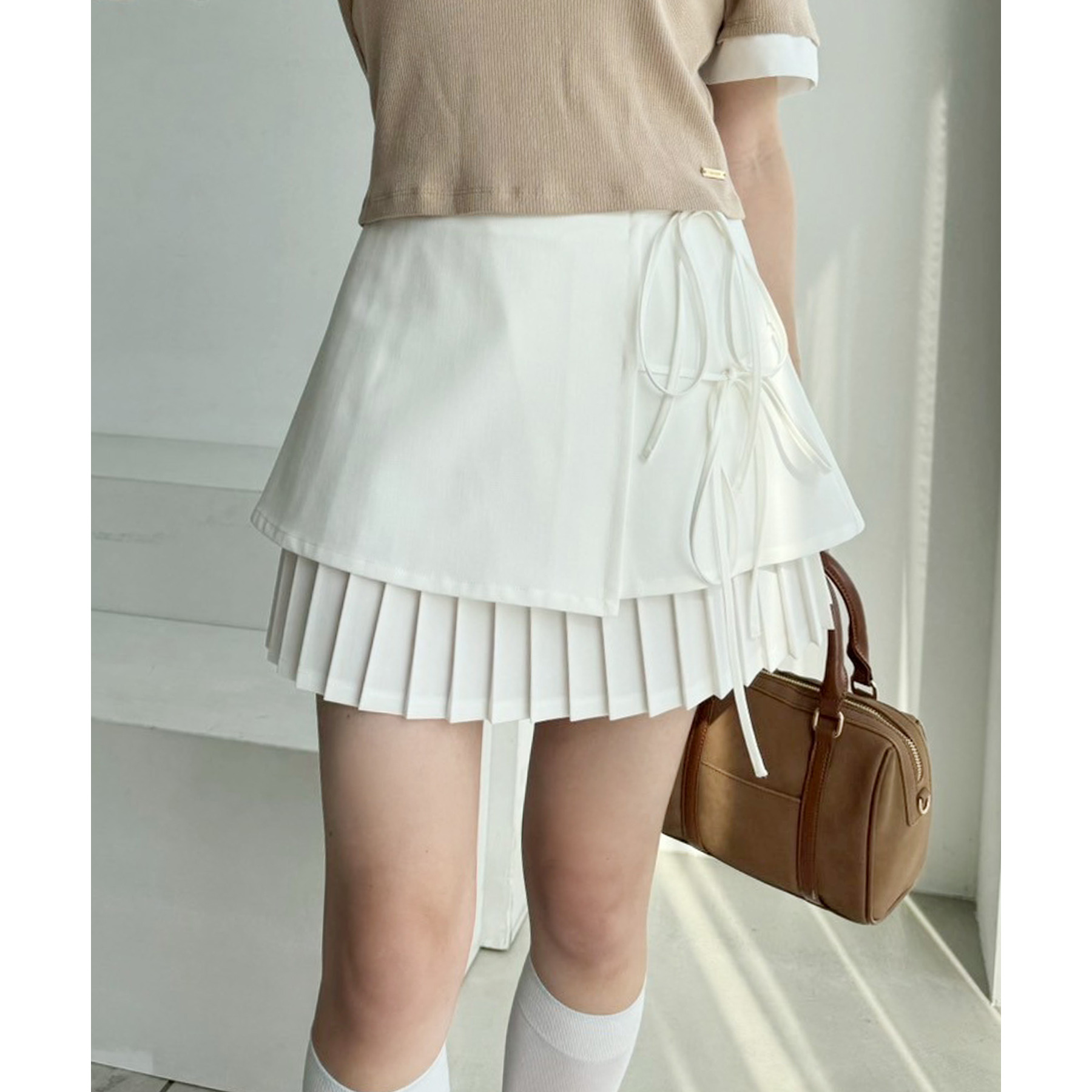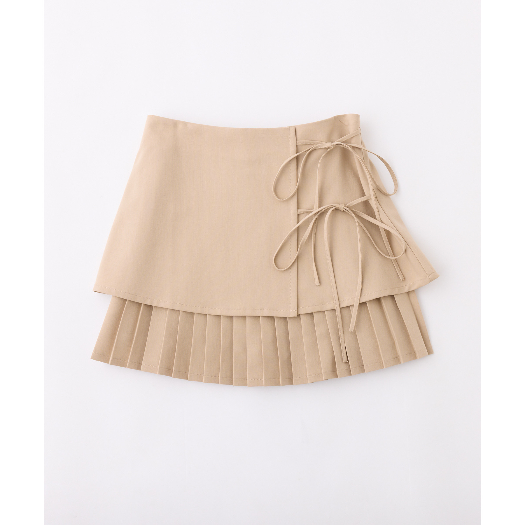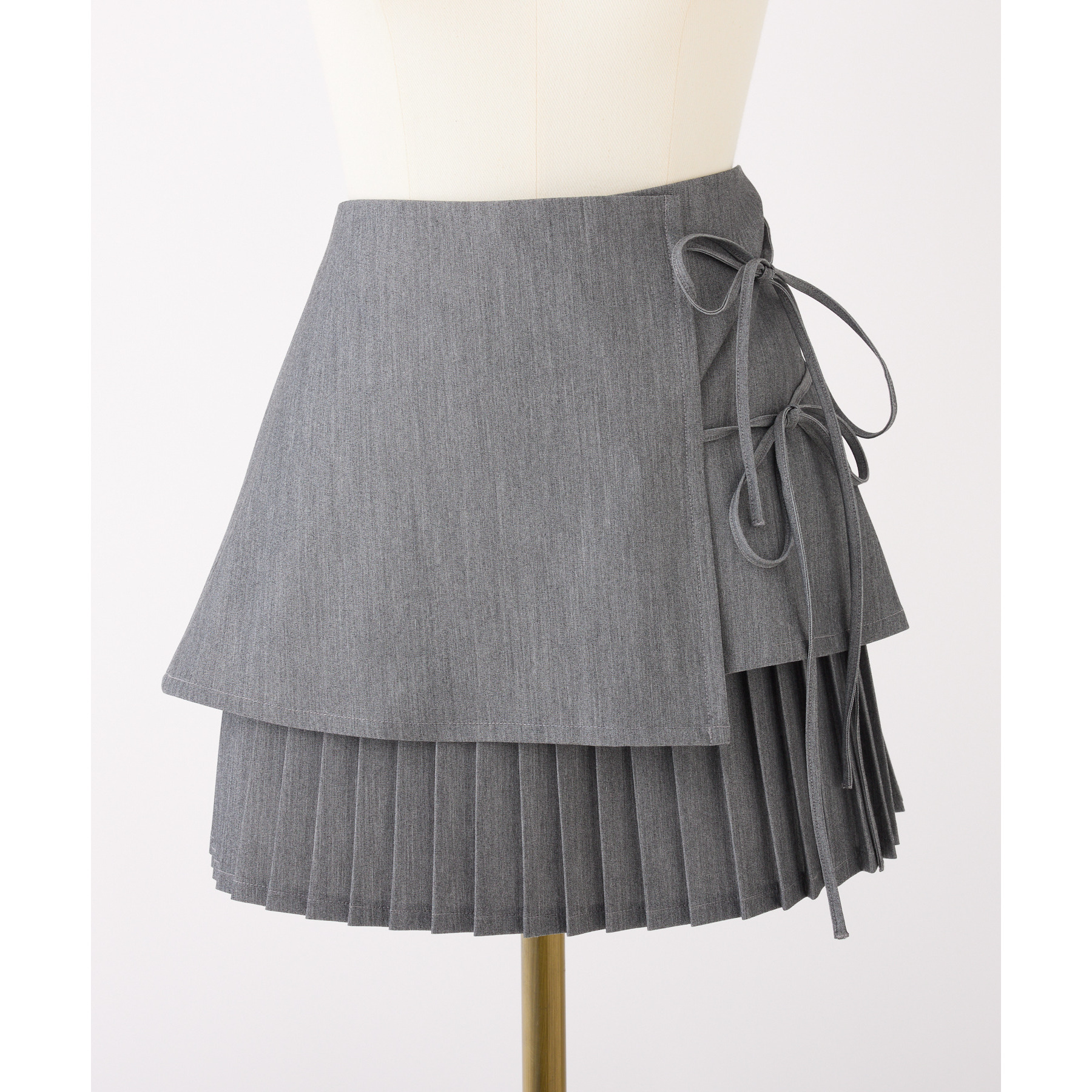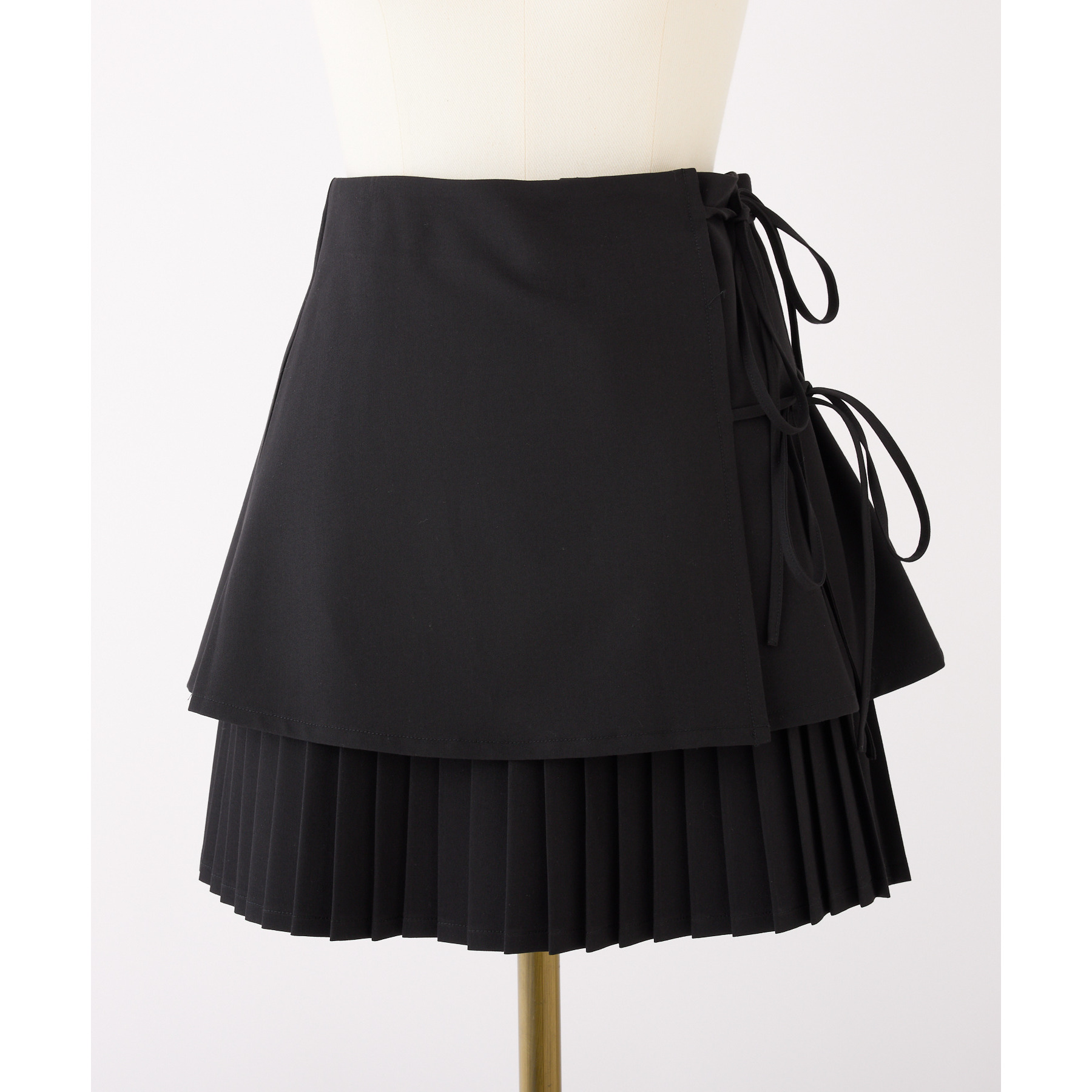 腰にリボンを付けたラップデザインのスカートと細プリーツスカートがセットになったアイテム