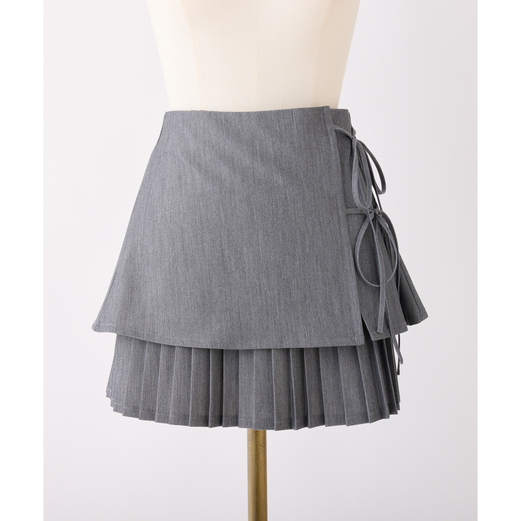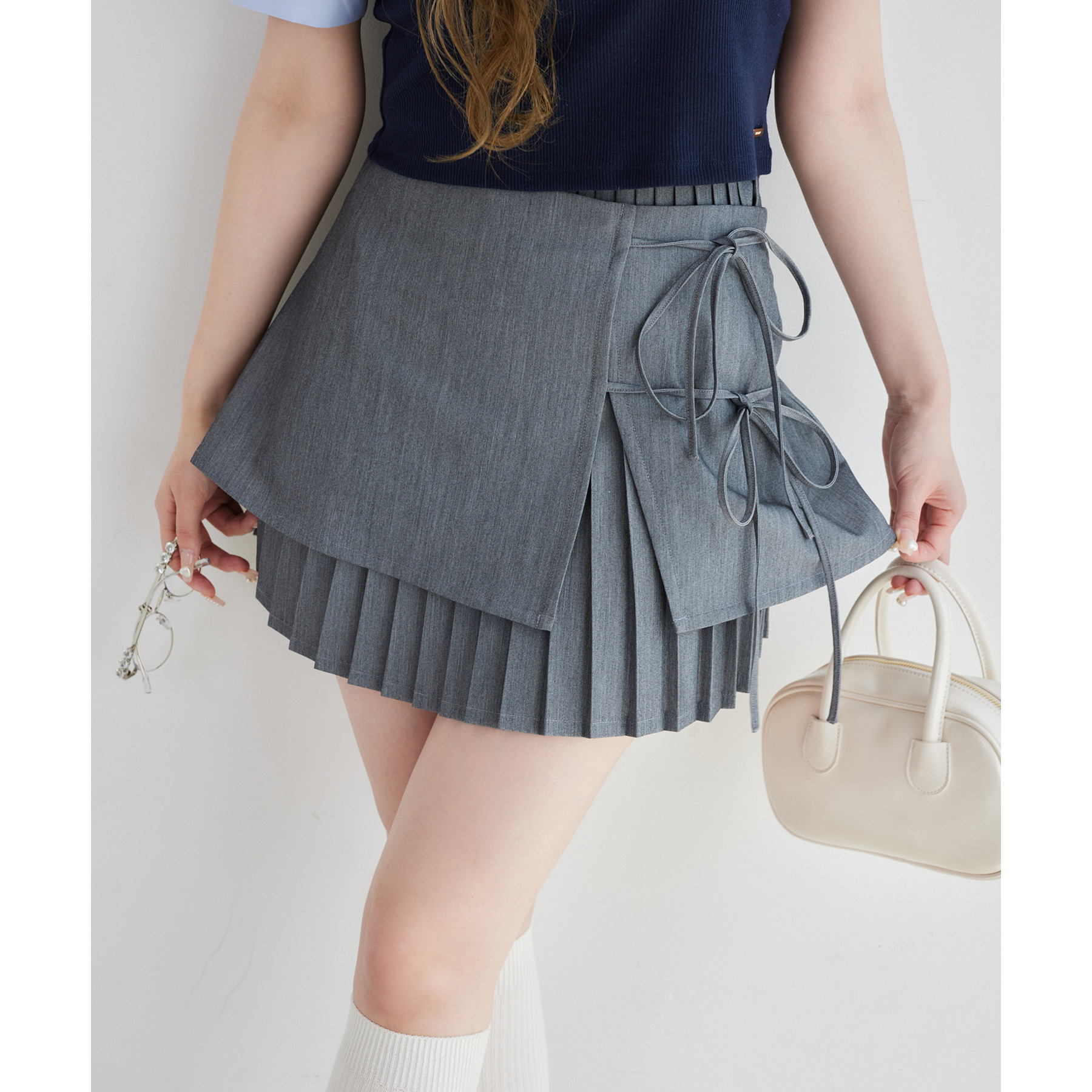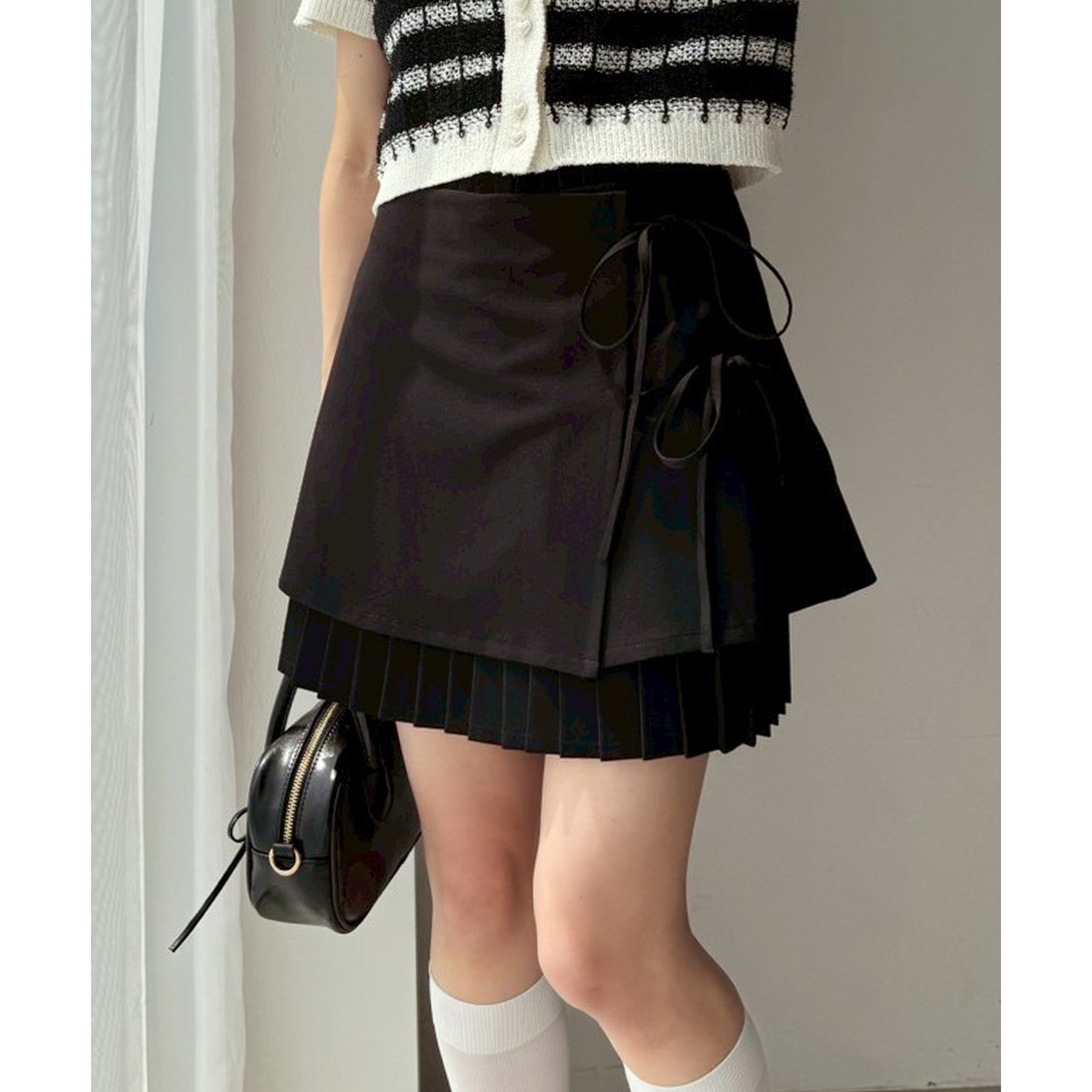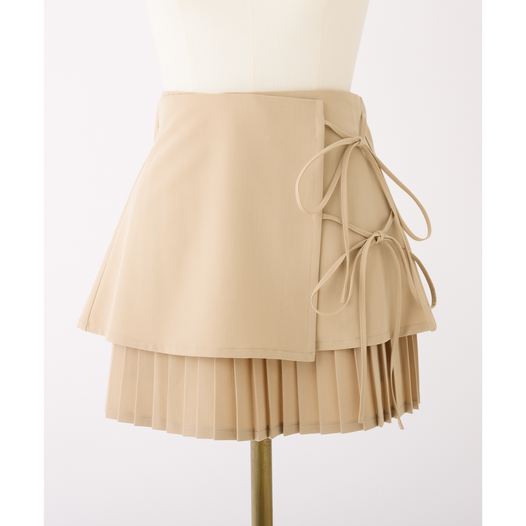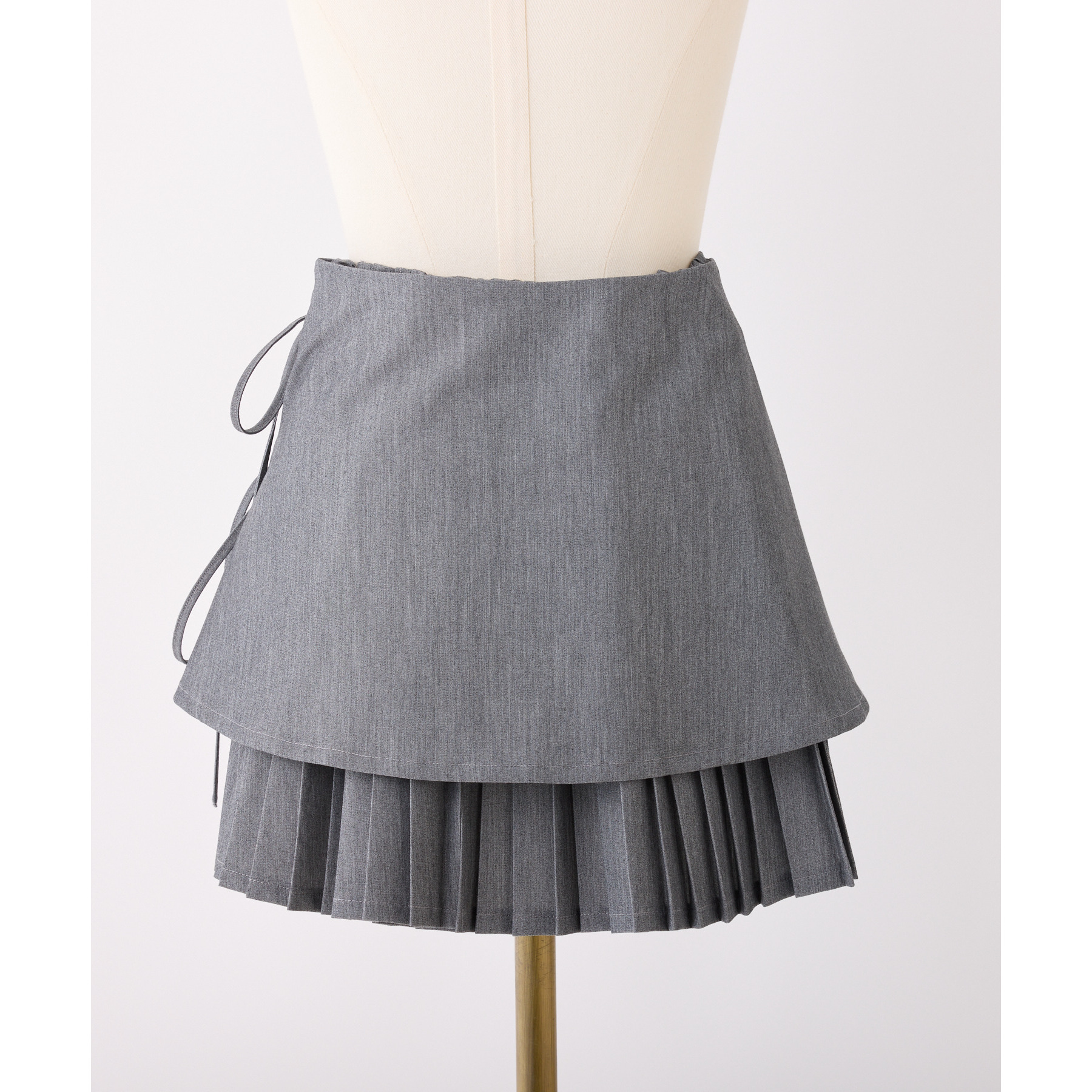 腰にリボンを付けたラップデザインのスカートと細プリーツスカートがセットになったアイテム