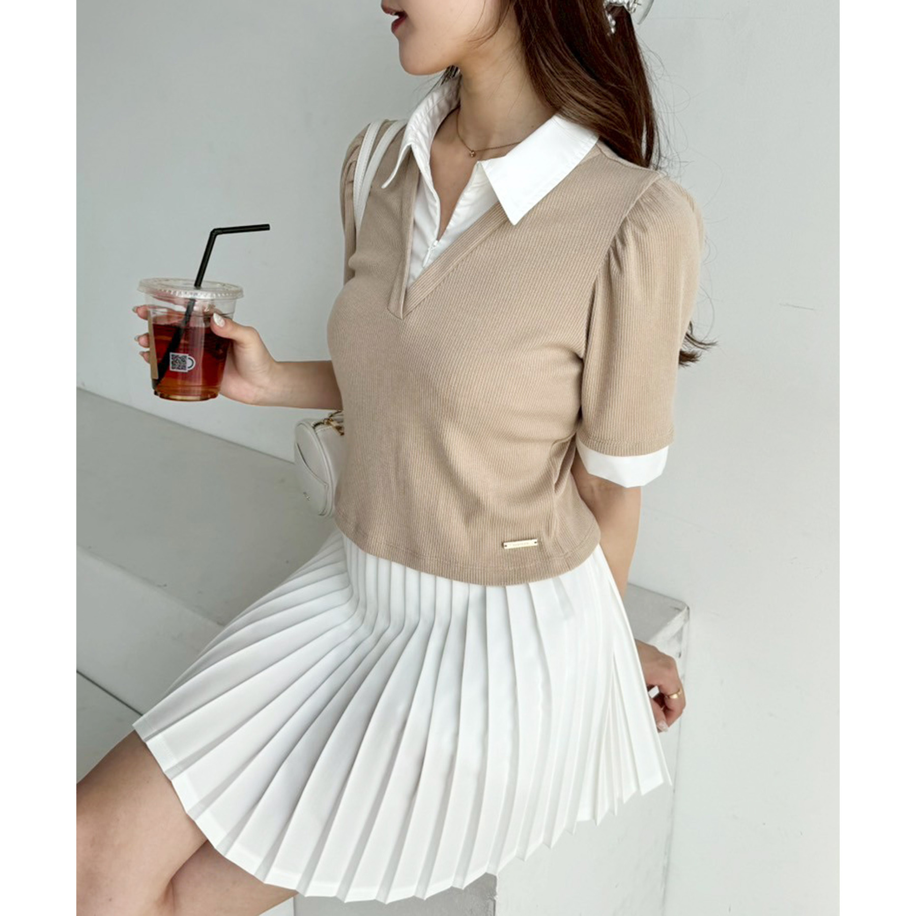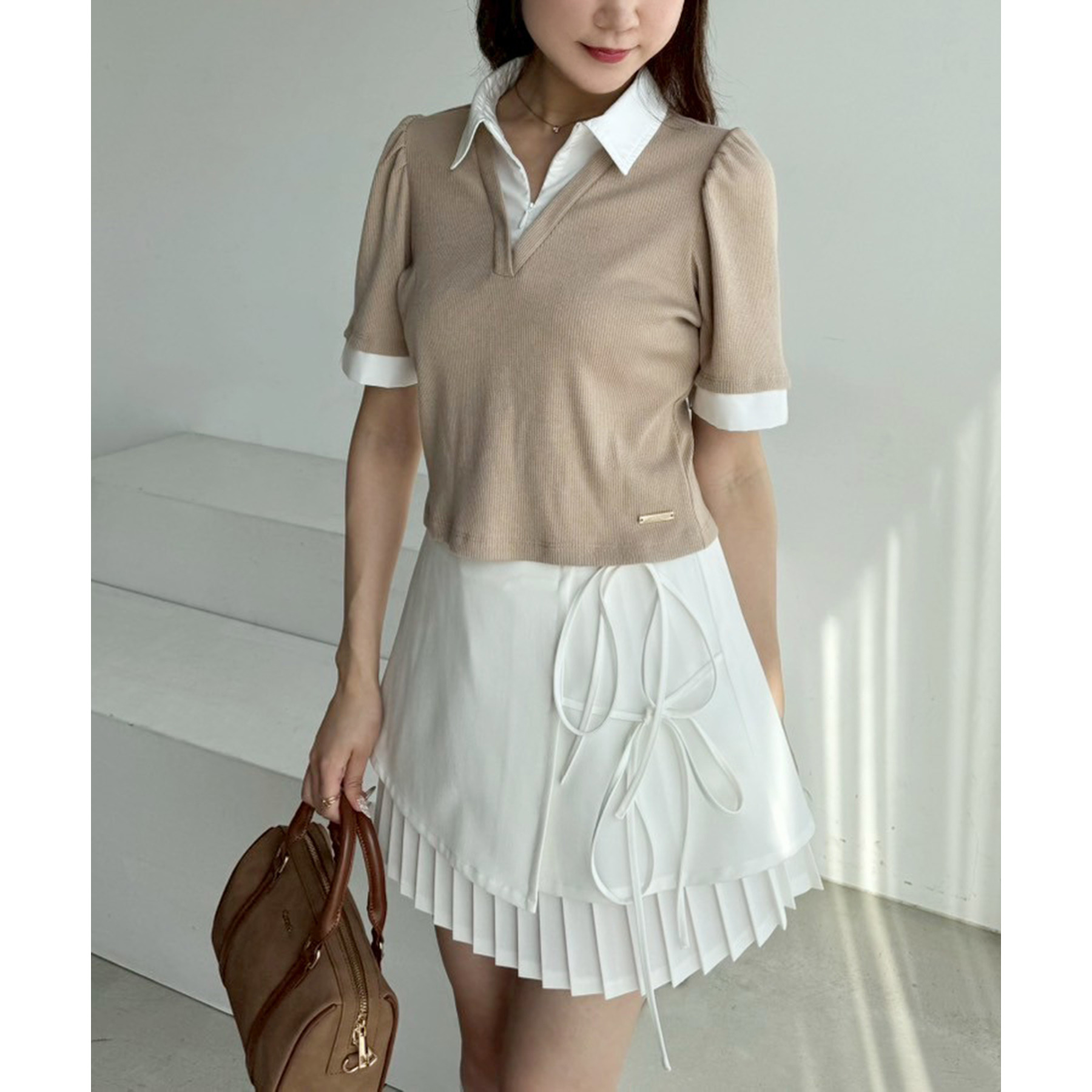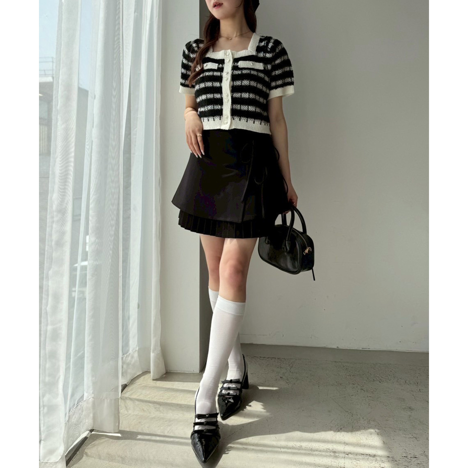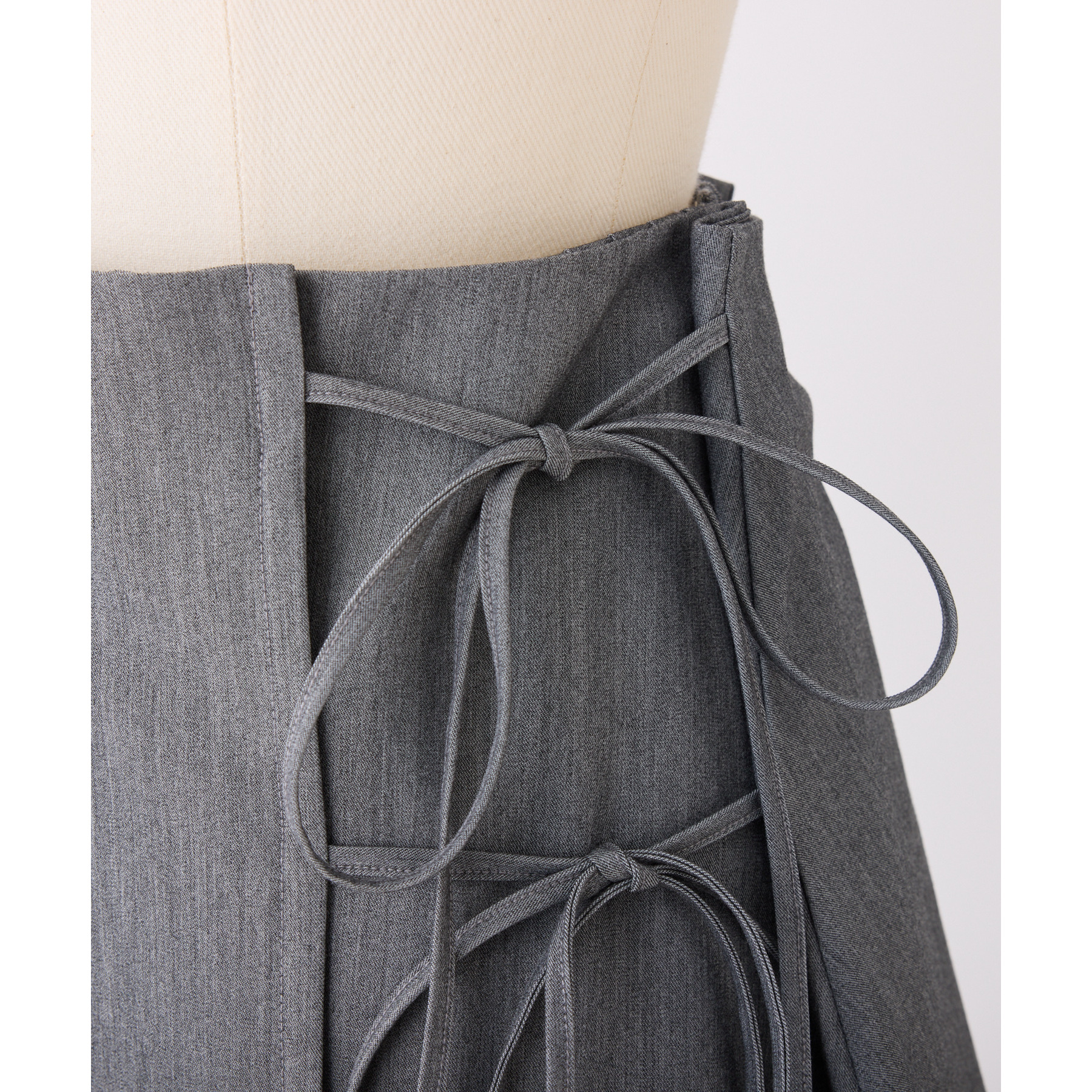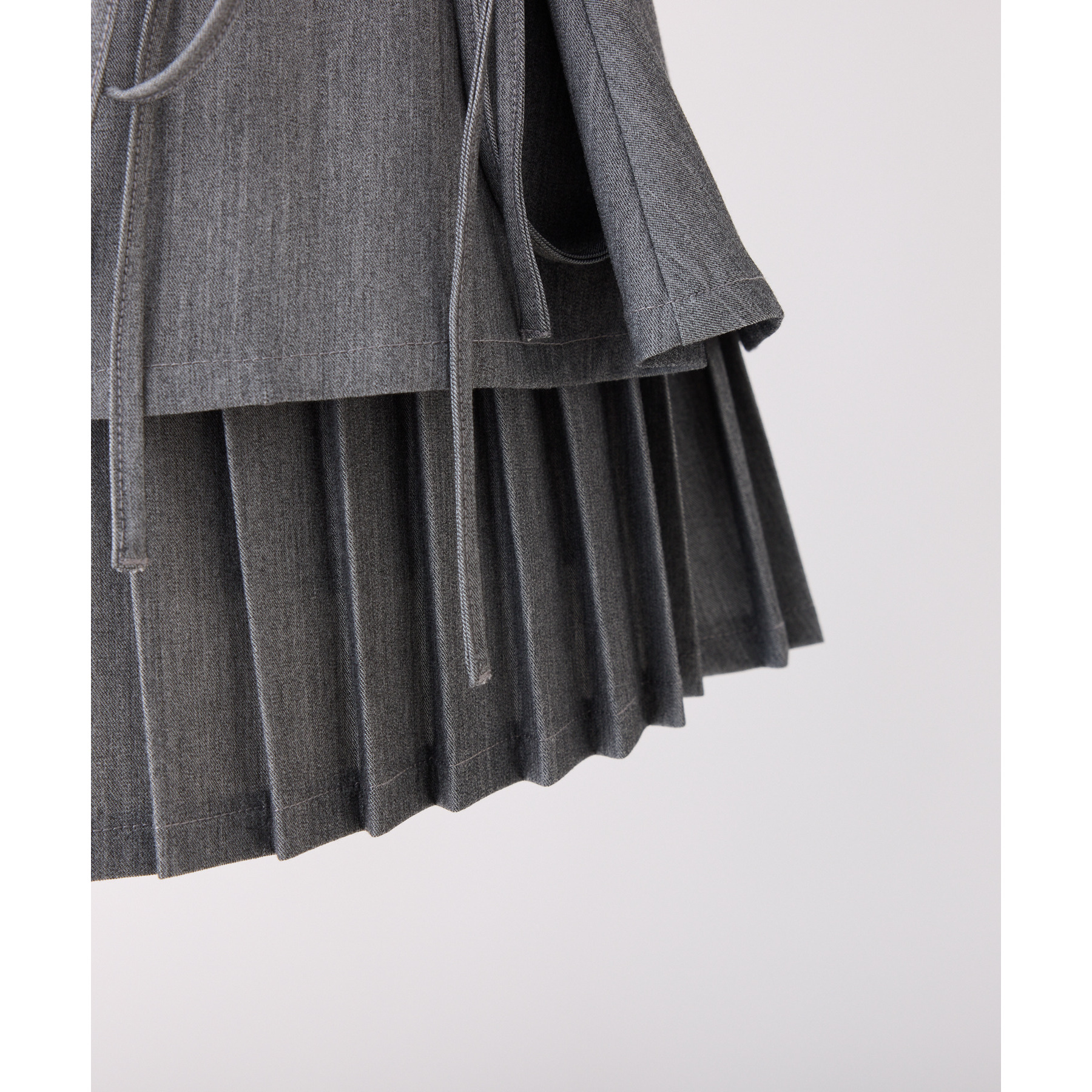 腰にリボンを付けたラップデザインのスカートと細プリーツスカートがセットになったアイテム