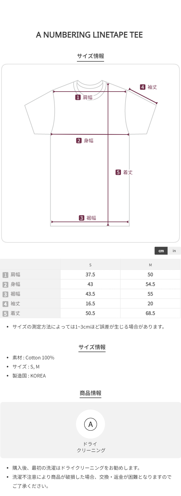 A NUMBERING LINETAPE TEE CREAM
