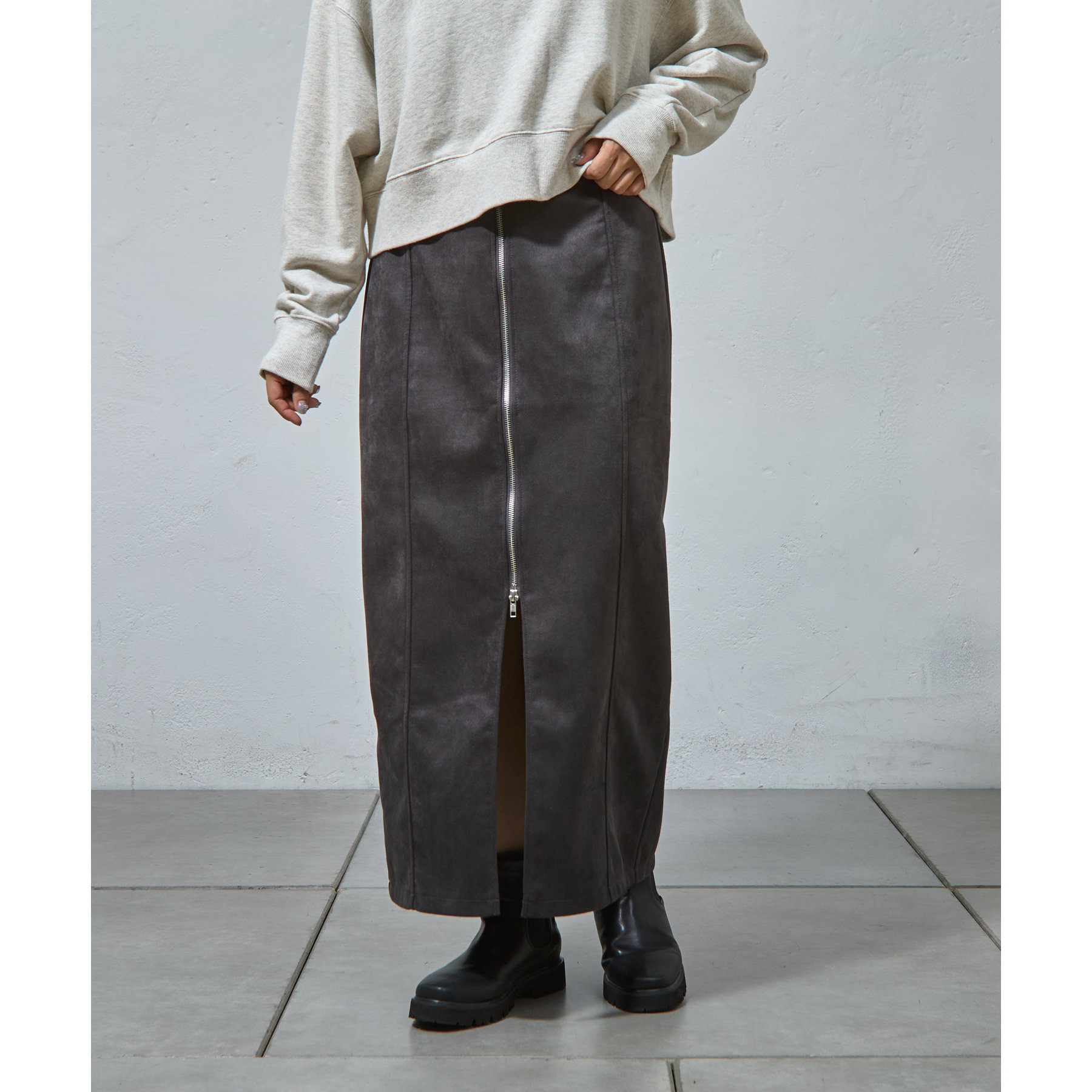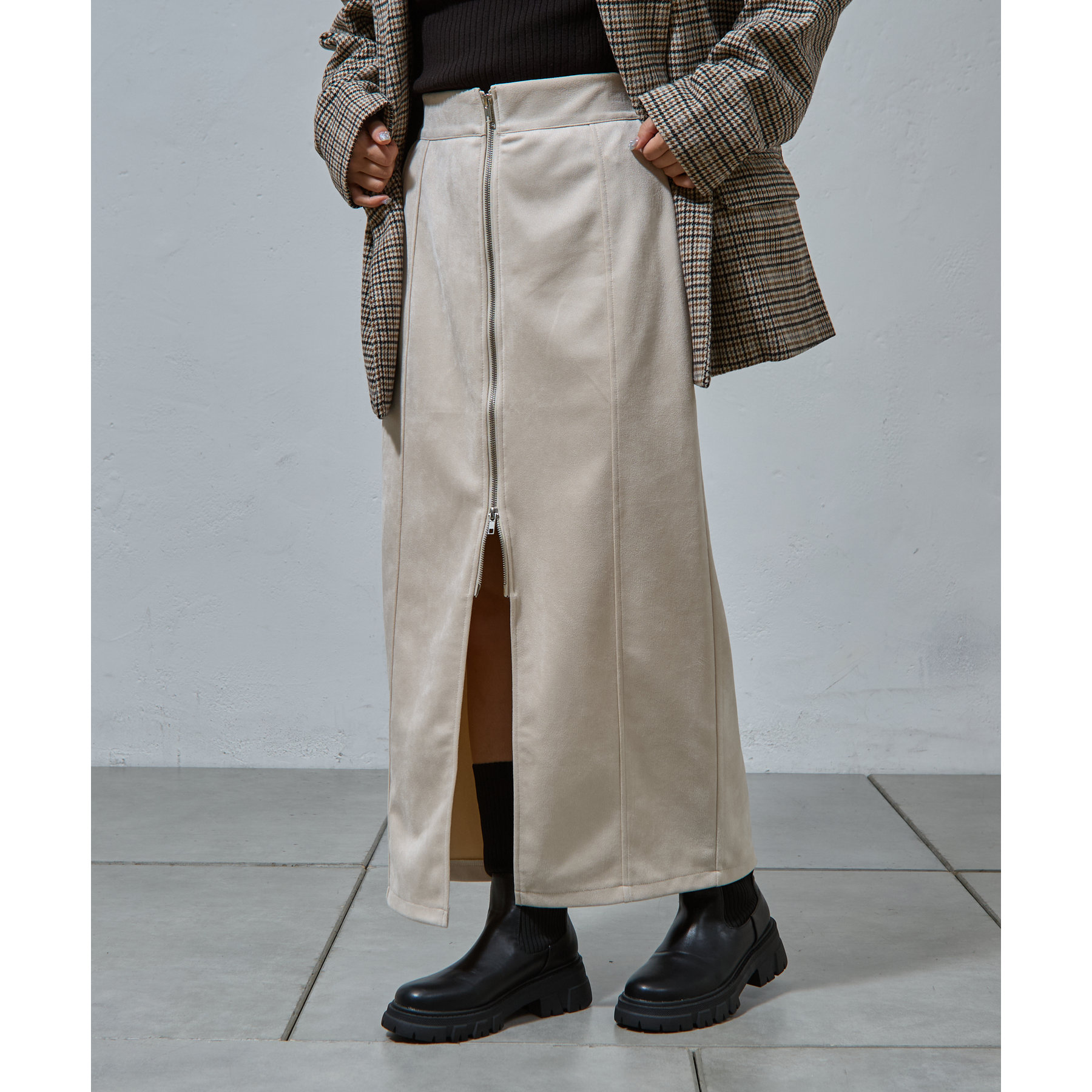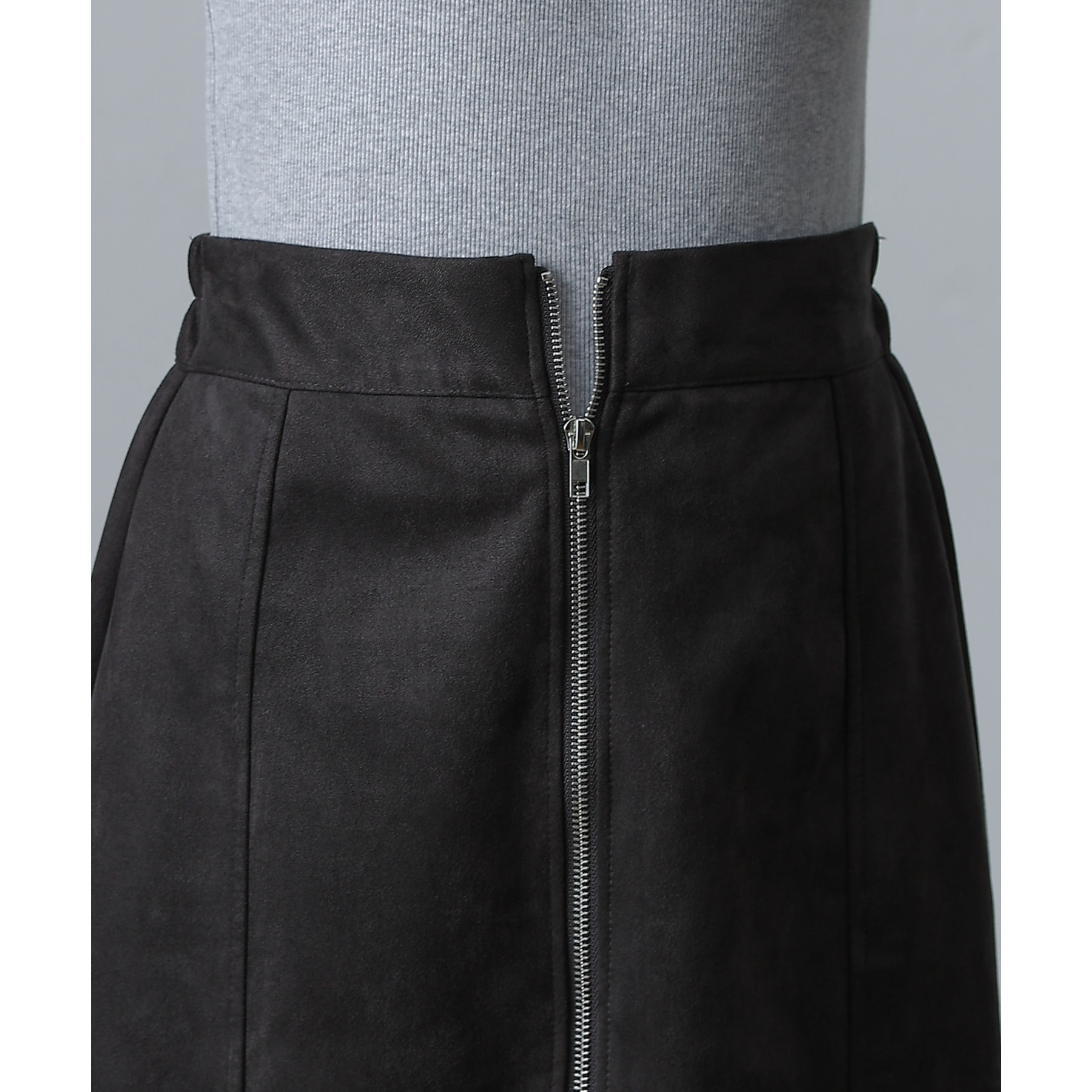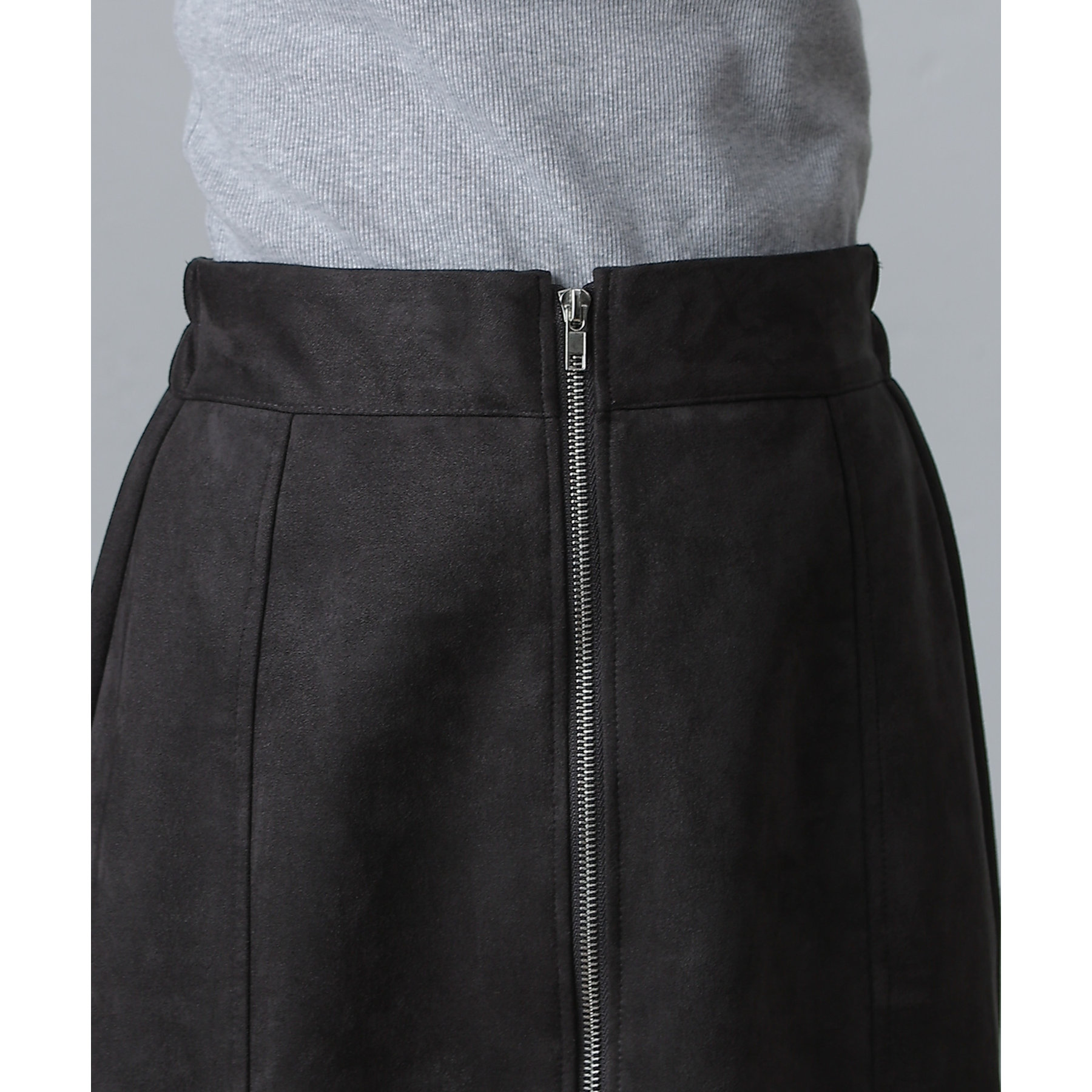 フロントについたダブルジップがポイントなスエードポンチスカート