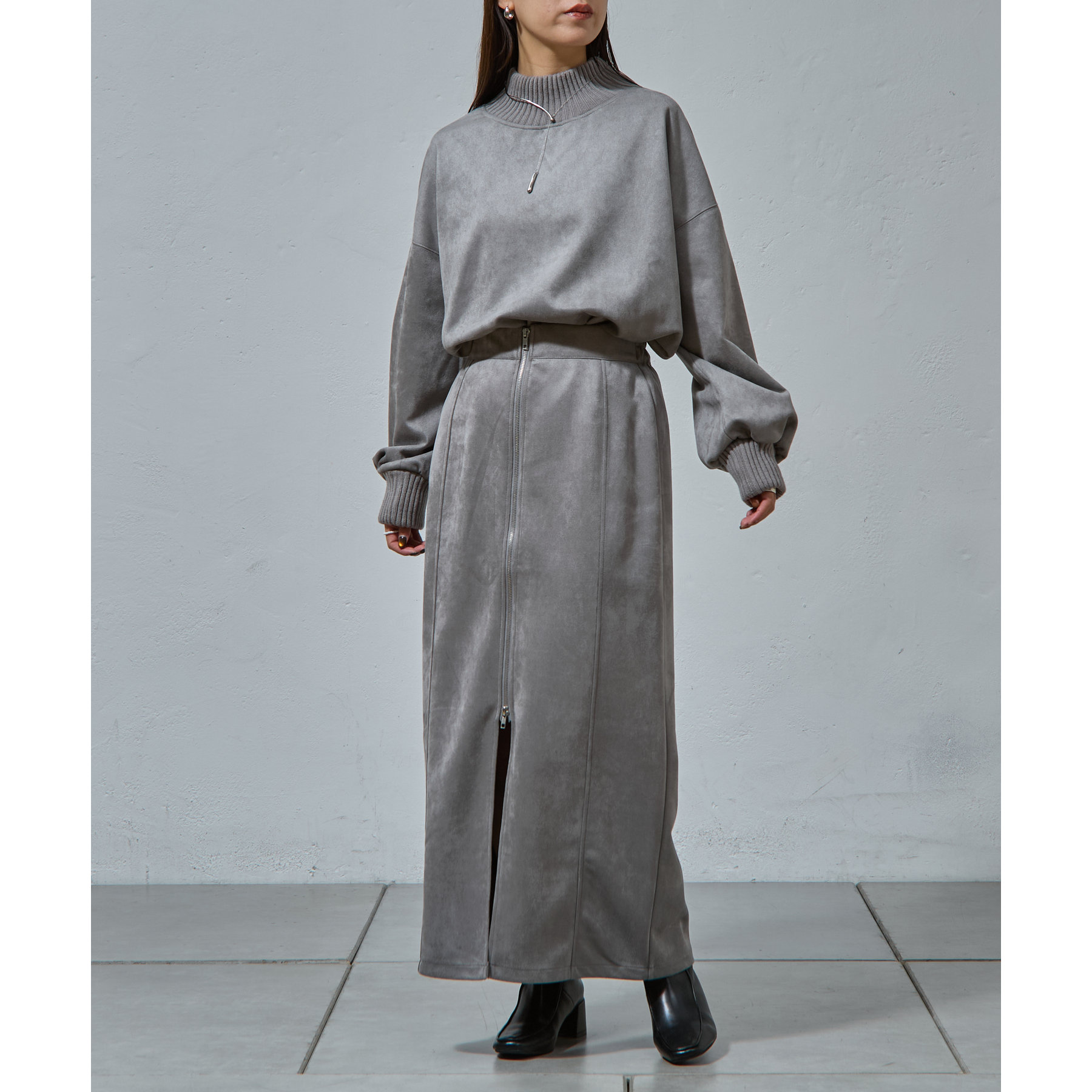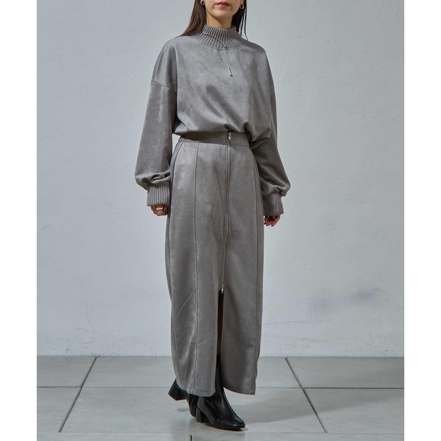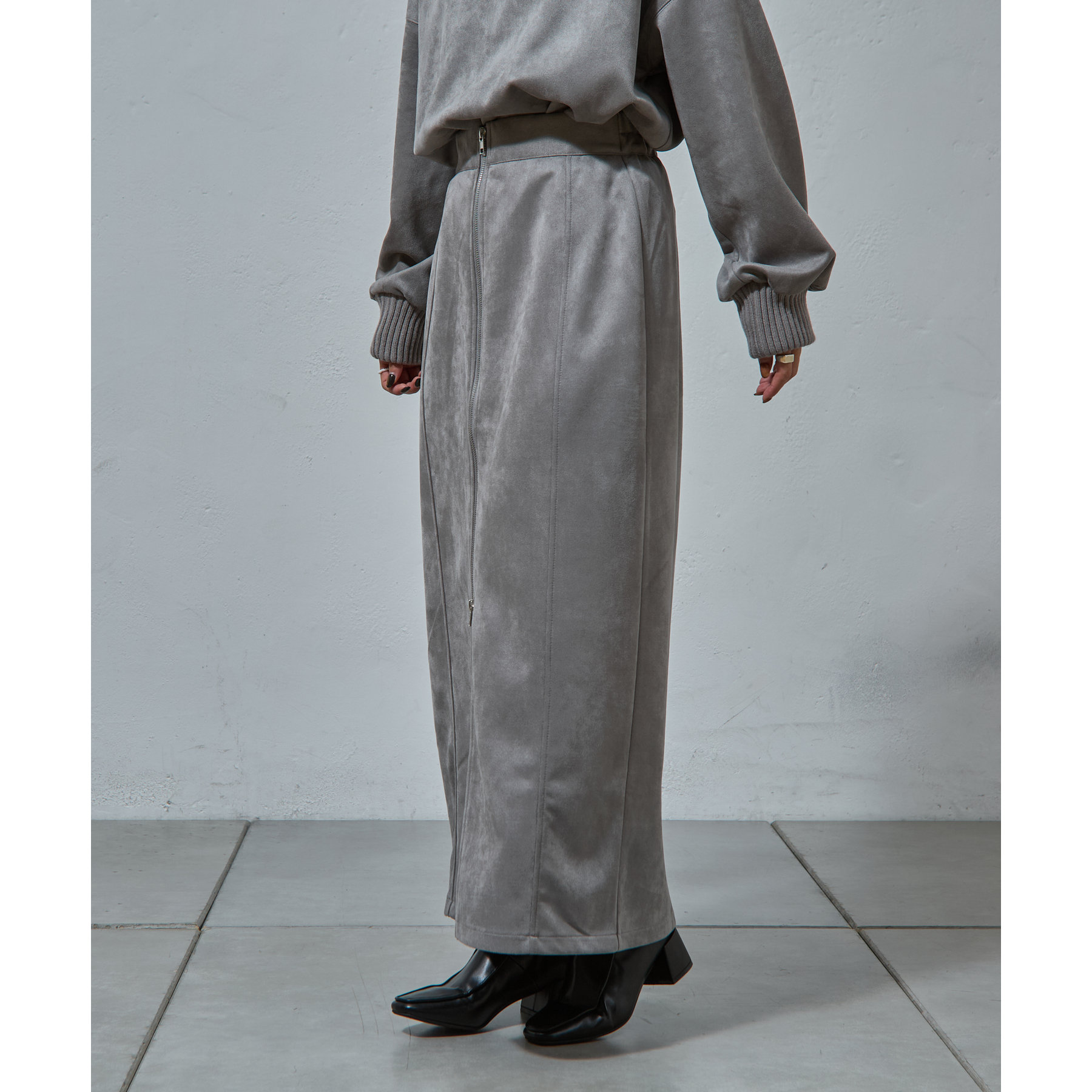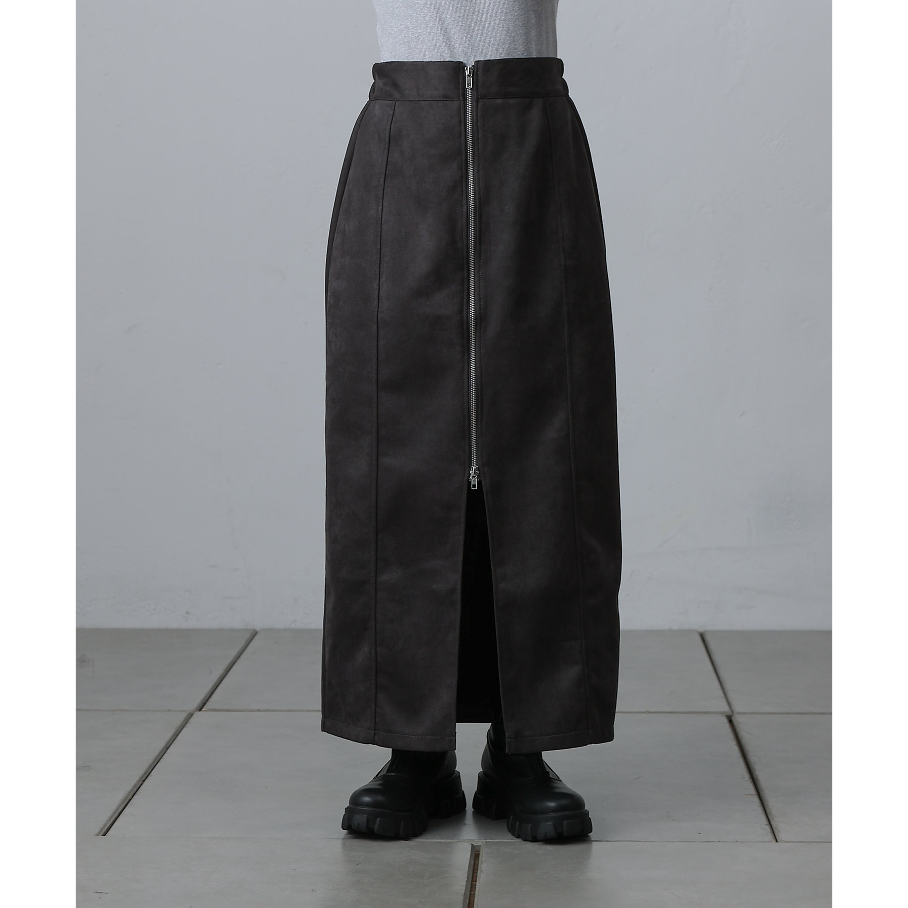 フロントについたダブルジップがポイントなスエードポンチスカート