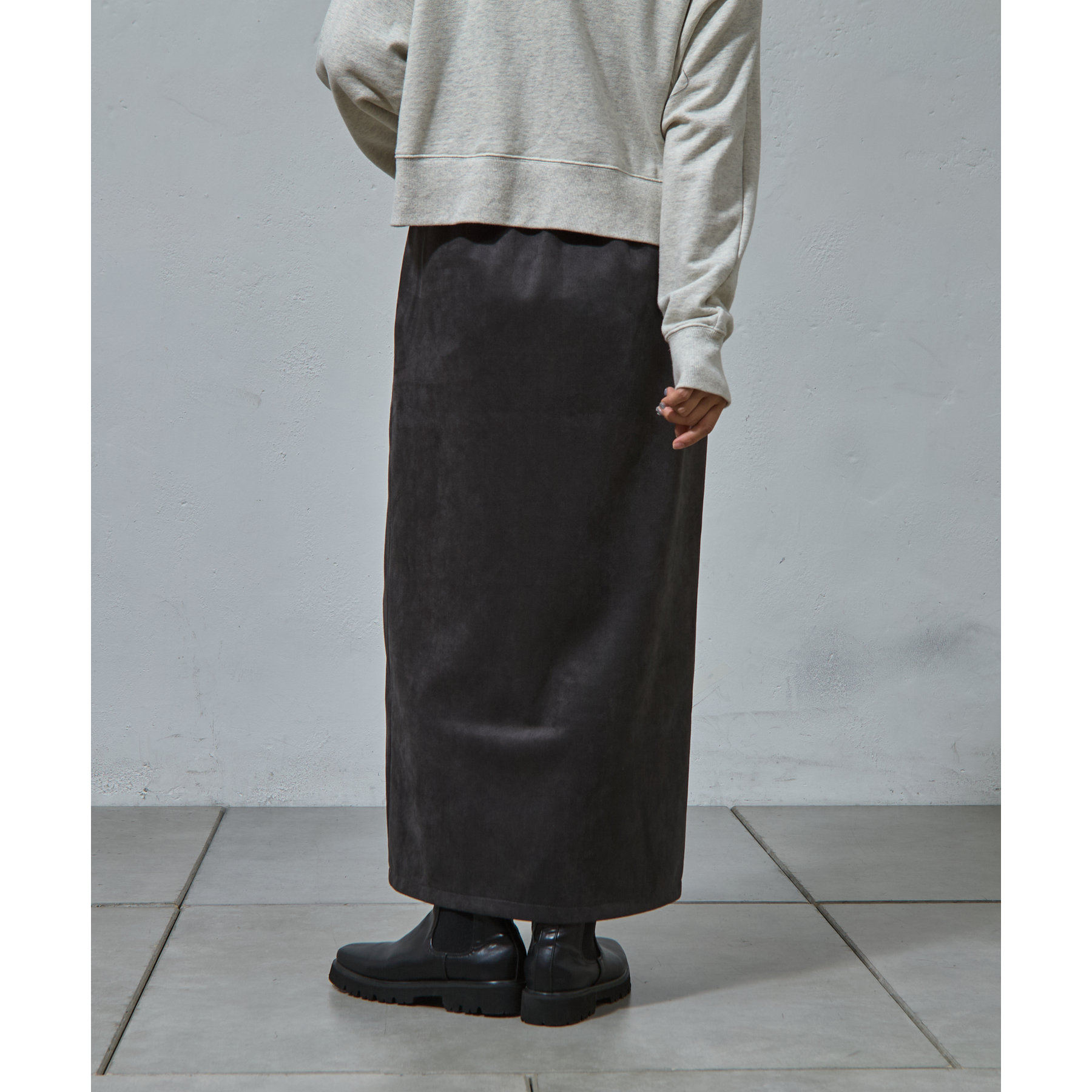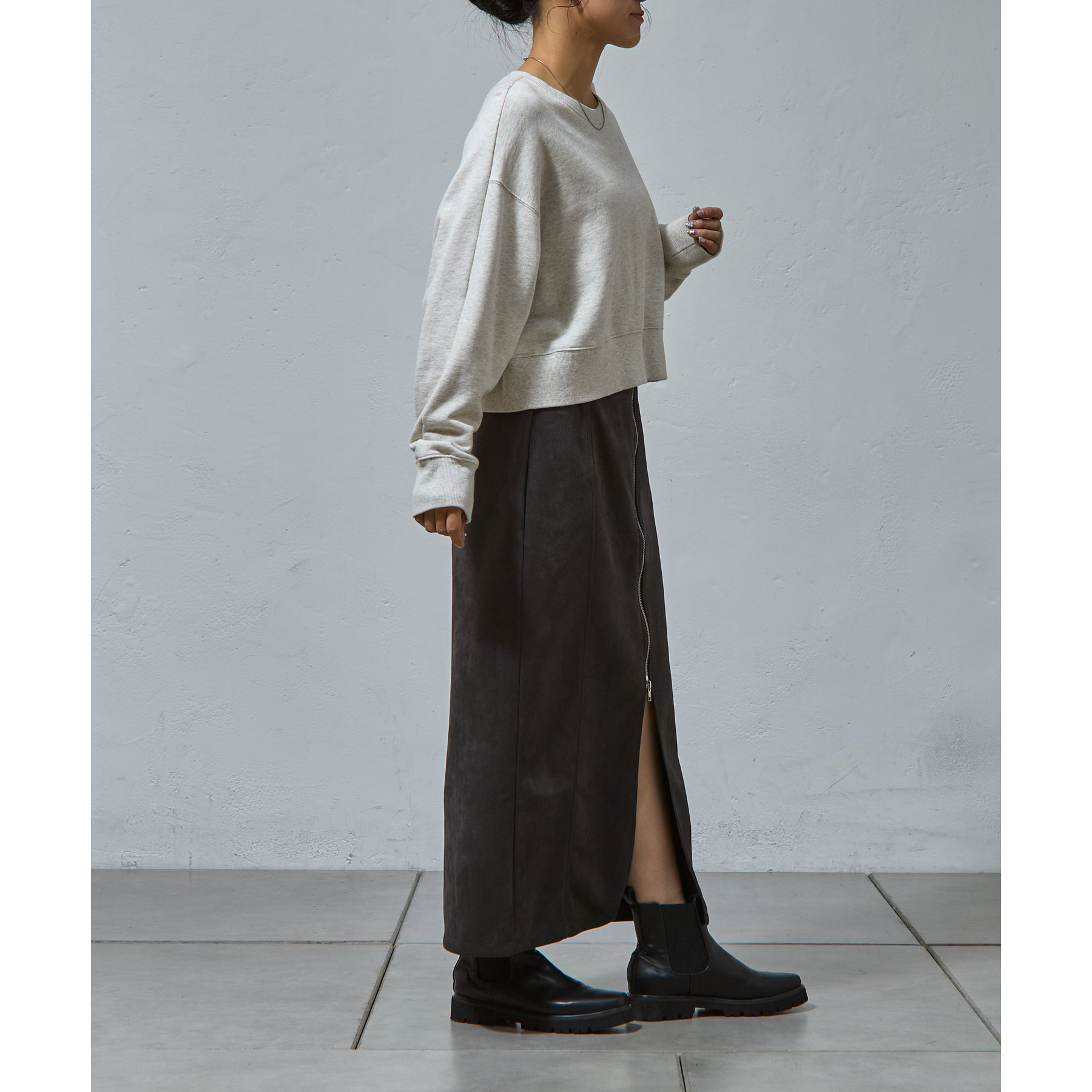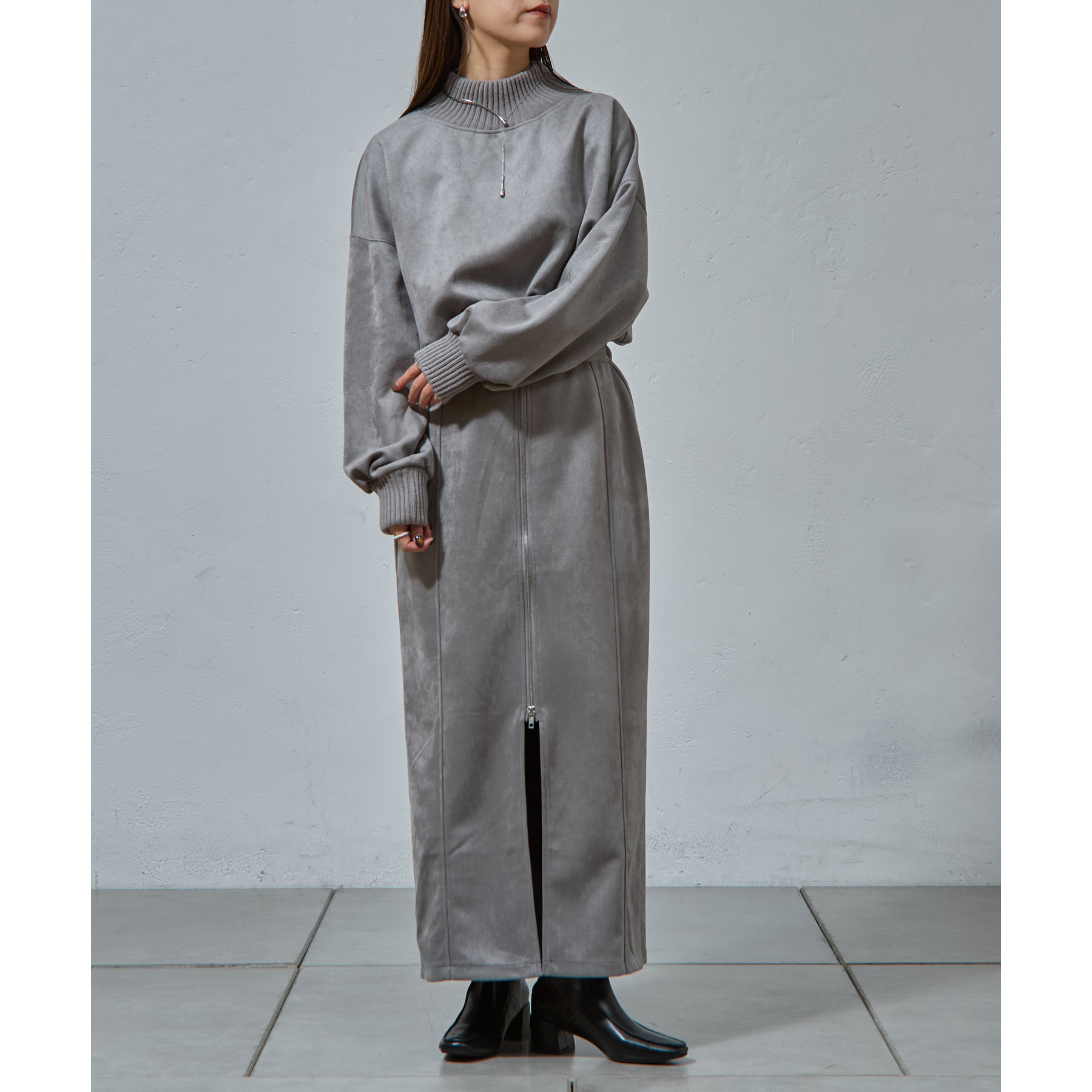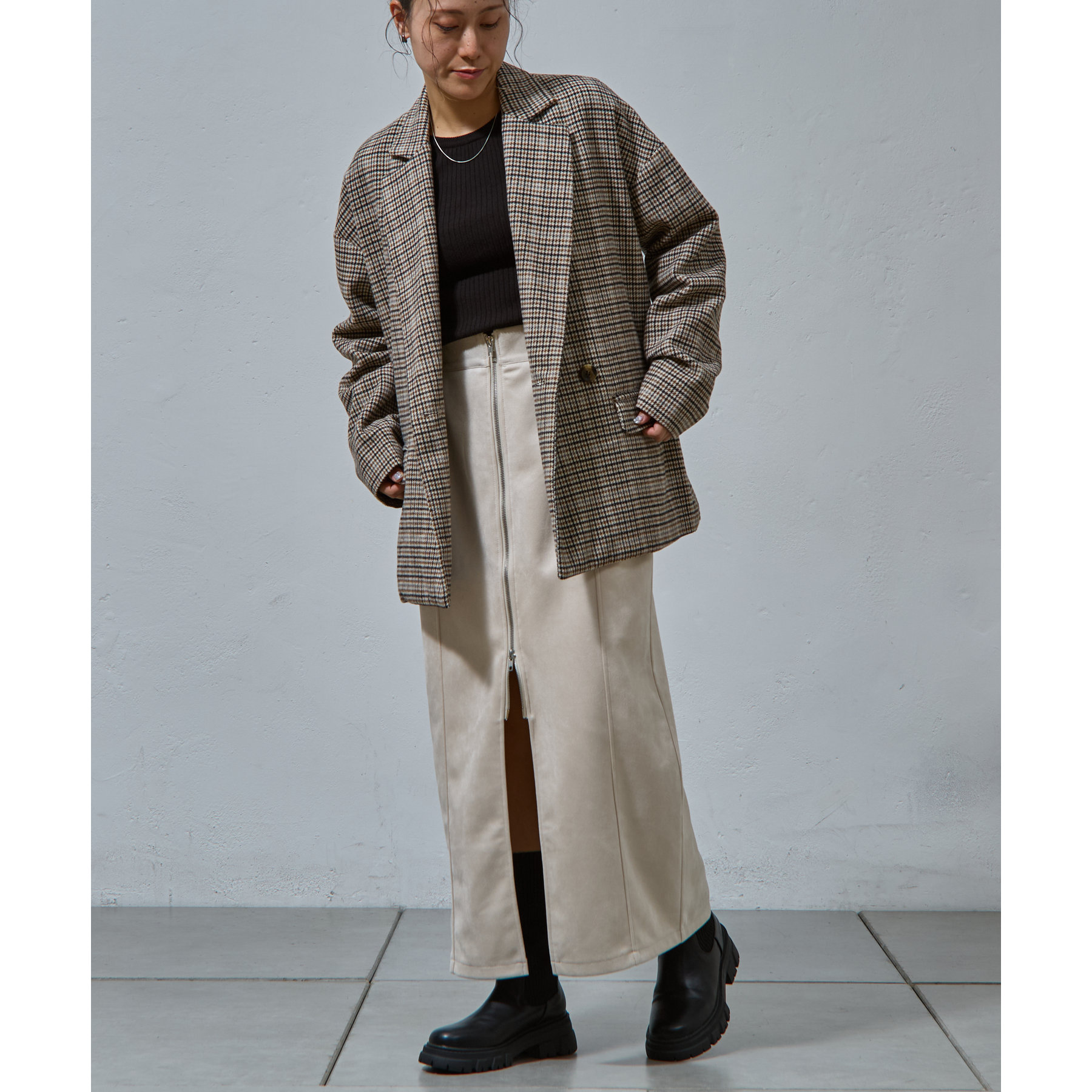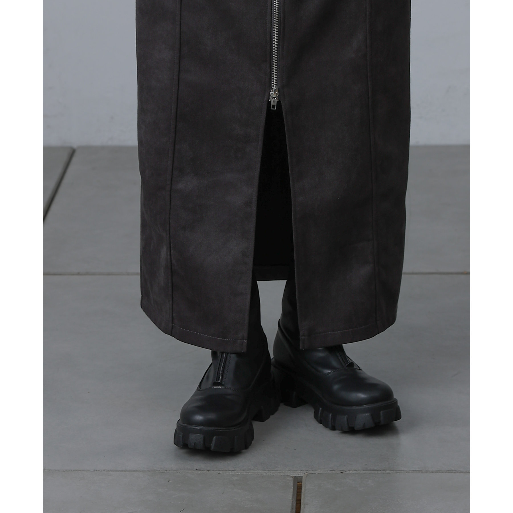 フロントについたダブルジップがポイントなスエードポンチスカート