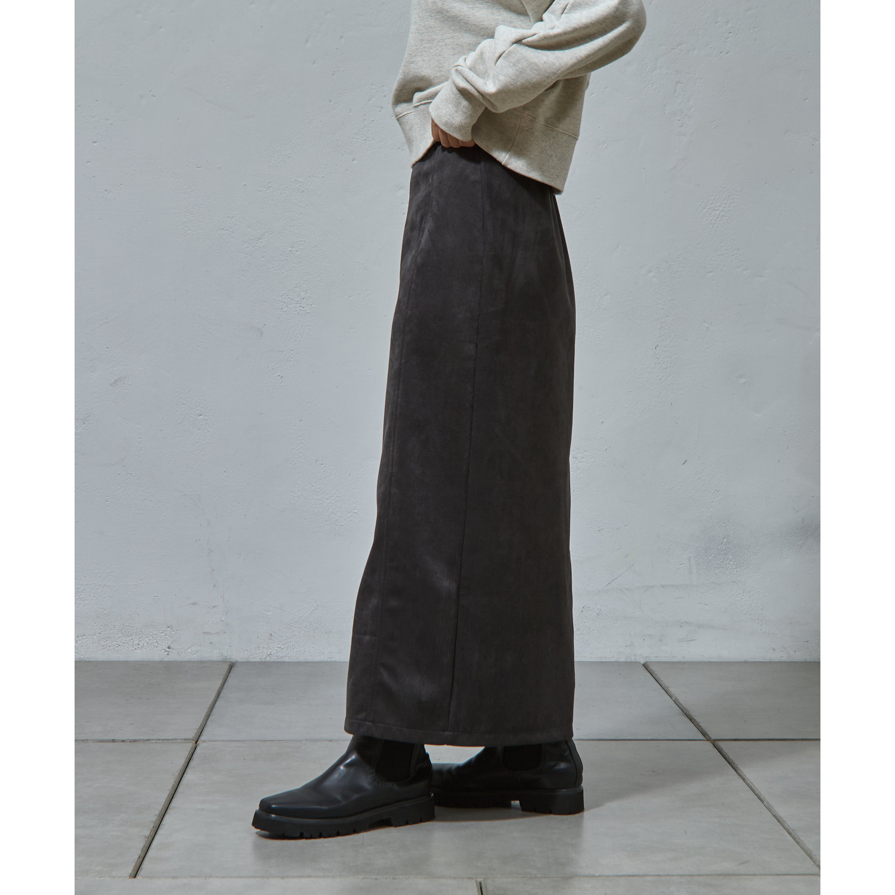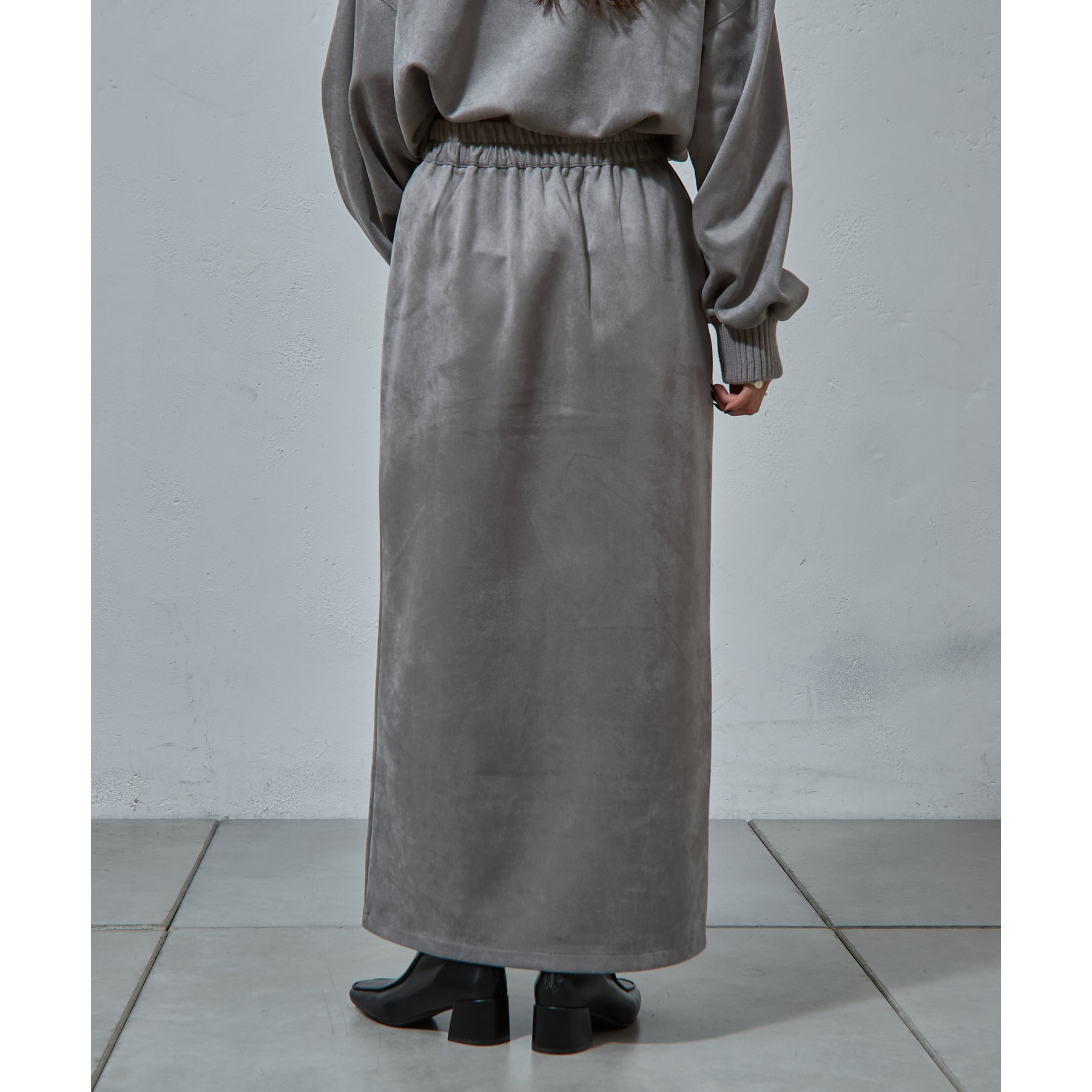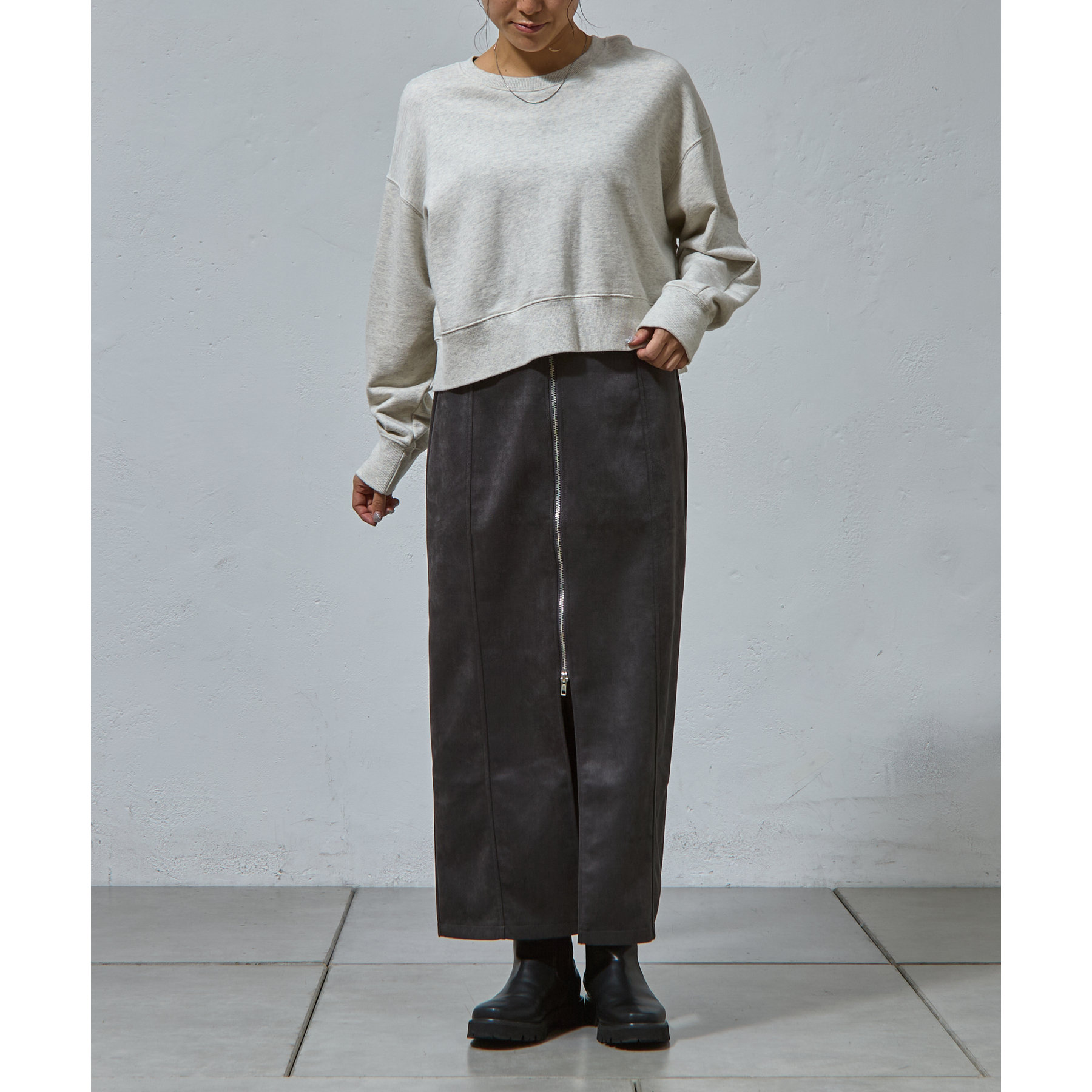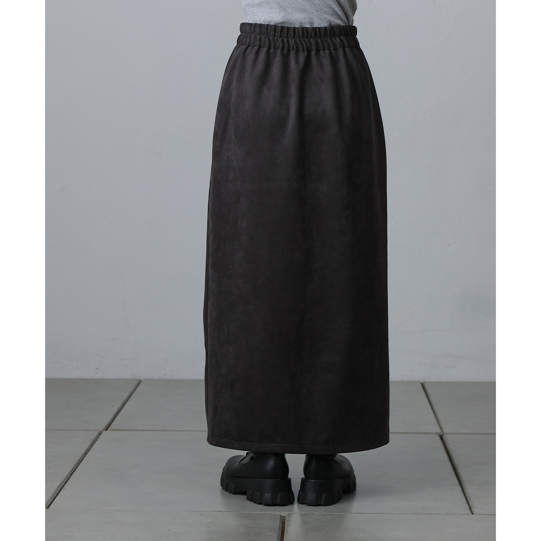 フロントについたダブルジップがポイントなスエードポンチスカート