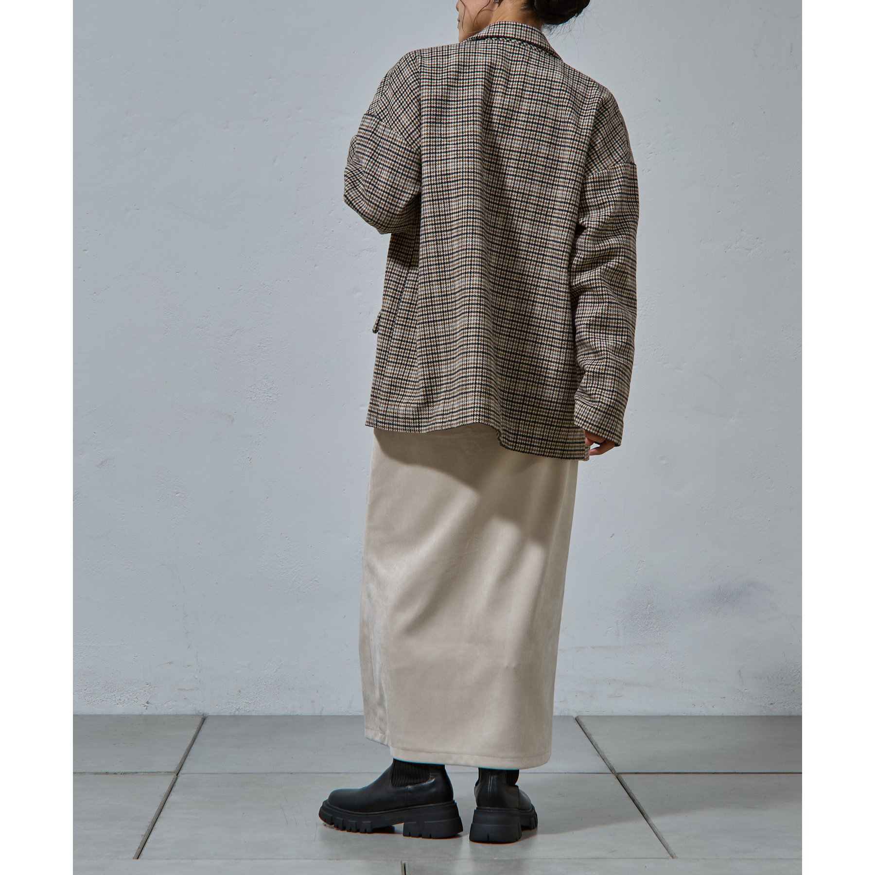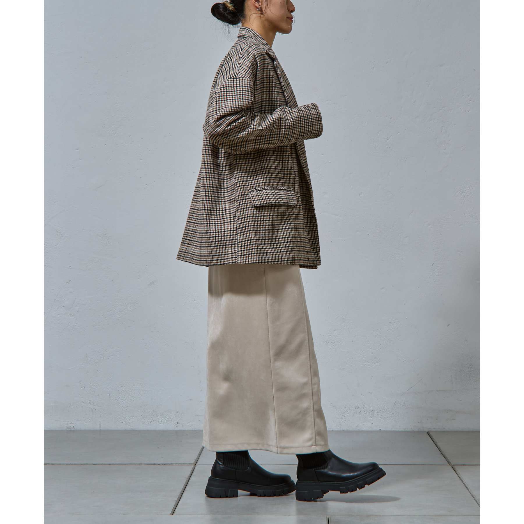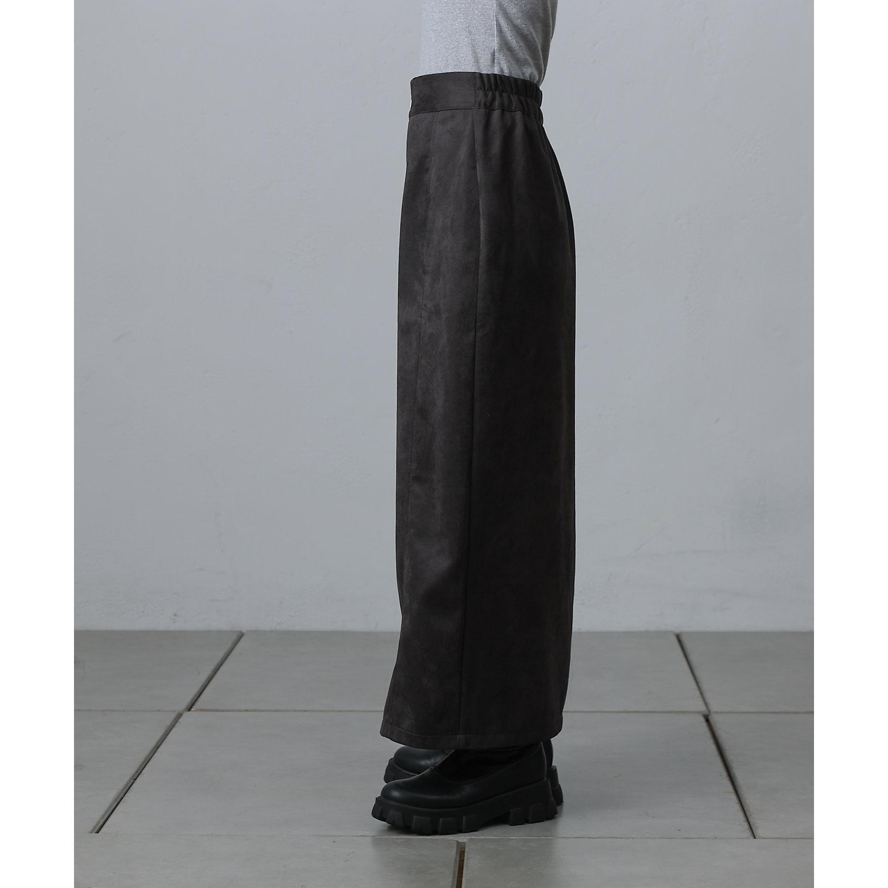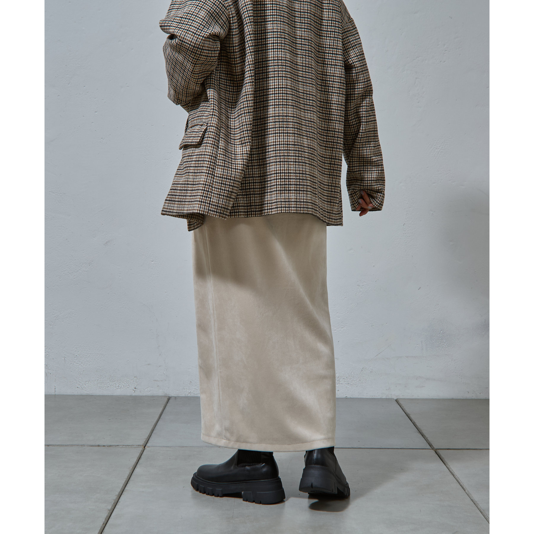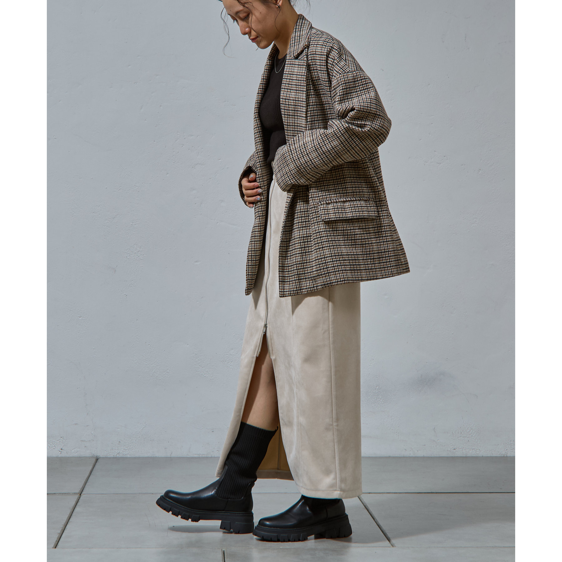 フロントについたダブルジップがポイントなスエードポンチスカート
