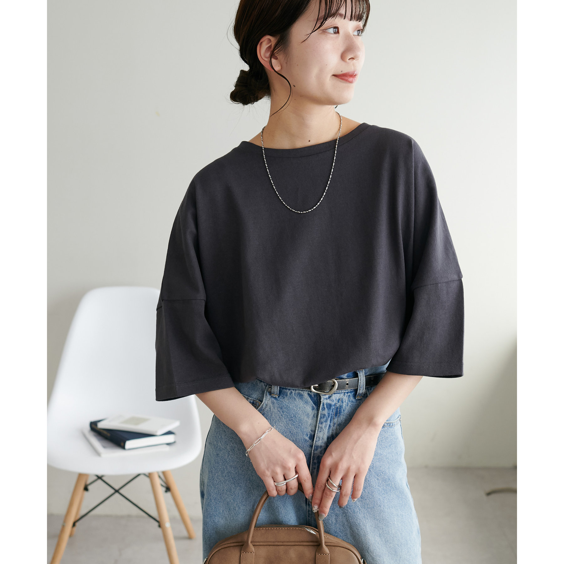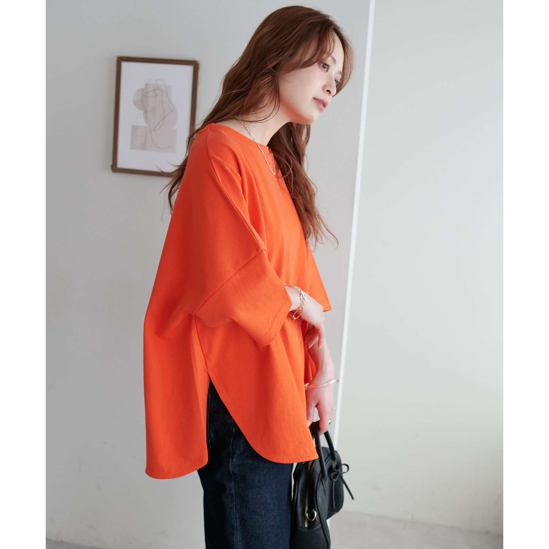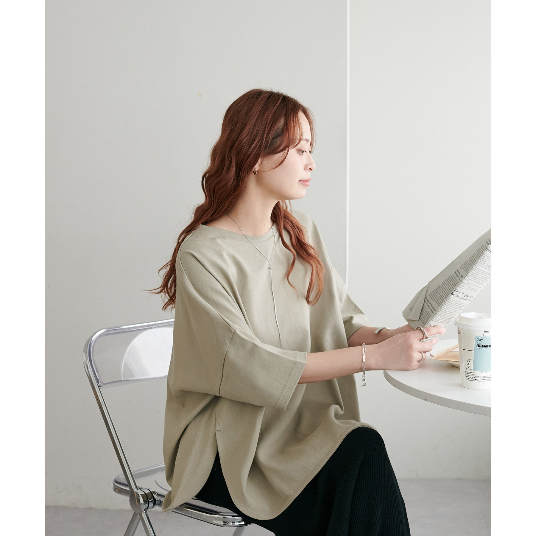 ゆったりとしたシルエットに、肩のラインを落としたドルマンスリーブが抜け感をプラス。