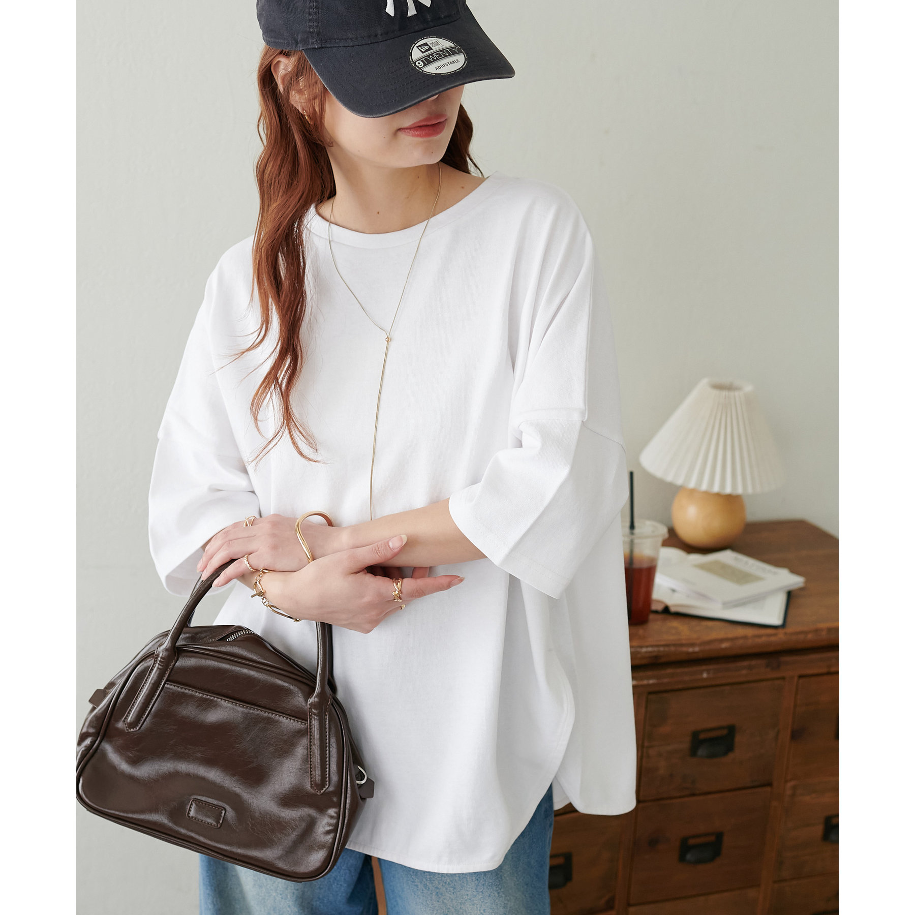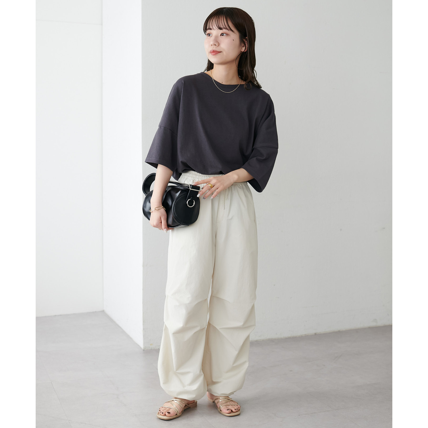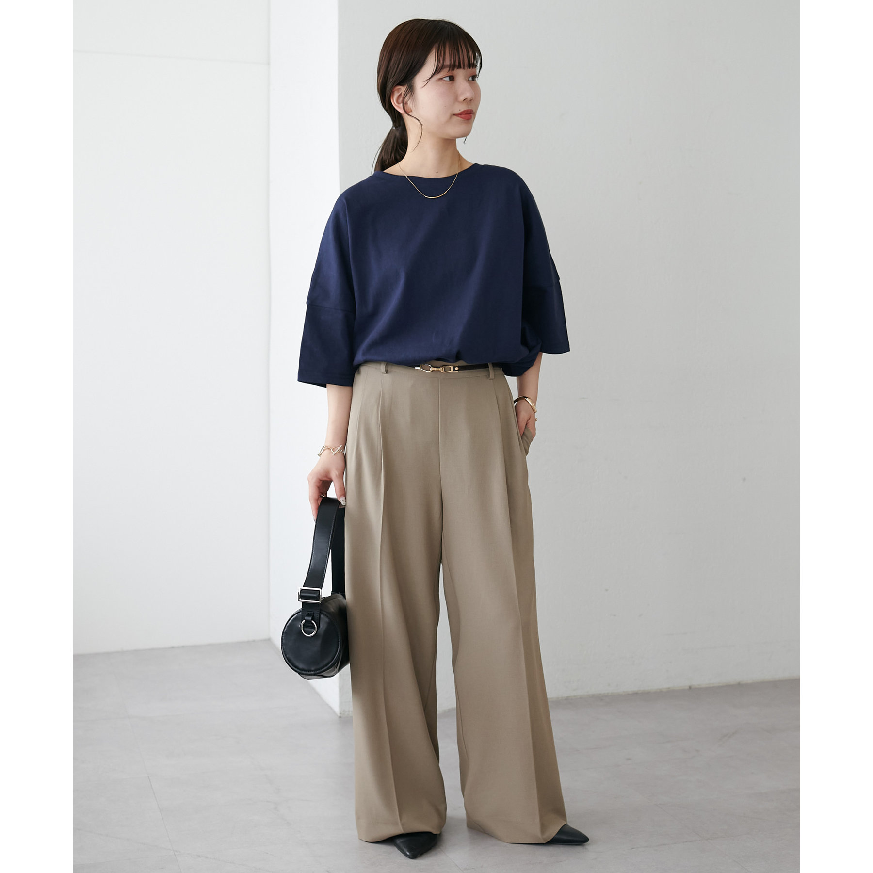 ゆったりとしたシルエットに、肩のラインを落としたドルマンスリーブが抜け感をプラス。