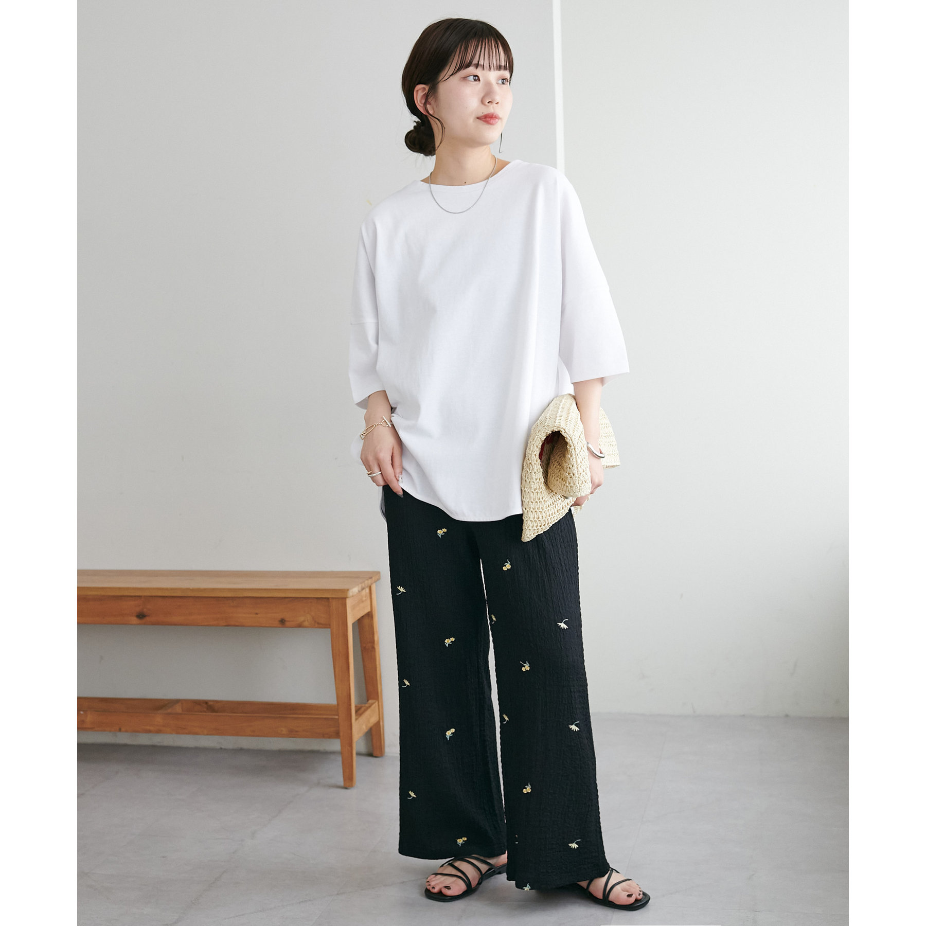 160cmスタッフ:ゆったりした身幅と袖で体のラインを拾わず、ラクな着心地です!