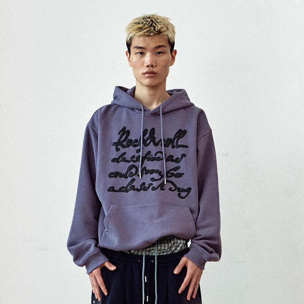 CURSIVE WRITING TYPO HOODIE PURPLE