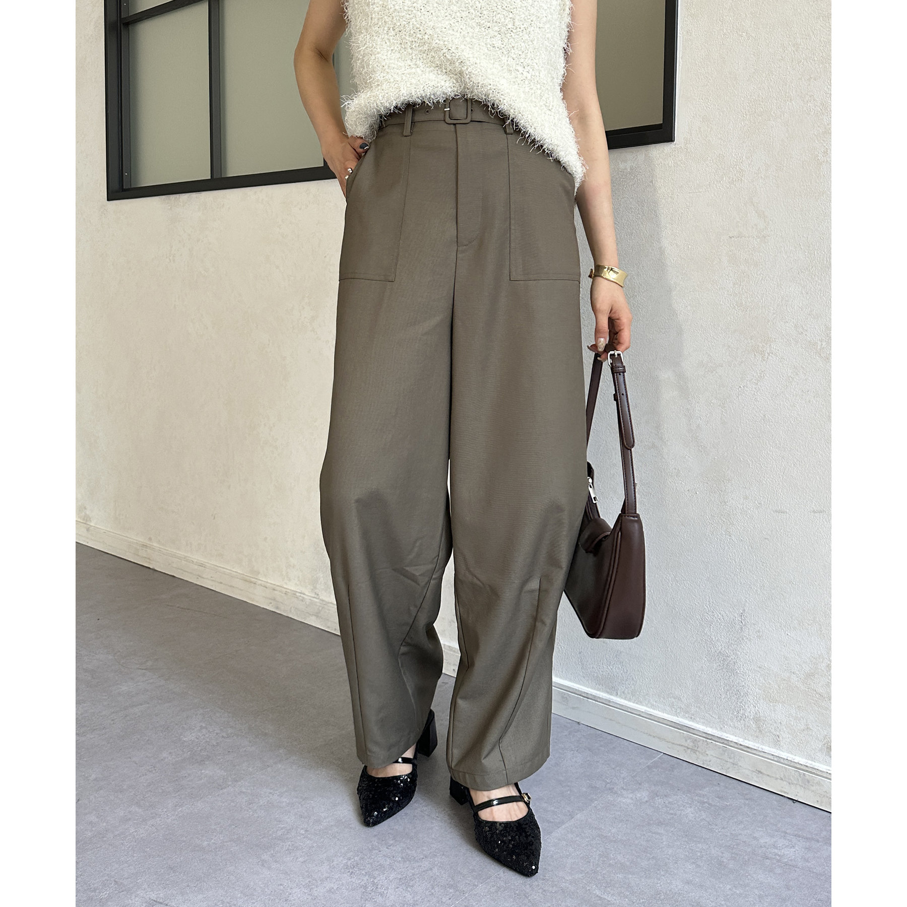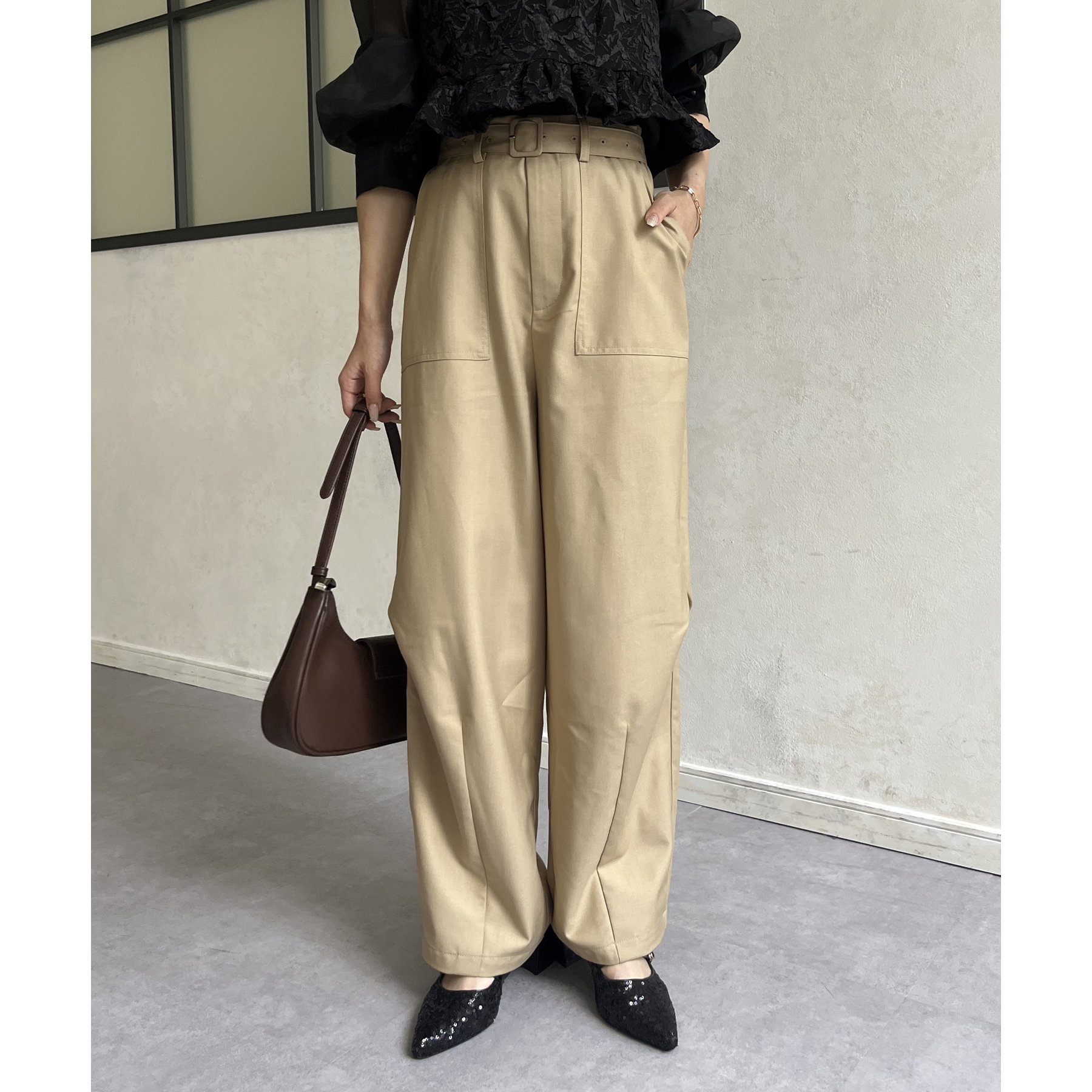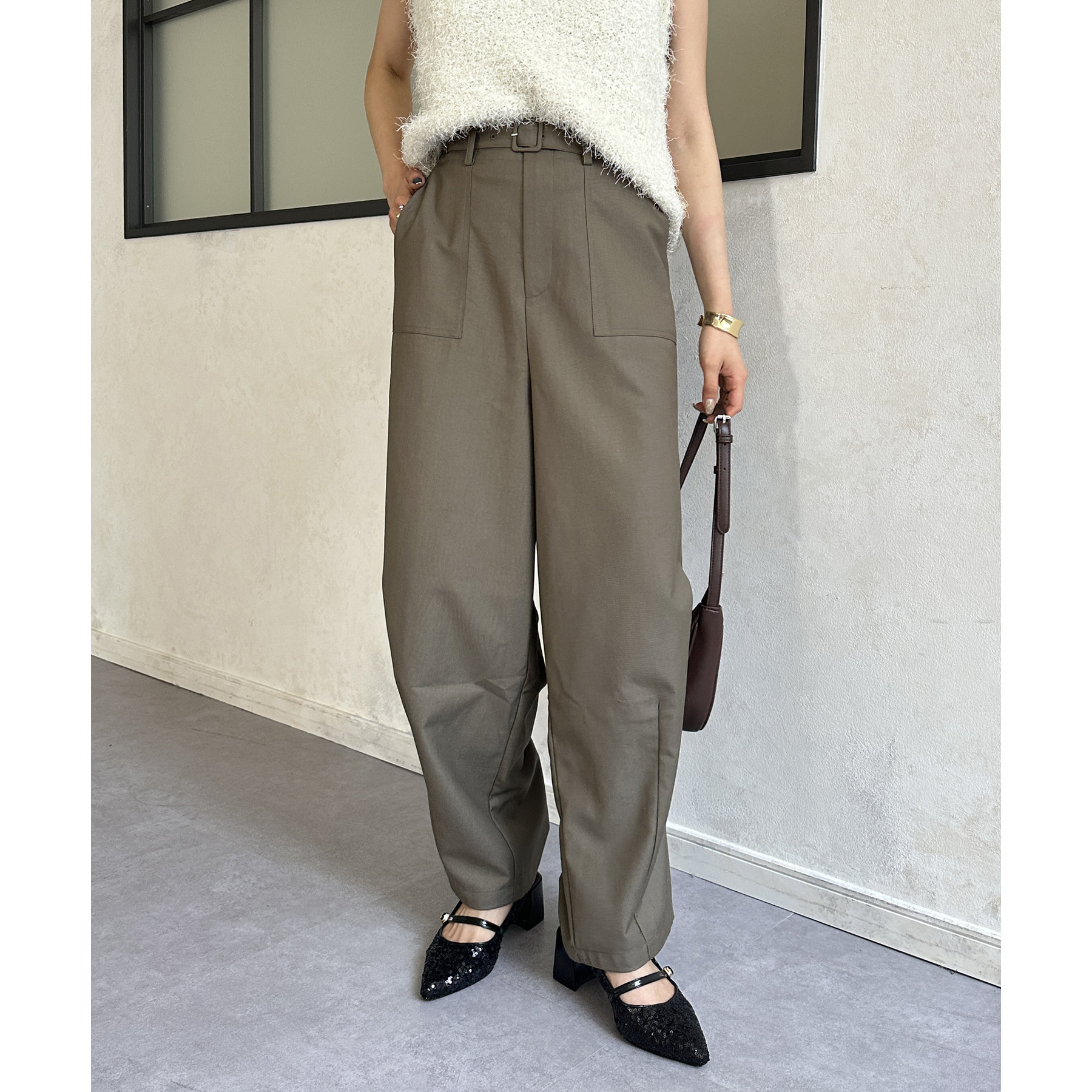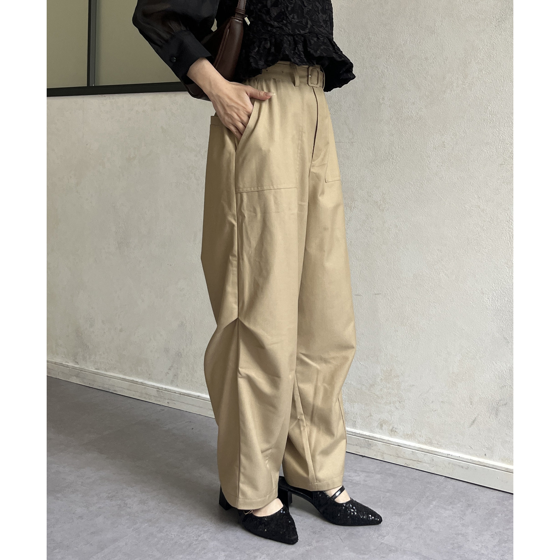 ベルト付きコクーンパンツ