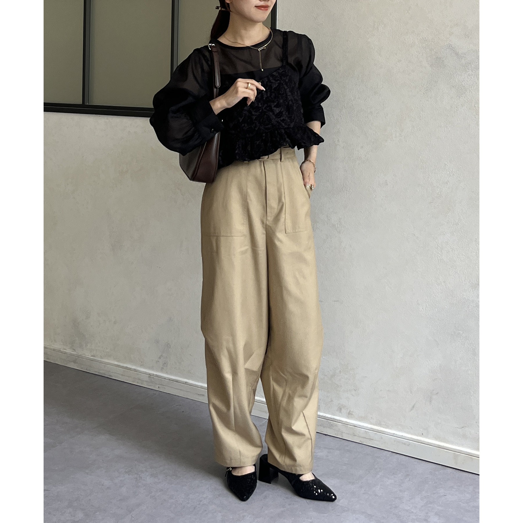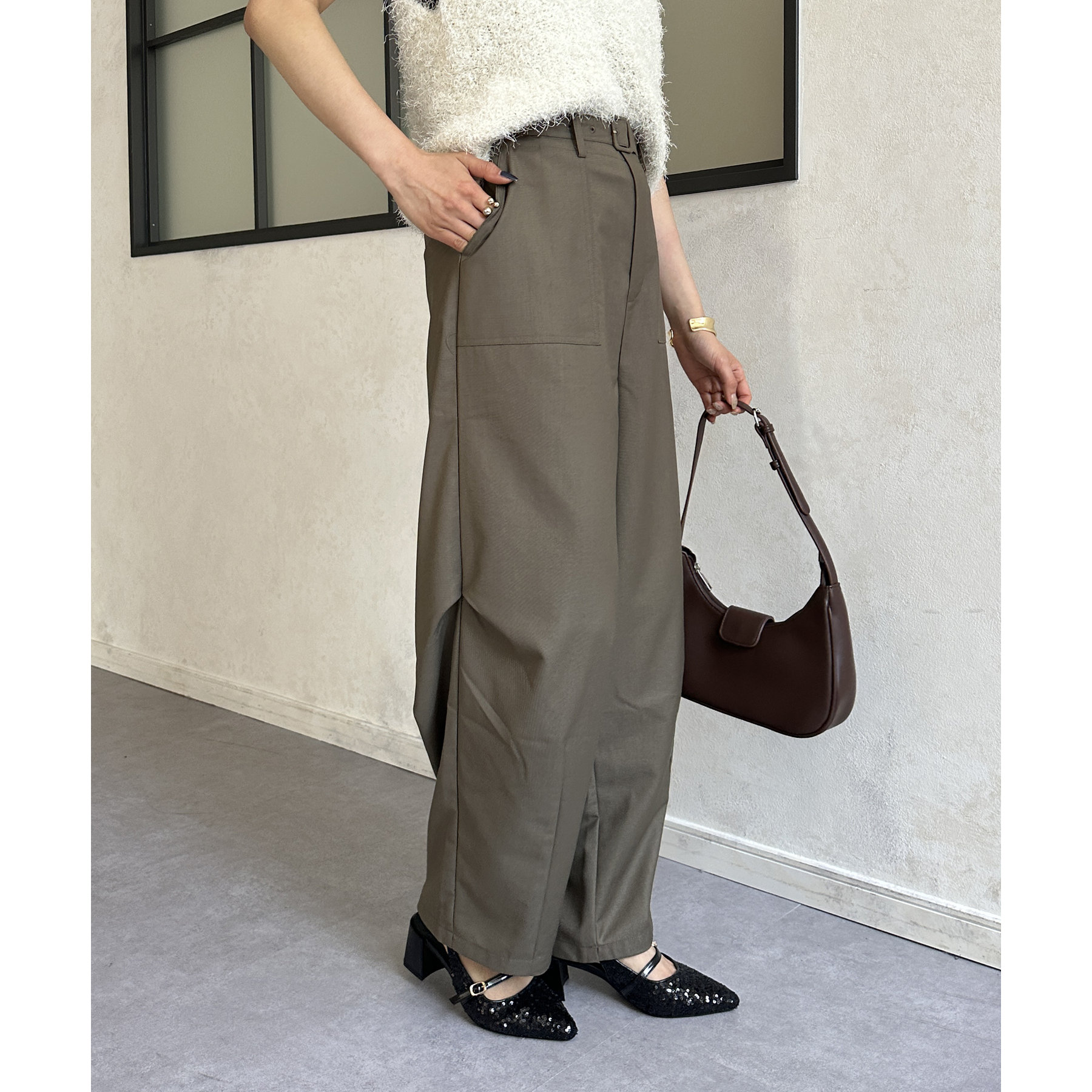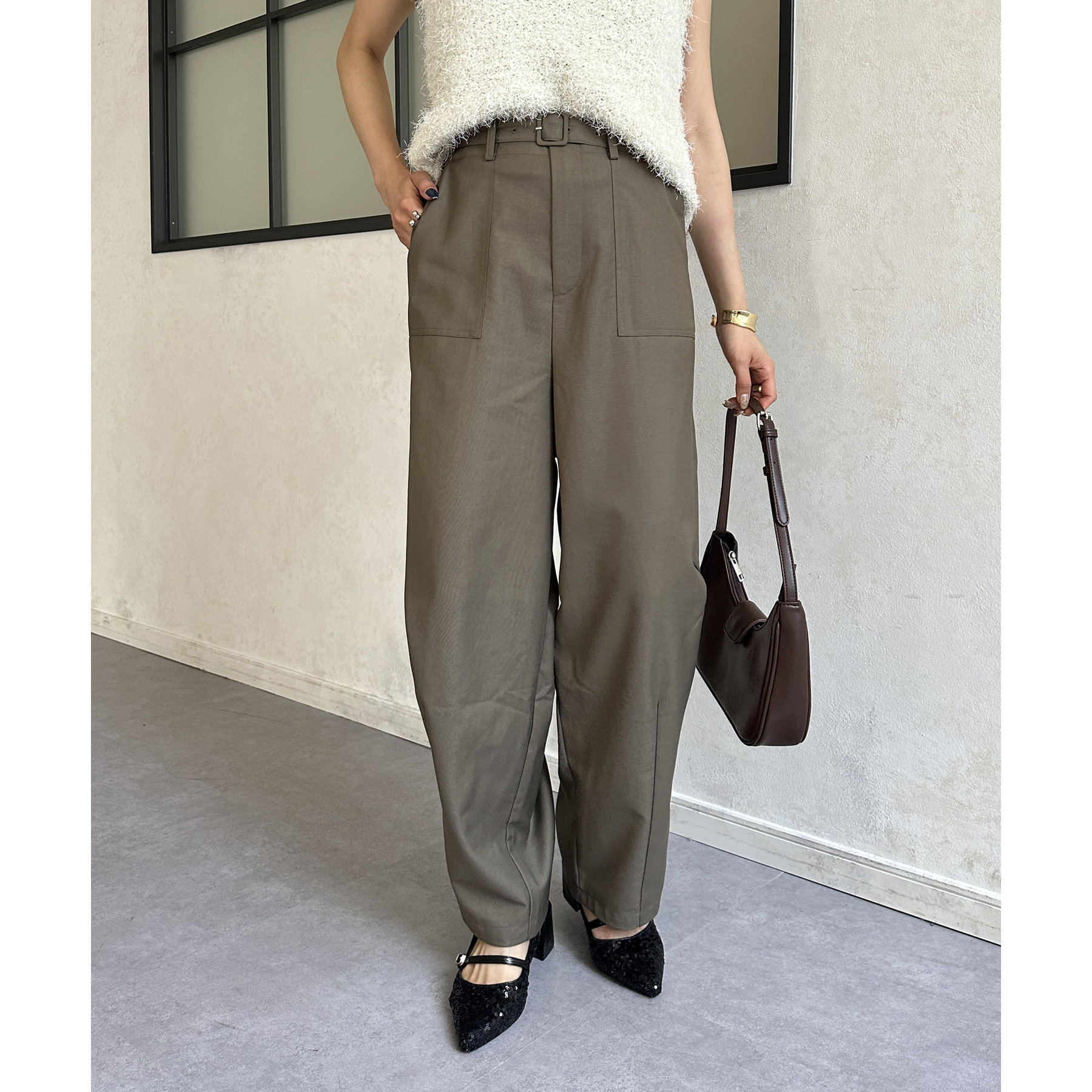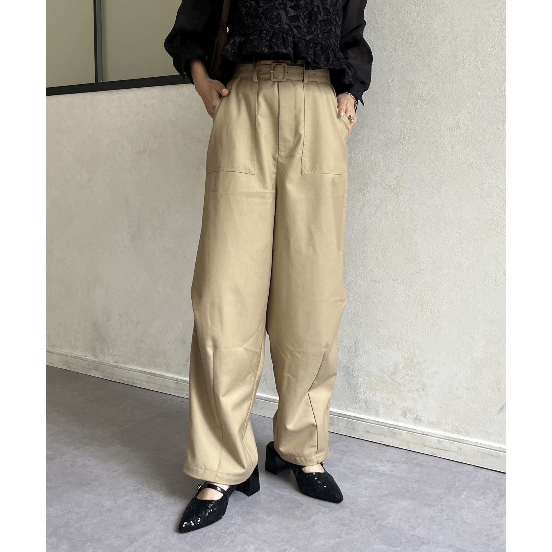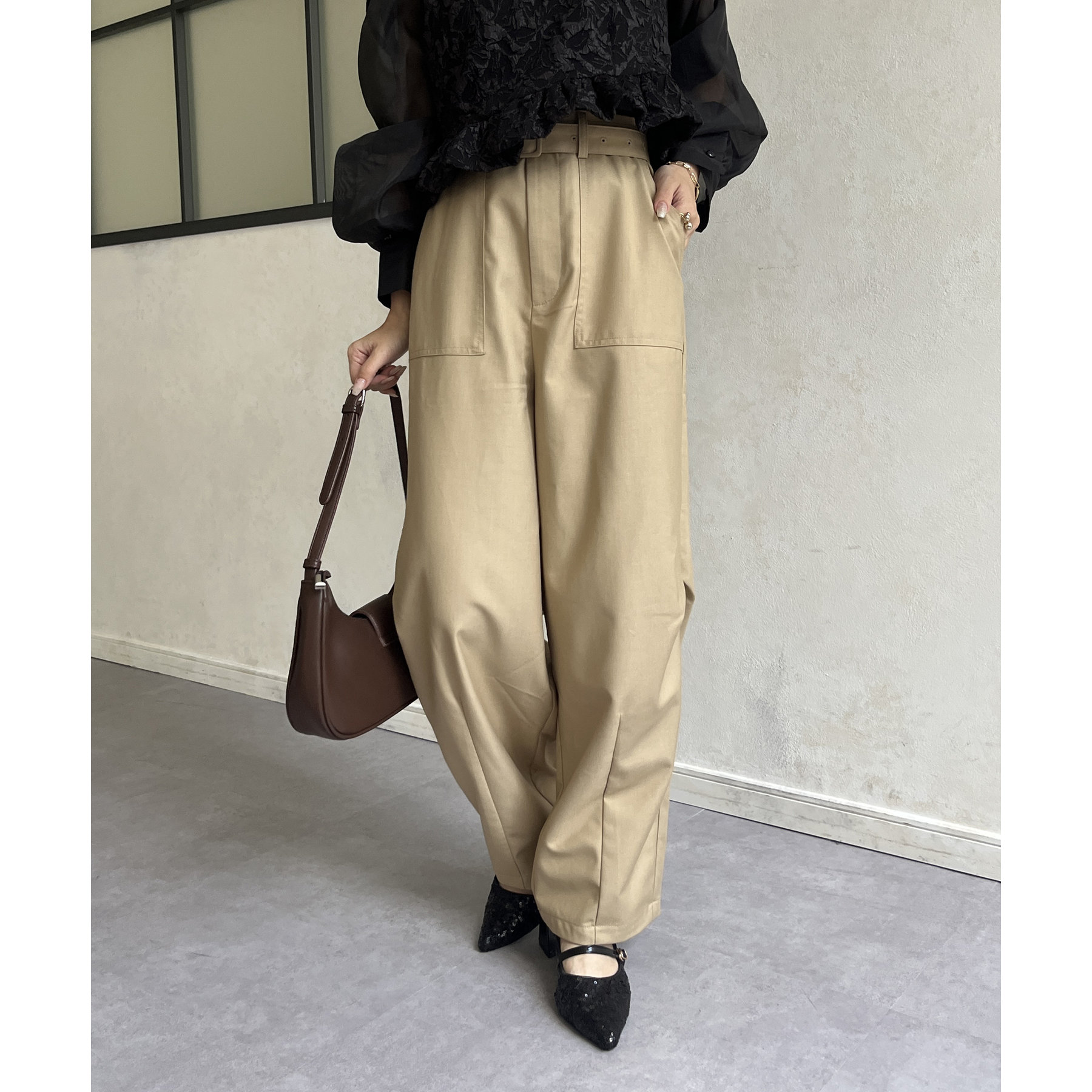 ベルト付きコクーンパンツ