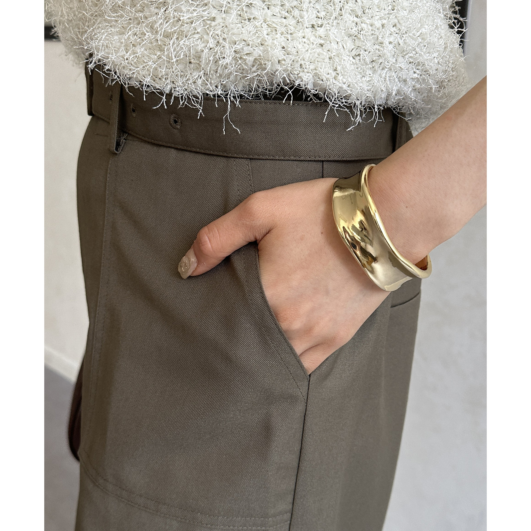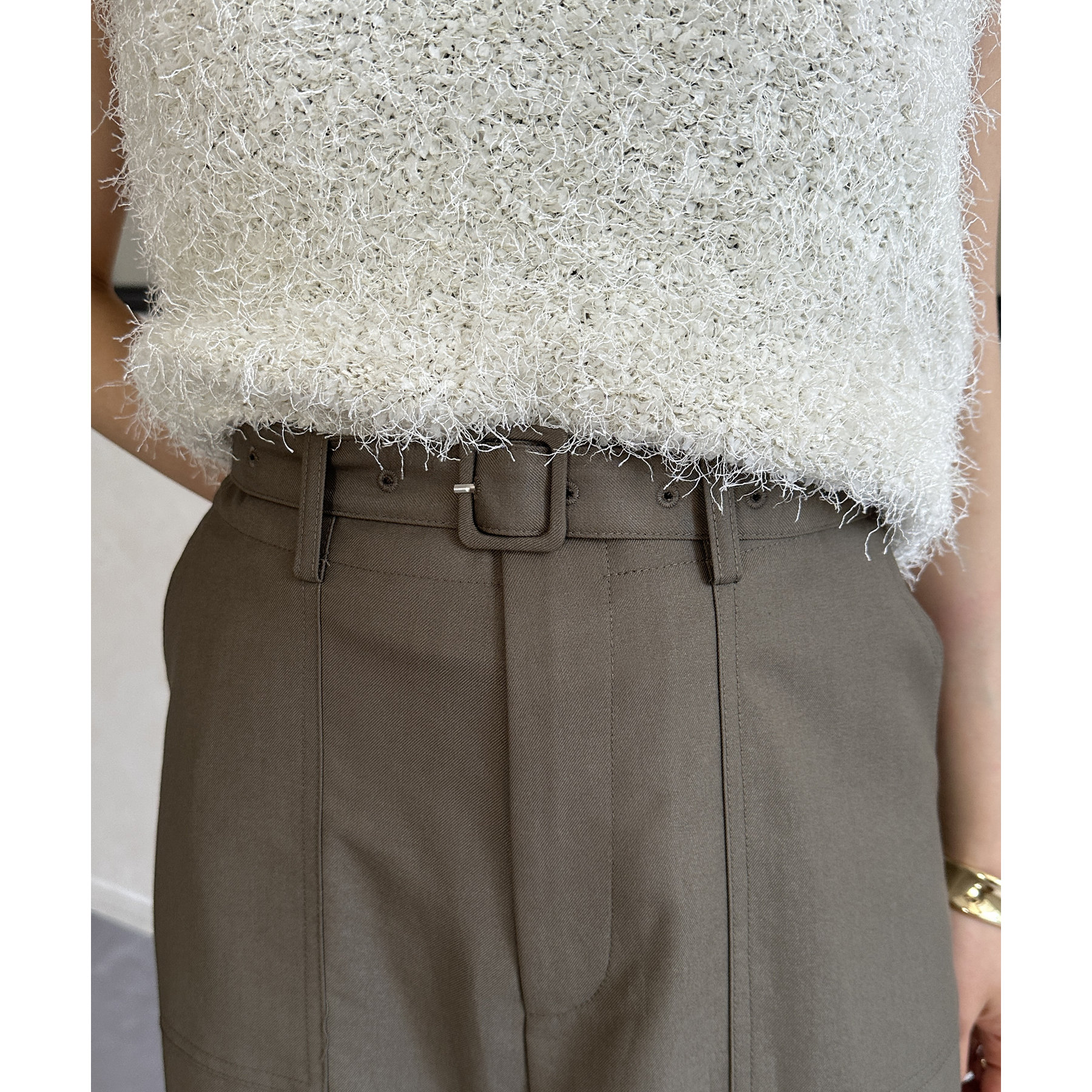 ・コンパクトなニットやTシャツを合わせるとトレンド感のある